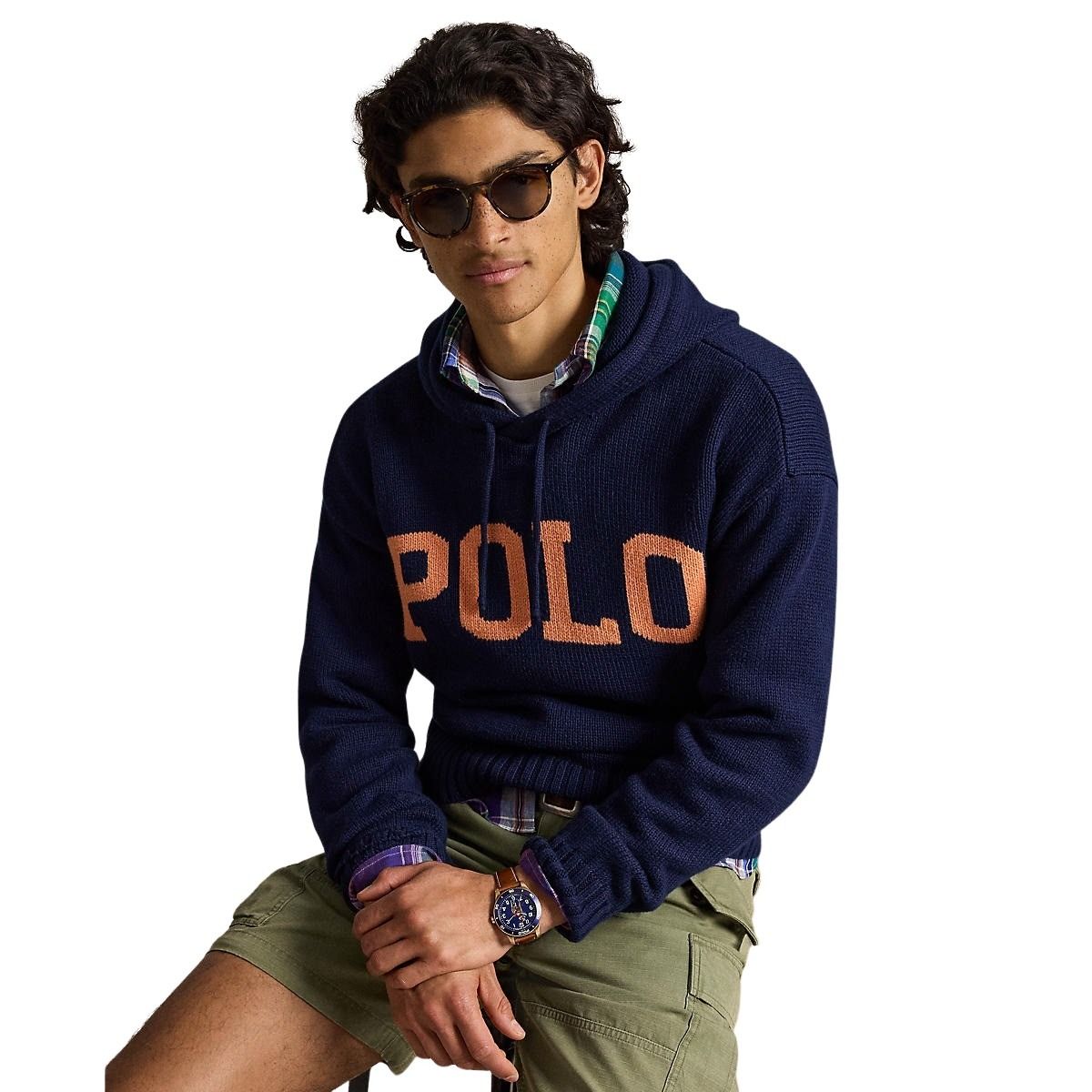 Strikket hettegenser til herre fra Polo Ralph Lauren. Genseren har stor Polo-logo strikket foran og den ikoniske broderte Pony-logoen over falden. Myk og behagelig kvalitet som passer perfekt til hverdagsbruk. Enkel å style med jeans eller chinos for en avslappet, sporty look