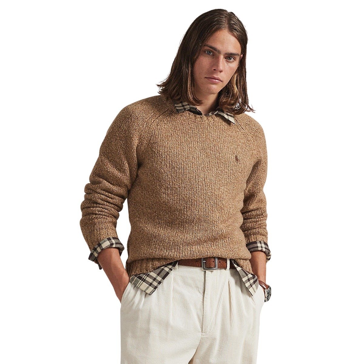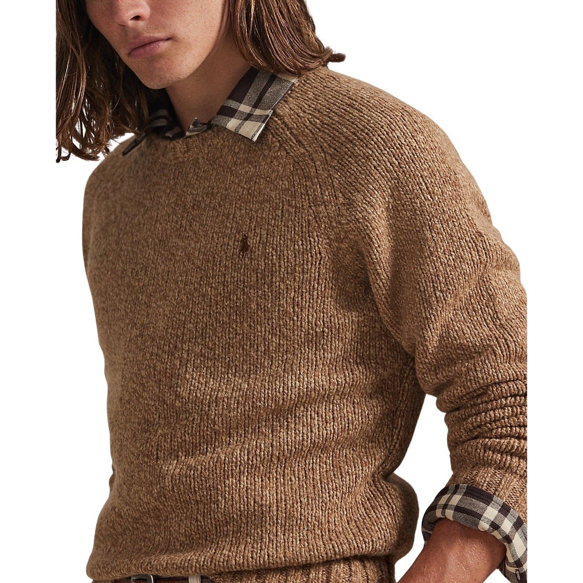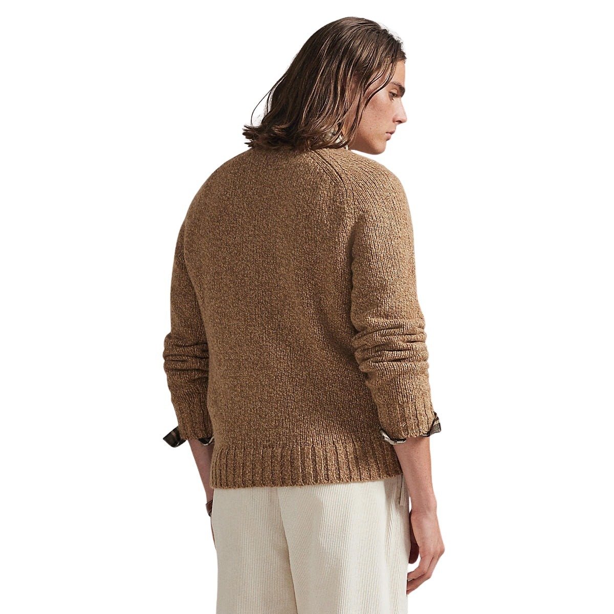 Genser til herre fra Polo Ralph Lauen. Delikat genser i en melert ullblanding gir denne grovstrikkede genseren en tonal dimensjon. Brodert Pony på venstre bryst gir en signaturfinish.
