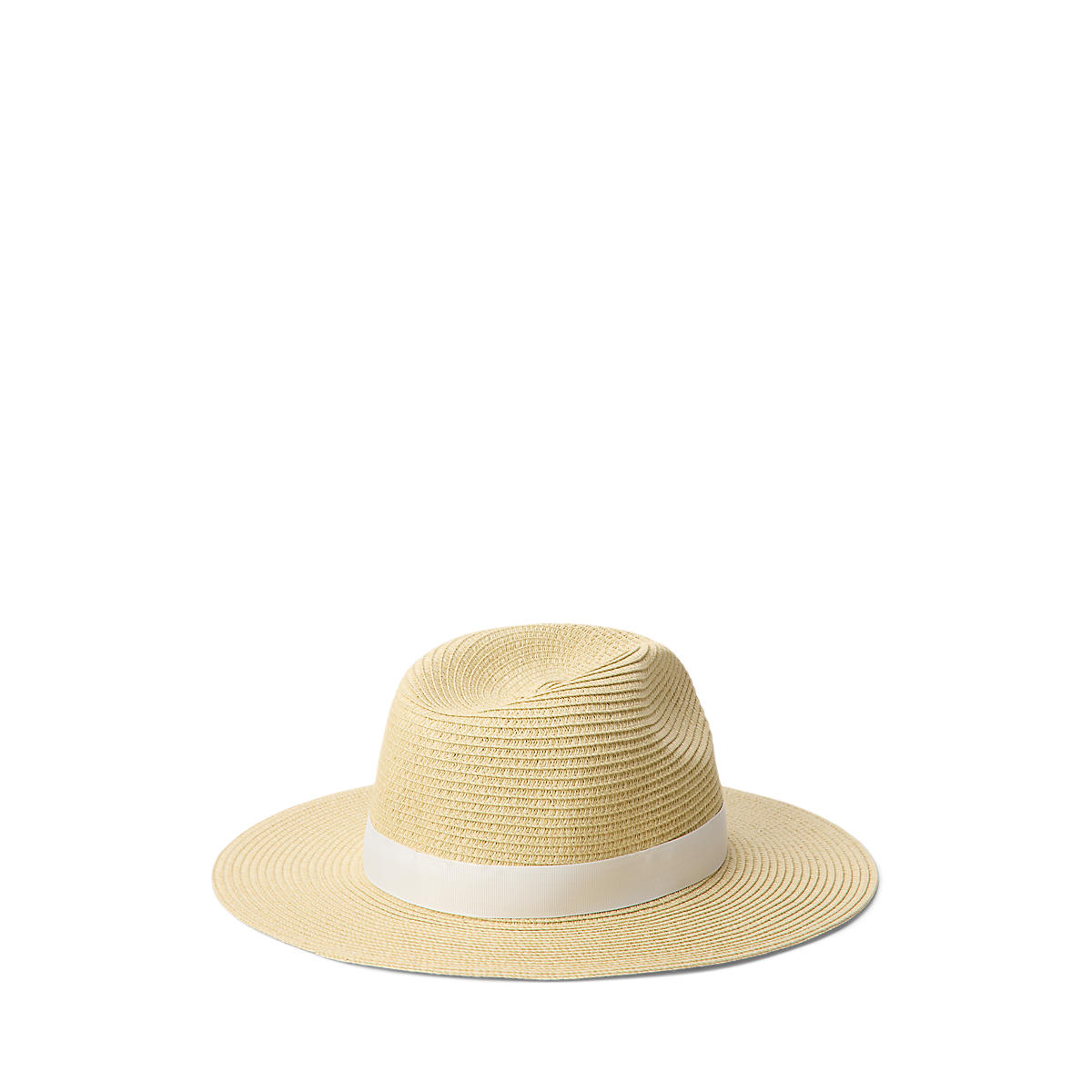 Fedorahatt til dame fra Polo Ralph Lauren. Laget i lett og flettet papirstrå som gir et luftig og elegant uttrykk. Den kan pakkes ned, noe som gjør den perfekt på reise. Et bånd med signaturlogo rundt kronen fullfører looken.