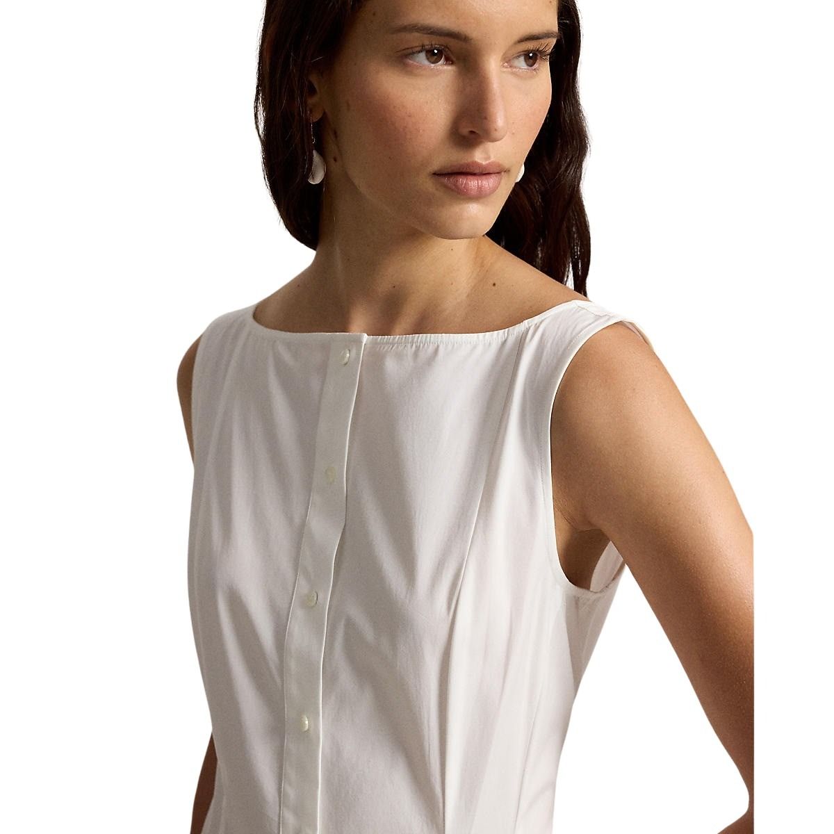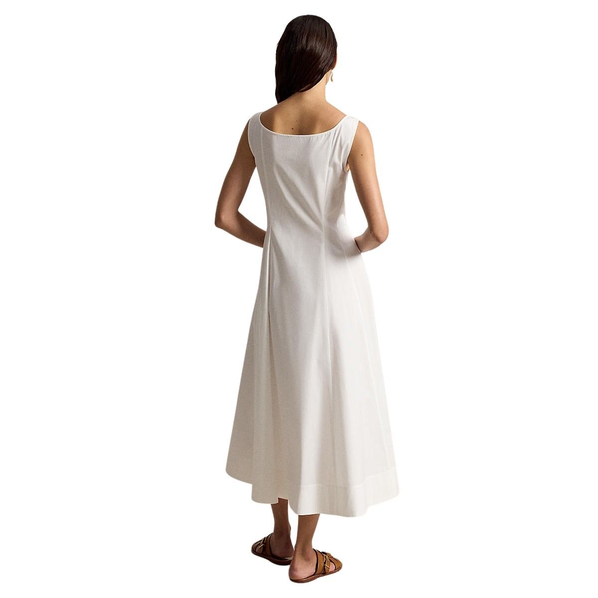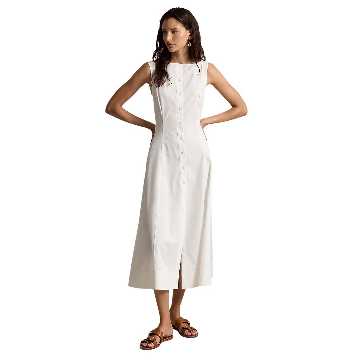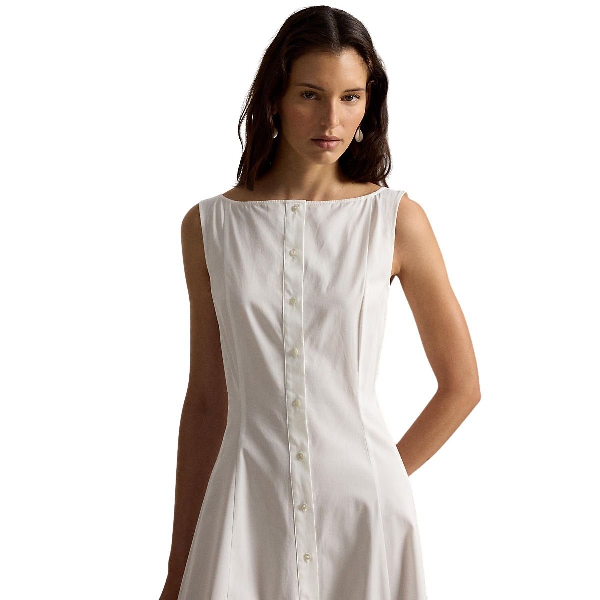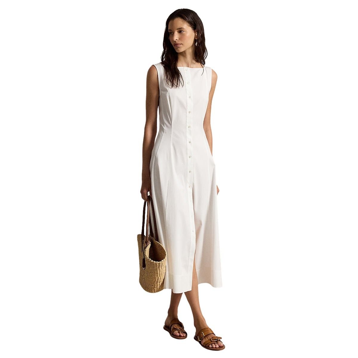 Kjole til dame fra Polo Ralph Lauren. Elegant passform med båthals og knapper i front. Laget i glatt bomullspoplin som faller fint og gir et lett og behagelig uttrykk.