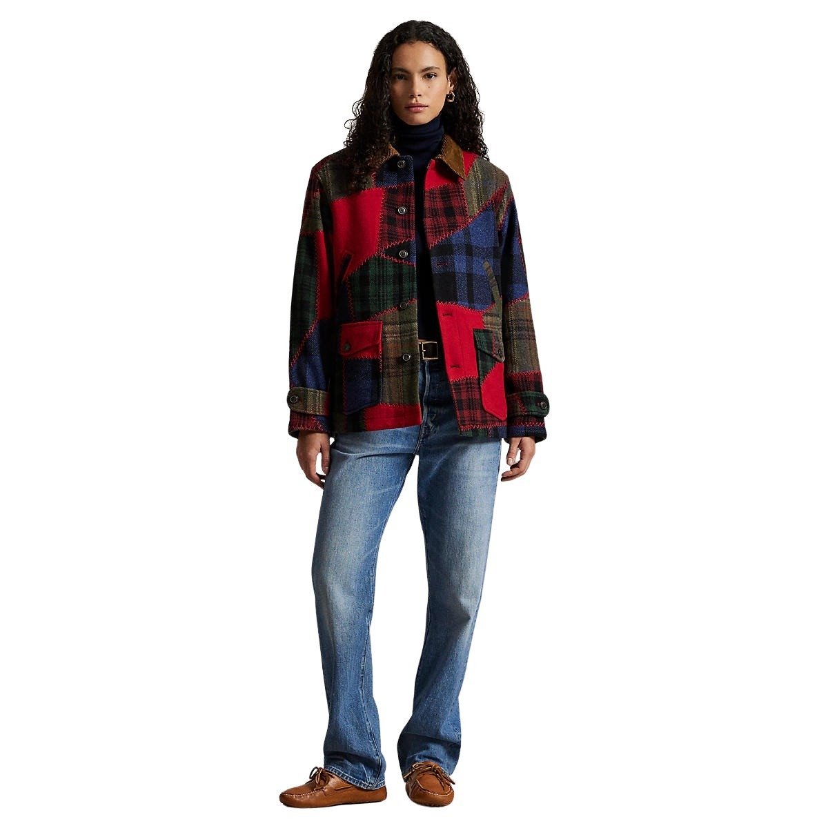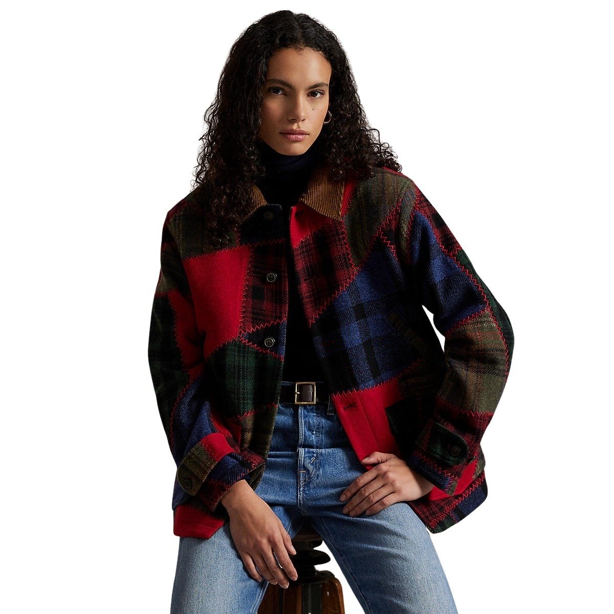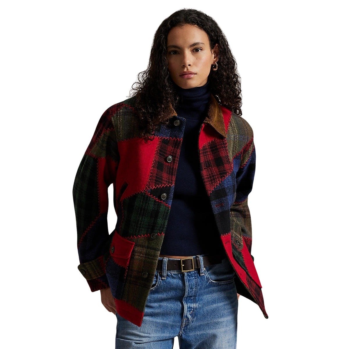 Jakke til dame fra Polo Ralph Lauren. En unik jakke i ullblanding med håndverksinspirert patchwork-design og klassisk cordfløyelskrage. Kombinerer rustikk sjarm med moderne stil. Perfekt som et statement-plagg i høst- og vintergarderoben.