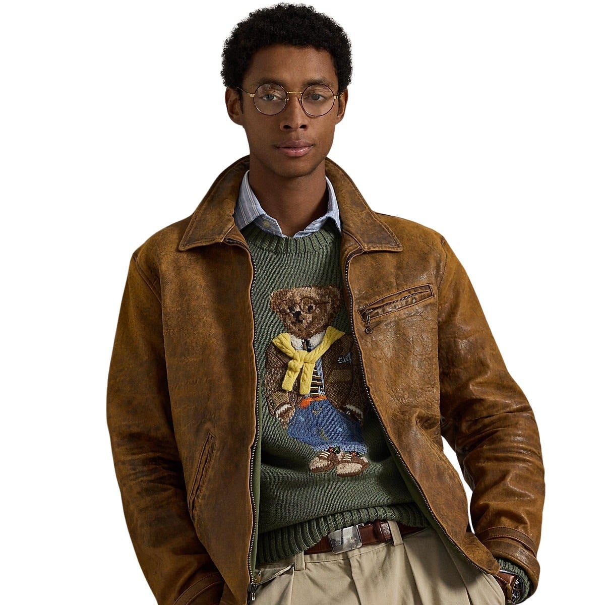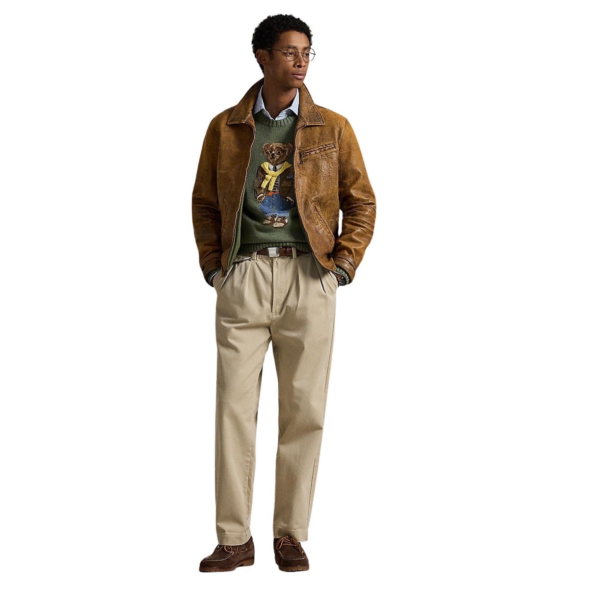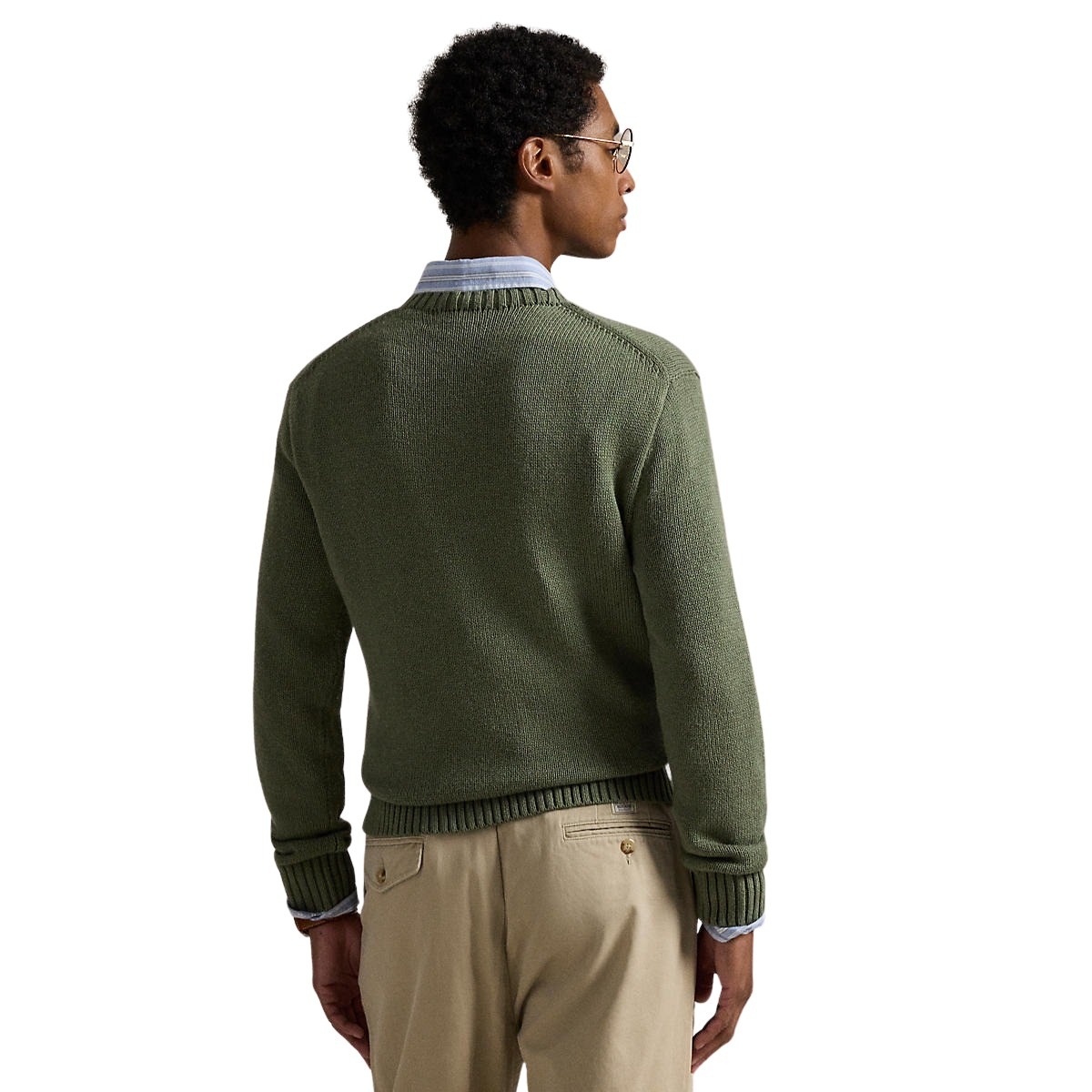 Genser til herre fra Polo Ralph Lauren. Brodert med deres ikoniske Polo Bear på brystet i et detaljert og fargerikt design. Denne varianten har en militærgrønn base og fremstiller bjørnen kledd i et preppy og lag-på-lag-inspirert antrekk.