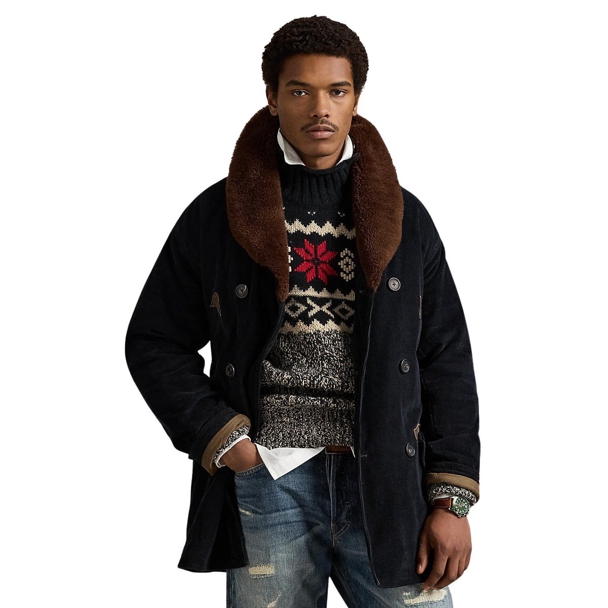 Shearling-Collar Corduroy Ranch Coat – Sort