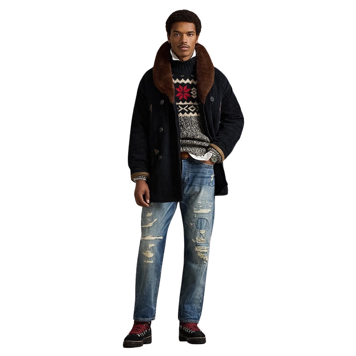 Jakke til herre fra Polo Ralph Lauren. En luksuriøs tolkning av den klassiske ranch-jakken, laget i kraftig kordfløyel med myk shearling-krage for ekstra varme og komfort. Jakken har et dobbeltspent design, justerbart belte i midjen og karakteristiske forsterkede detaljer i lær. Dette tidløse plagget kombinerer robust funksjonalitet med elegant stil. Perfekt for kalde dager med et sofistikert, westerninspirert uttrykk.