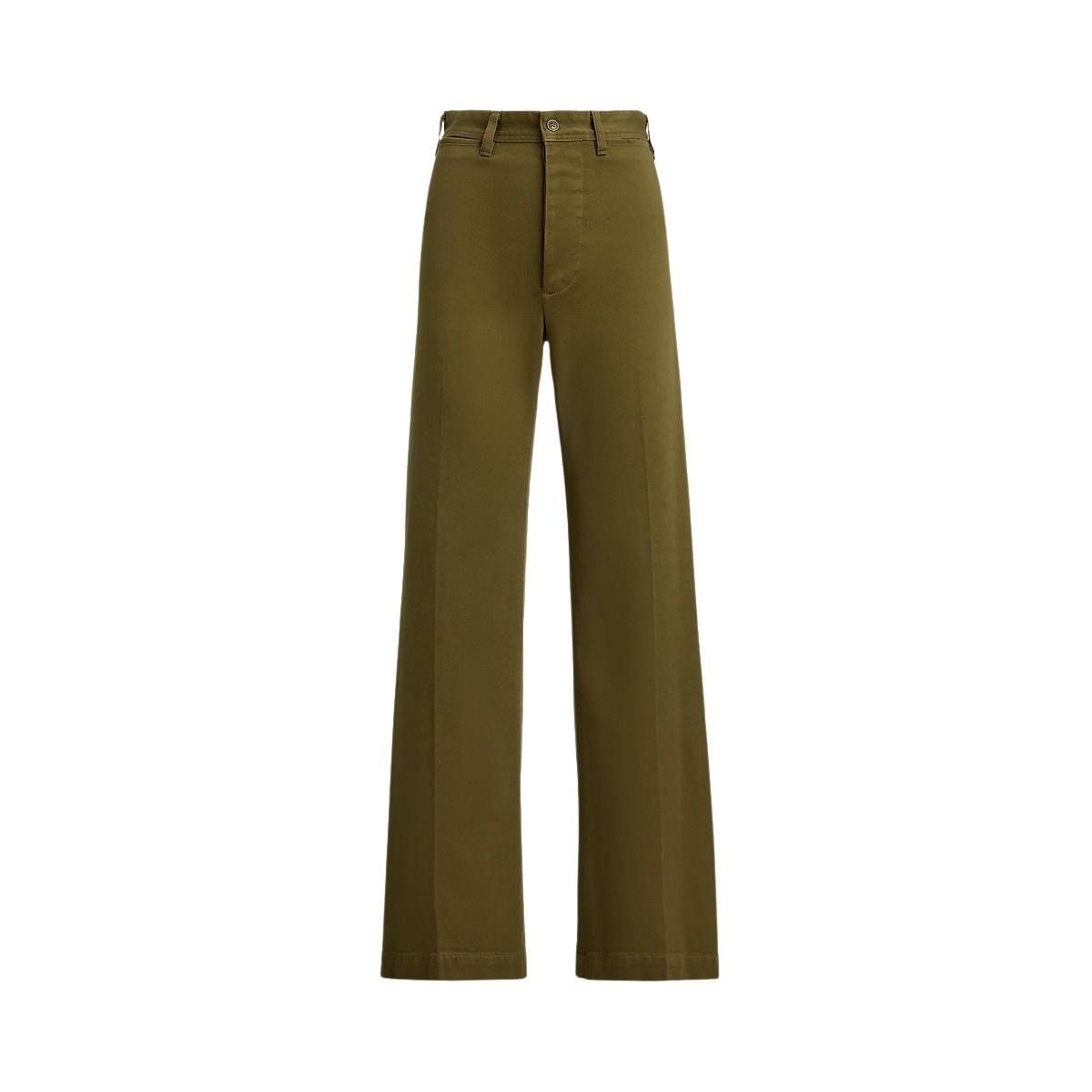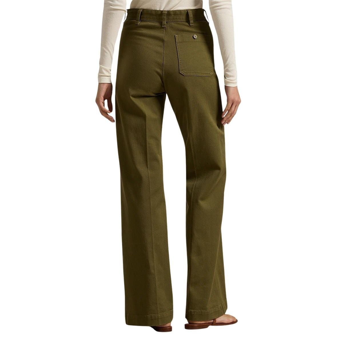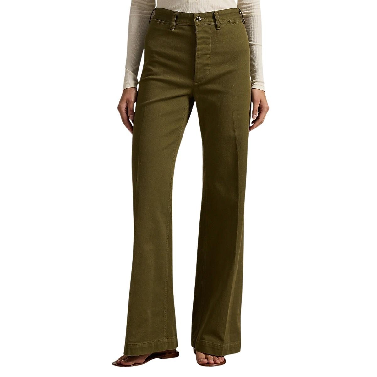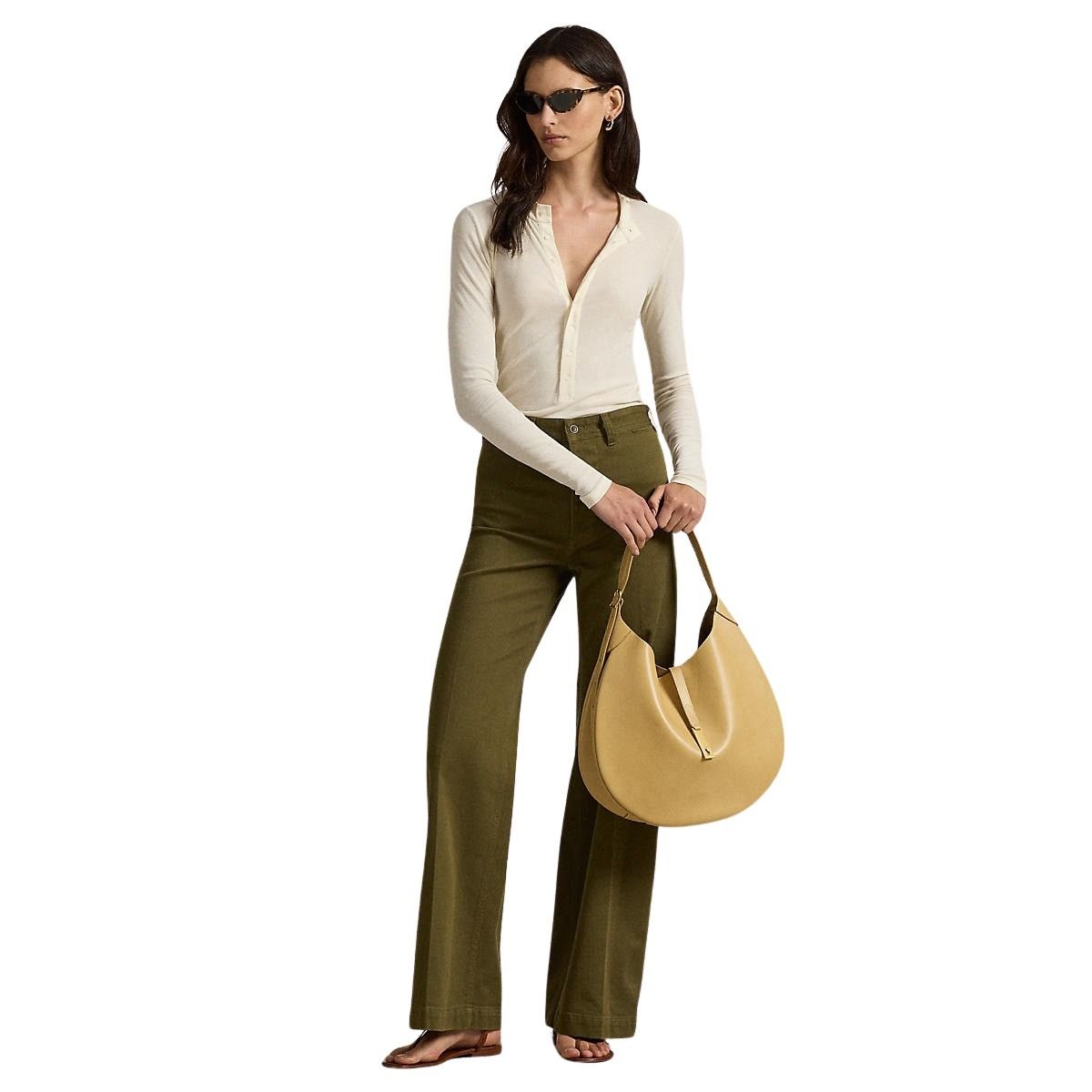 Bukse til dame fra Polo Ralph Lauren. Tidløse bukser laget i myk, stretchy bomull som gir både komfort og en flatterende passform. Den høye midjen og vide bena skaper en elegant silhuett. Et allsidig plagg som løfter både hverdags- og kontorantrekket.