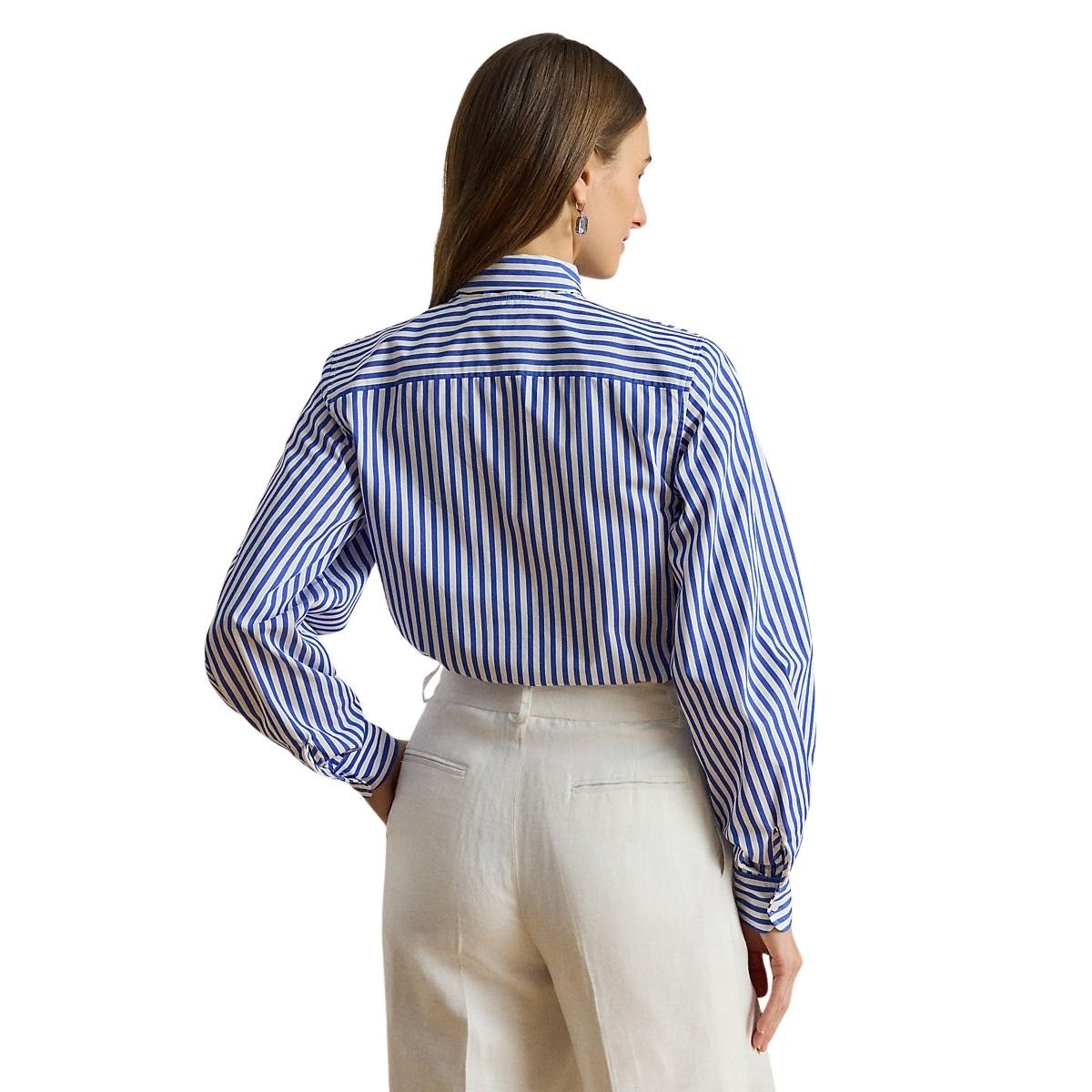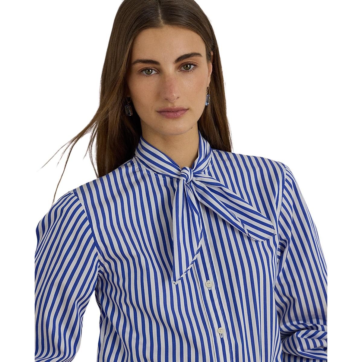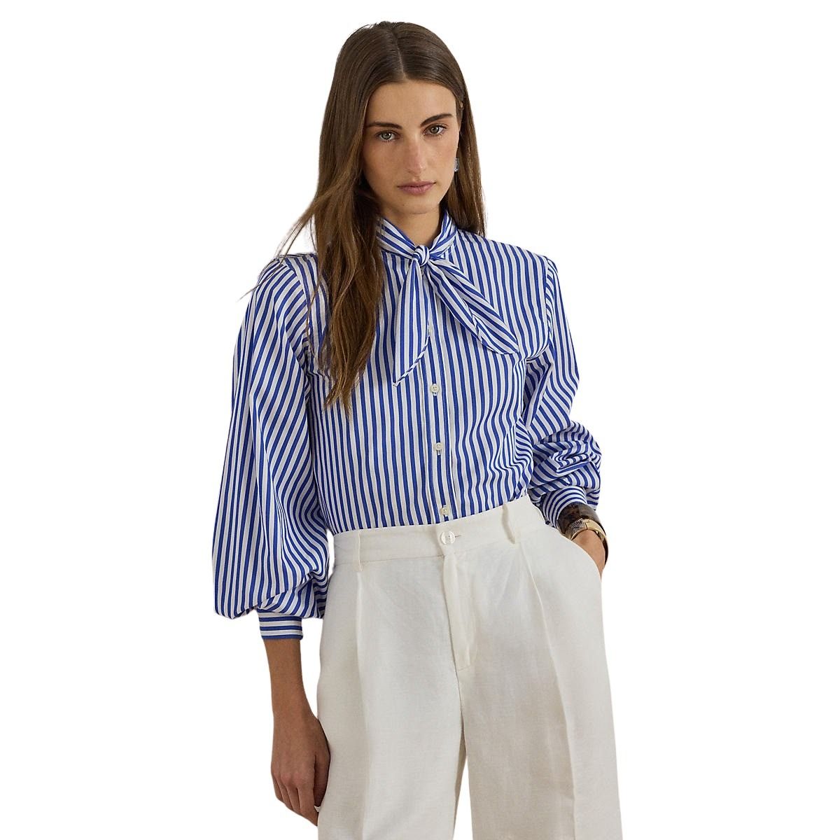 Skjorte til dame fra Polo Ralph Lauren. Stripete skjorte laget i bomull og har et feminint knytebånd i halsen. De voluminøse ballongerme gir et elegant og moderne uttrykk. En fin skjorte som passer like godt til jobb som til hverdagsbruk.