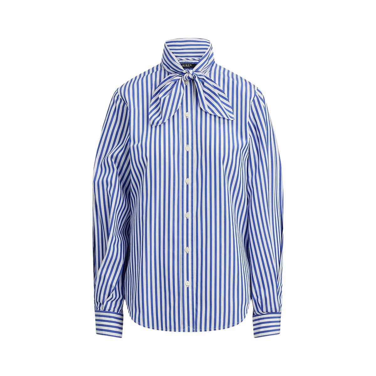 Striped Cotton Broadcloth Tie-Neck Shirt – Blå