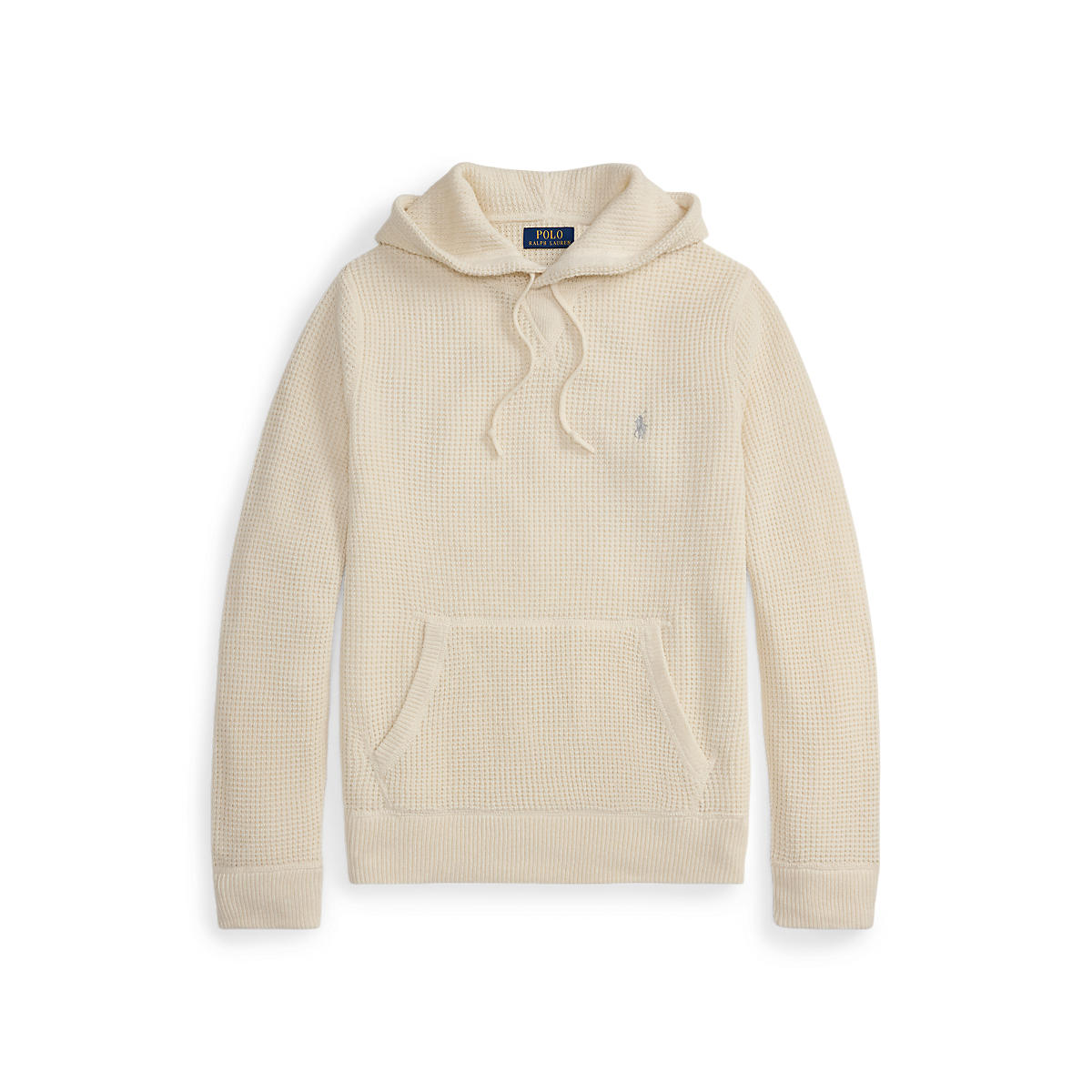 Hettegenser til herre fra Polo Ralph Lauren. Laget i en ull- og bomullsblanding med en taktil, vaffeltekstur som gir både varme og karakter. Den avslappede passformen og kengurulommen gjør den perfekt for komfortable hverdager. Diskré Pony-logo løfter uttrykket med et sofistikert preg.