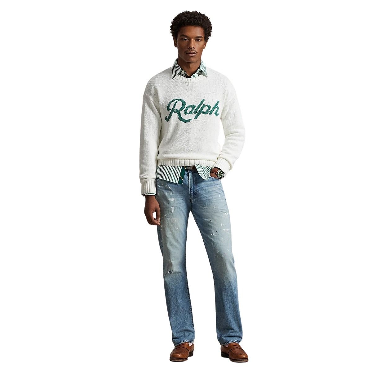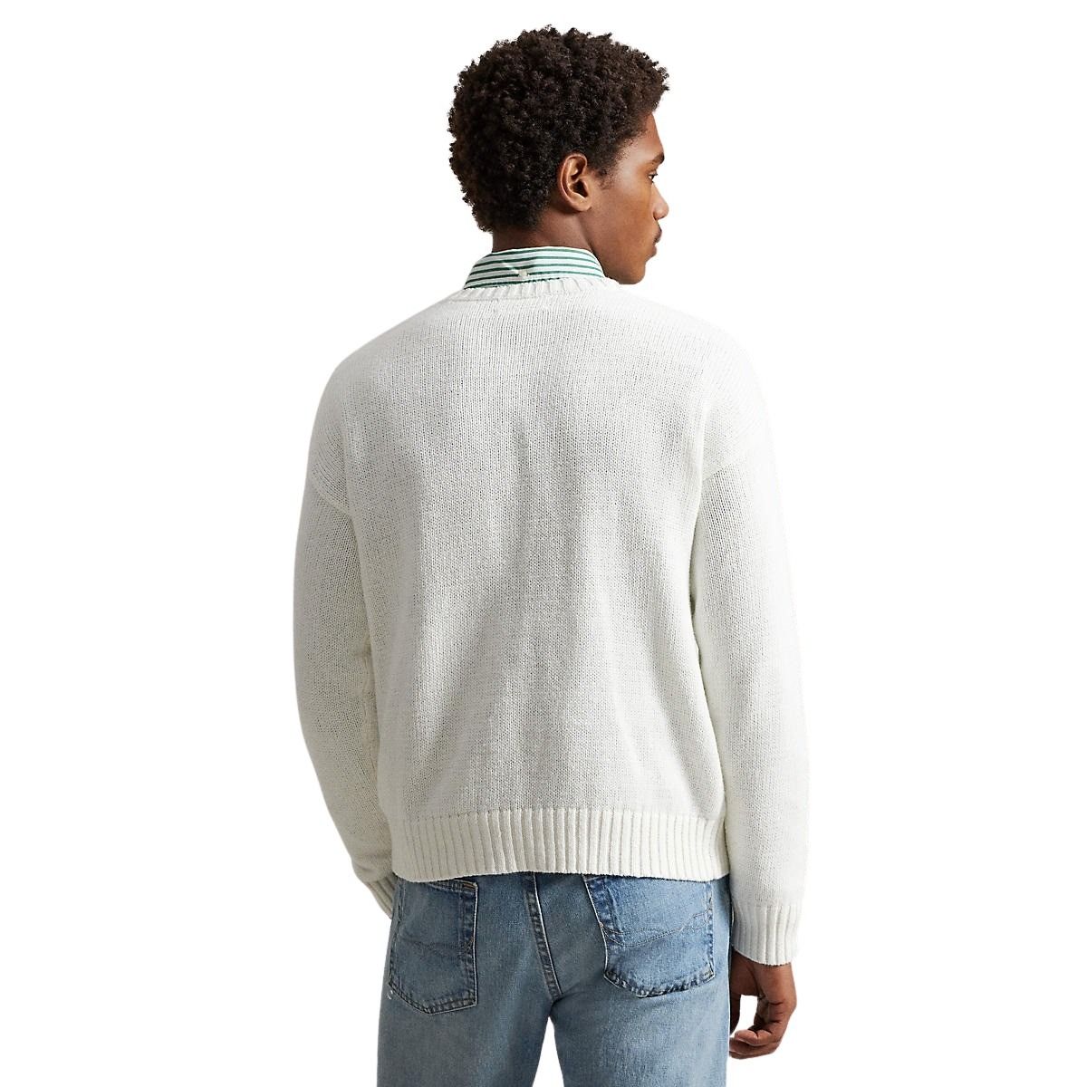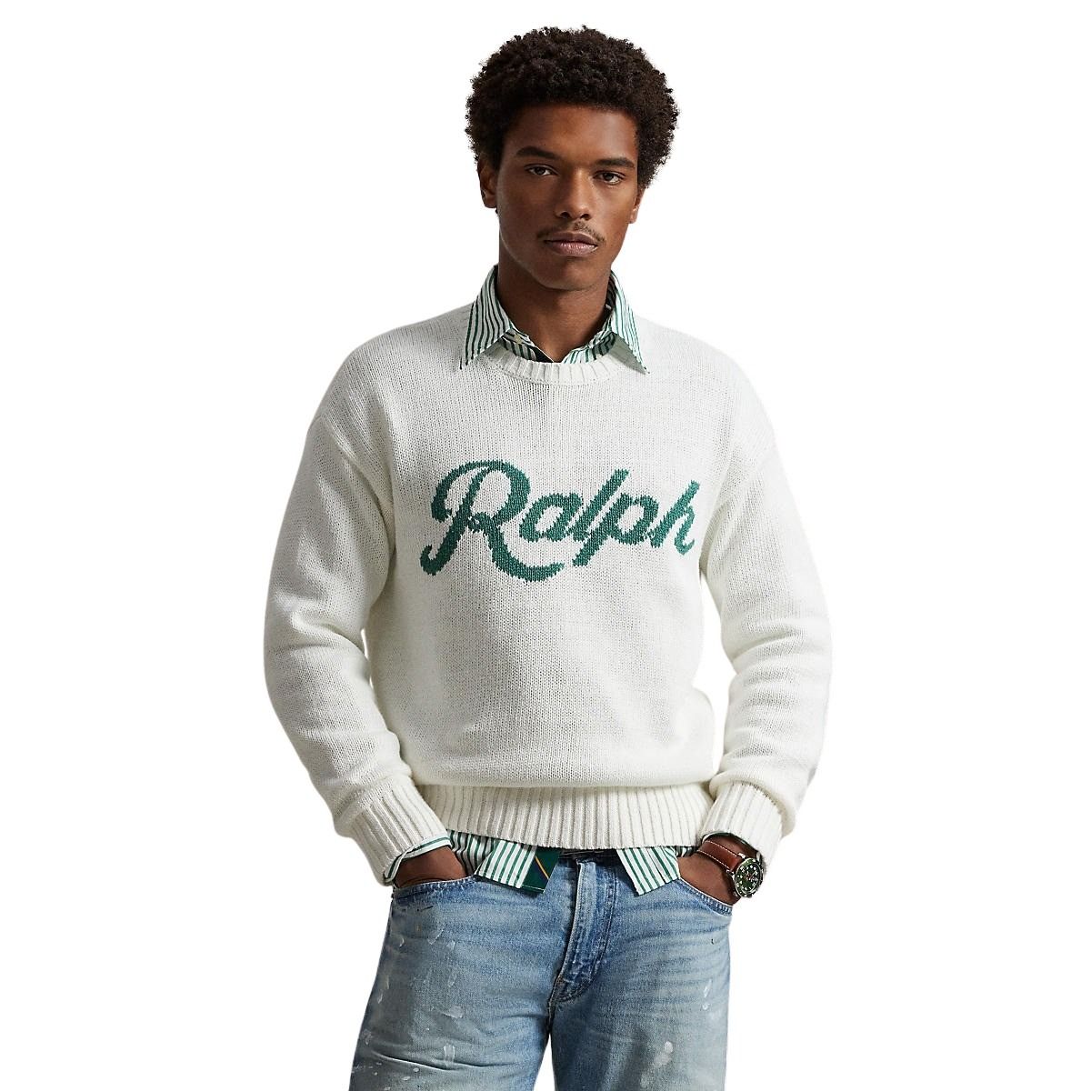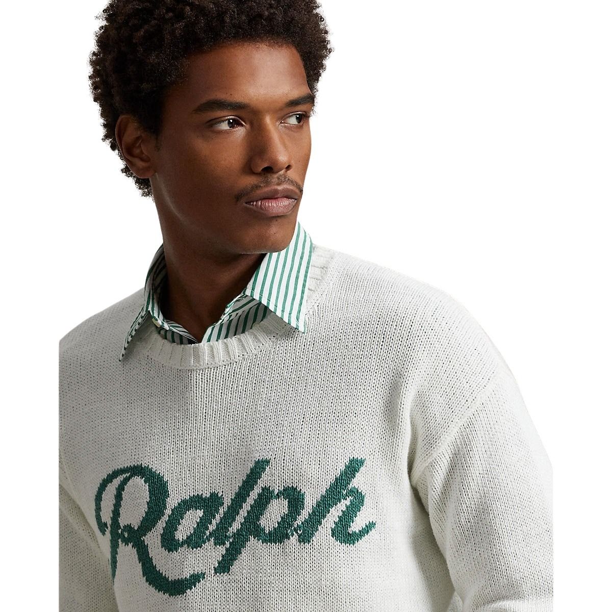 Strikkegenser til herre fra Polo Ralph Lauren. Strikkegenser i en myk blanding av lin og bomull. Den har en avslappet passform og en tydelig Ralph-logo strikket foran. Lett og behagelig genser som passer godt til både hverdags og mer avslappede anledninger. Perfekt å bruke alene eller over en skjorte.