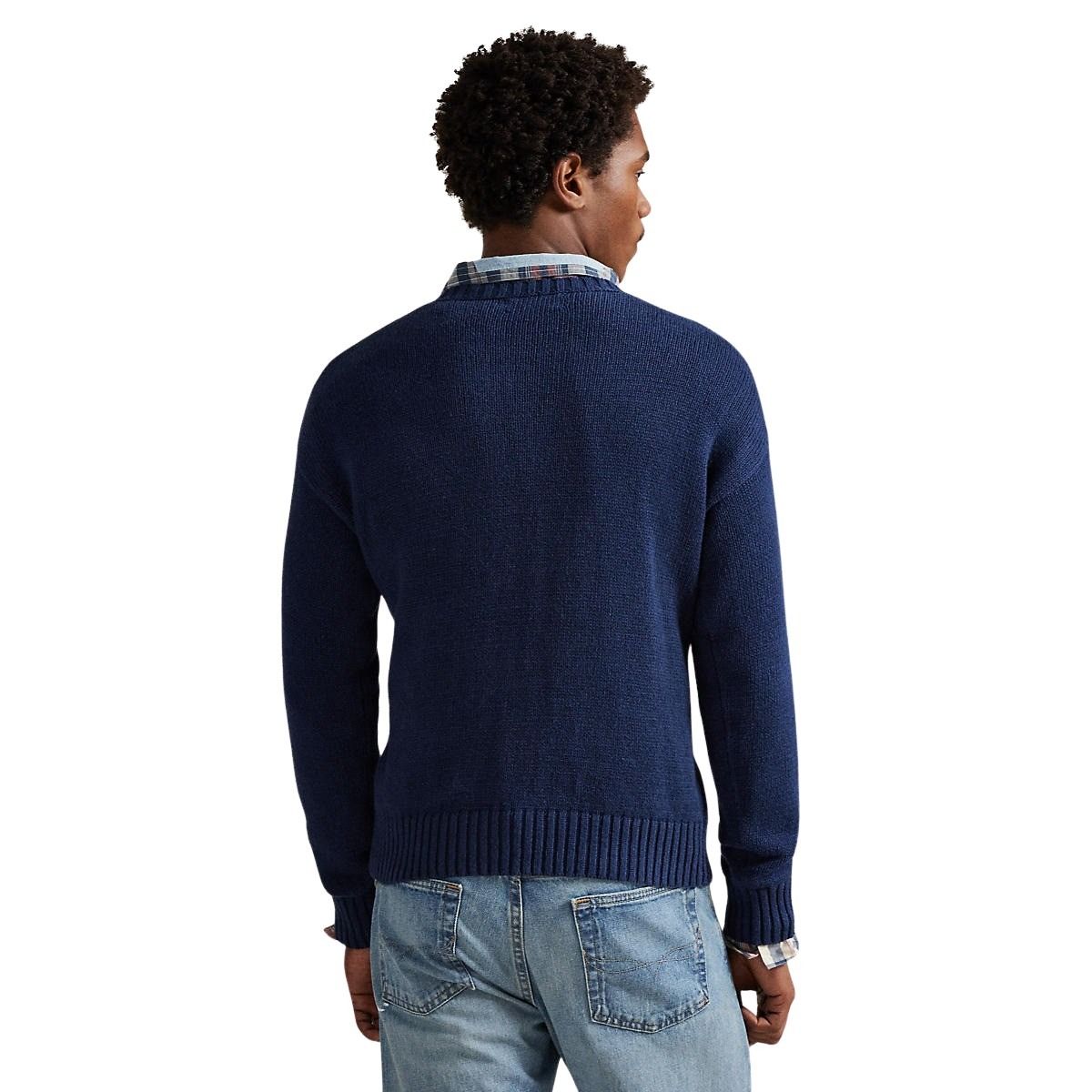 Strikkegenser til herre fra Polo Ralph Lauren. Strikkegenser i en myk blanding av lin og bomull. Den har en avslappet passform og en tydelig Ralph-logo strikket foran. Lett og behagelig genser som passer godt til både hverdags og mer avslappede anledninger. Perfekt å bruke alene eller over en skjorte.
