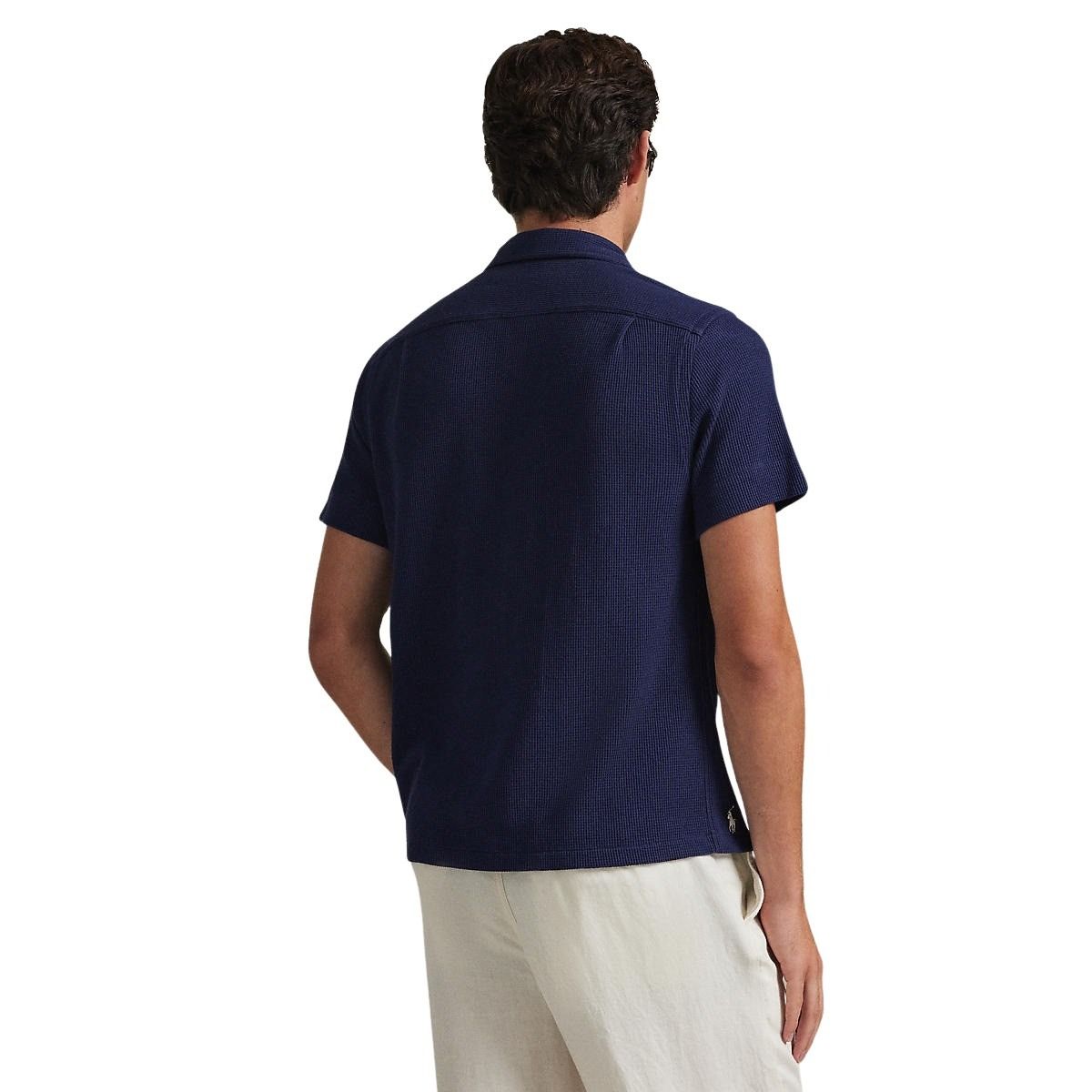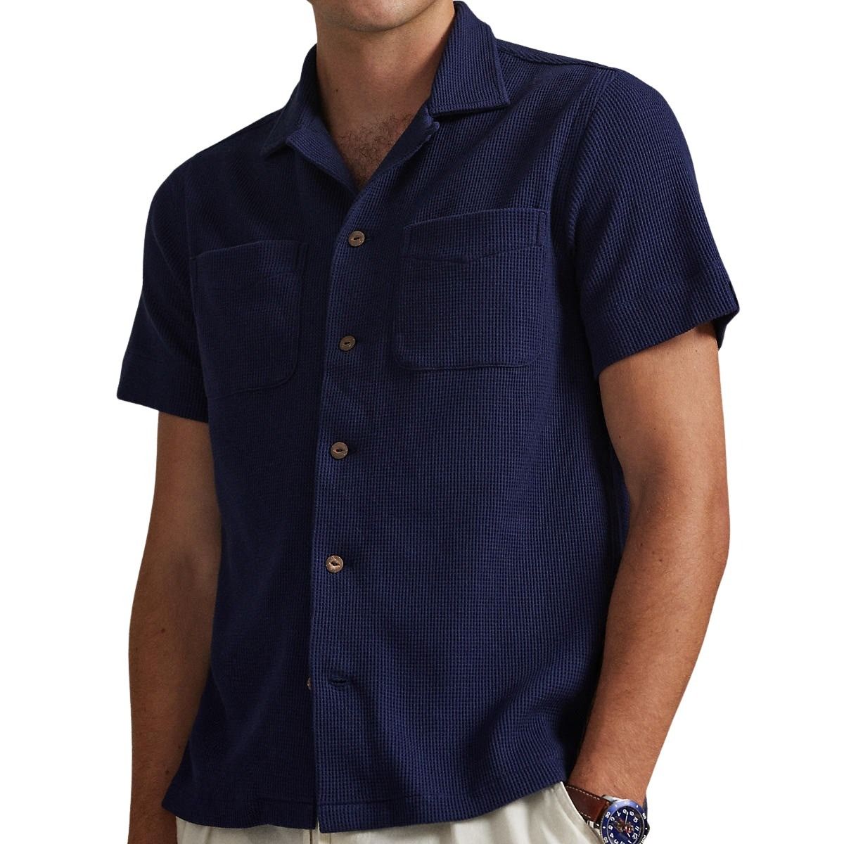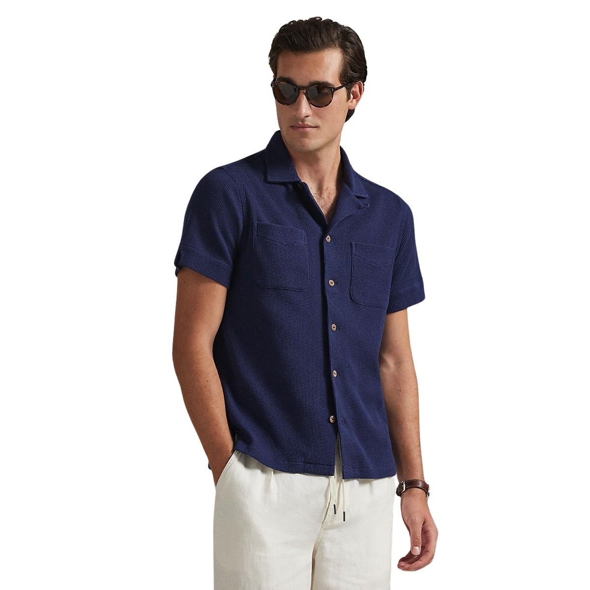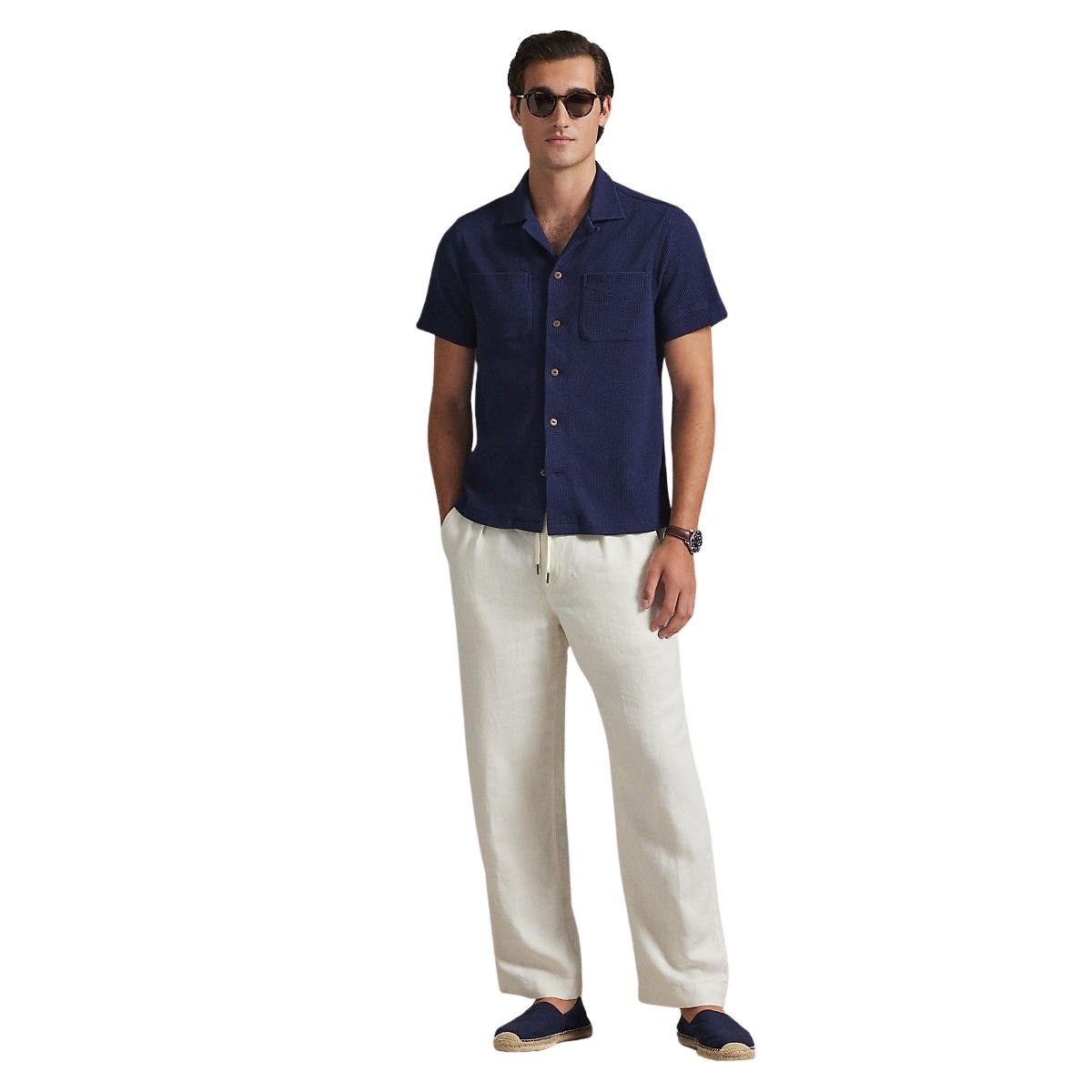 Kortermet skjorte til herre fra Polo Ralph Lauren. Laget i en lett blanding av bomull og lin. Vaffelstrikket struktur gir en luftig følelse og et avslappet uttrykk. Perfekt til varme dager og uformelle sommerantrekk.