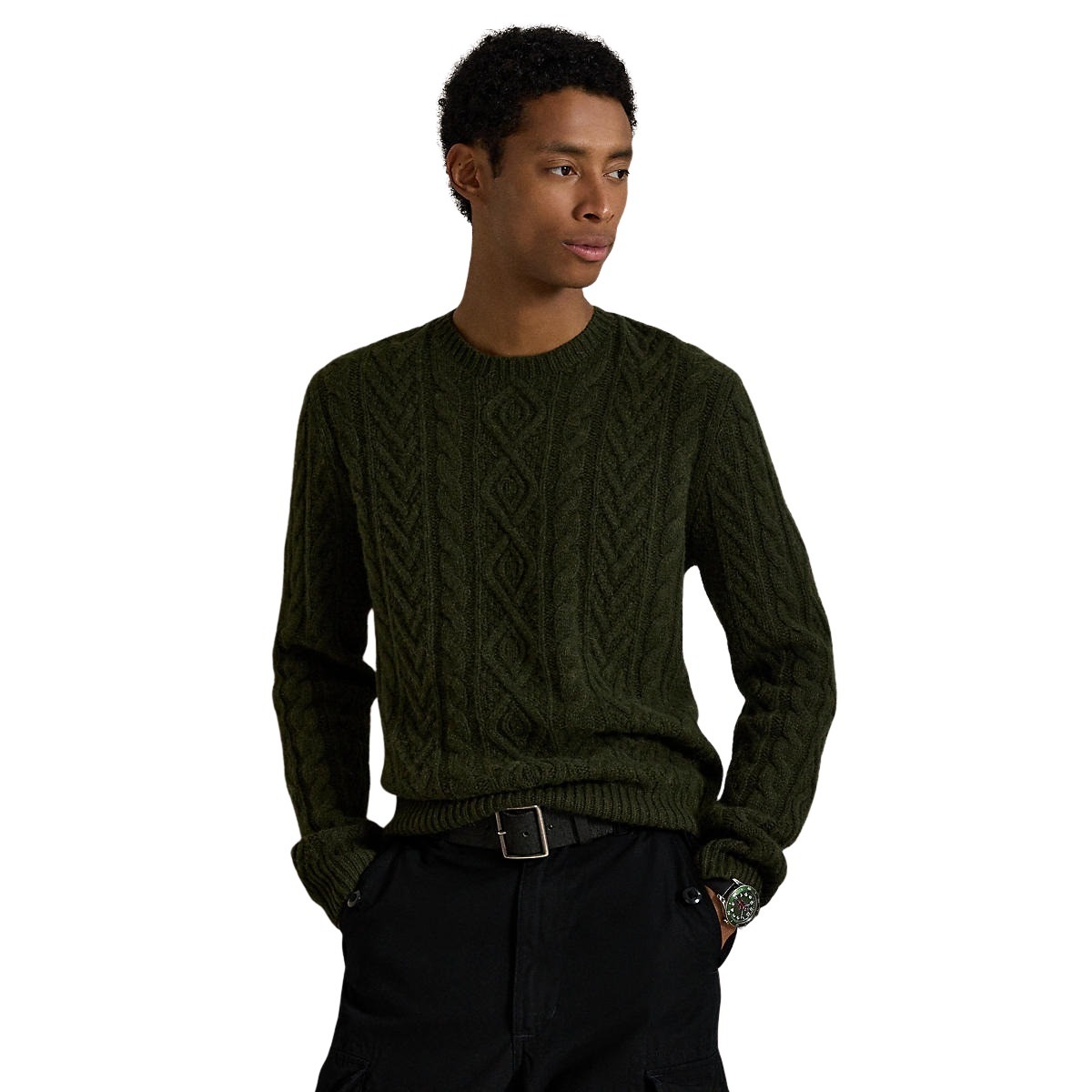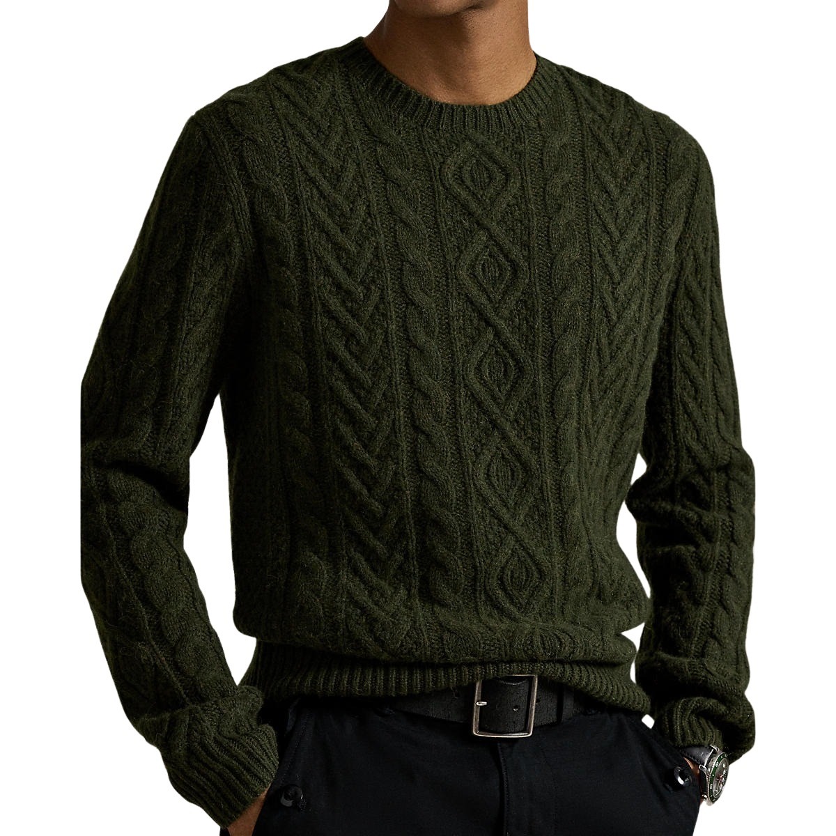 Genser til herre fra Polo Ralph Lauren. En moderne tolkning av den klassiske irske fiskergenseren. Strikket i en luksuriøs blanding av ull og alpakka, kombinerer den varme, slitestyrke og tidløs stil. Perfekt for den som verdsetter både tradisjon og raffinement.