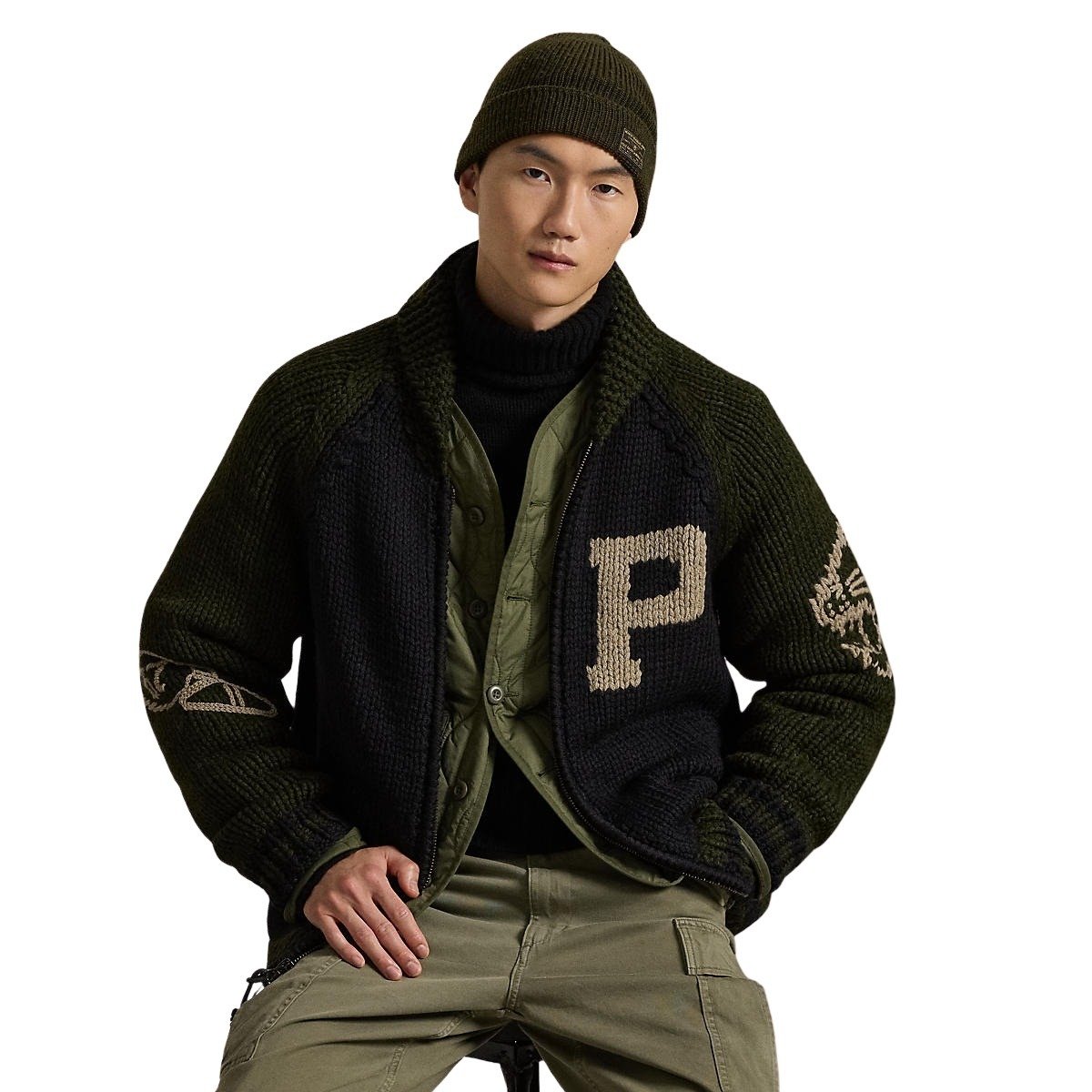 Cardigan til herre fra Polo Ralph Lauren. En eksklusiv cardigan i kraftig ull med inspirasjon fra vintage-varsitystil. Den har sjalkrage, glidelås og ikoniske intarsiadetaljer, som den store “P” foran og motiv på ermet. Et karaktersterkt plagg som kombinerer varme, komfort og klassisk Polo-arv.