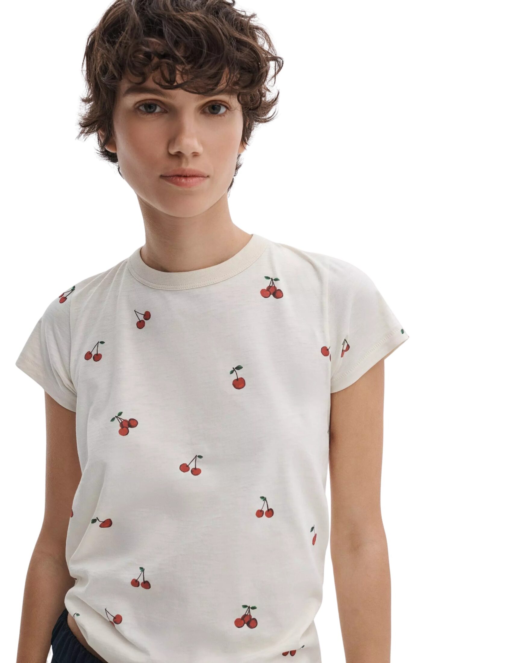 Cherry Graphic Tee fra Rag & Bone. T-skjorte som kombinerer en klassisk silhuett med et lekent kirsebærprint som gir antrekket et friskt uttrykk. Laget i myk bomull med en flatterende passform. Perfekt til både jeans, skjørt og avslappede hverdagslooks.
