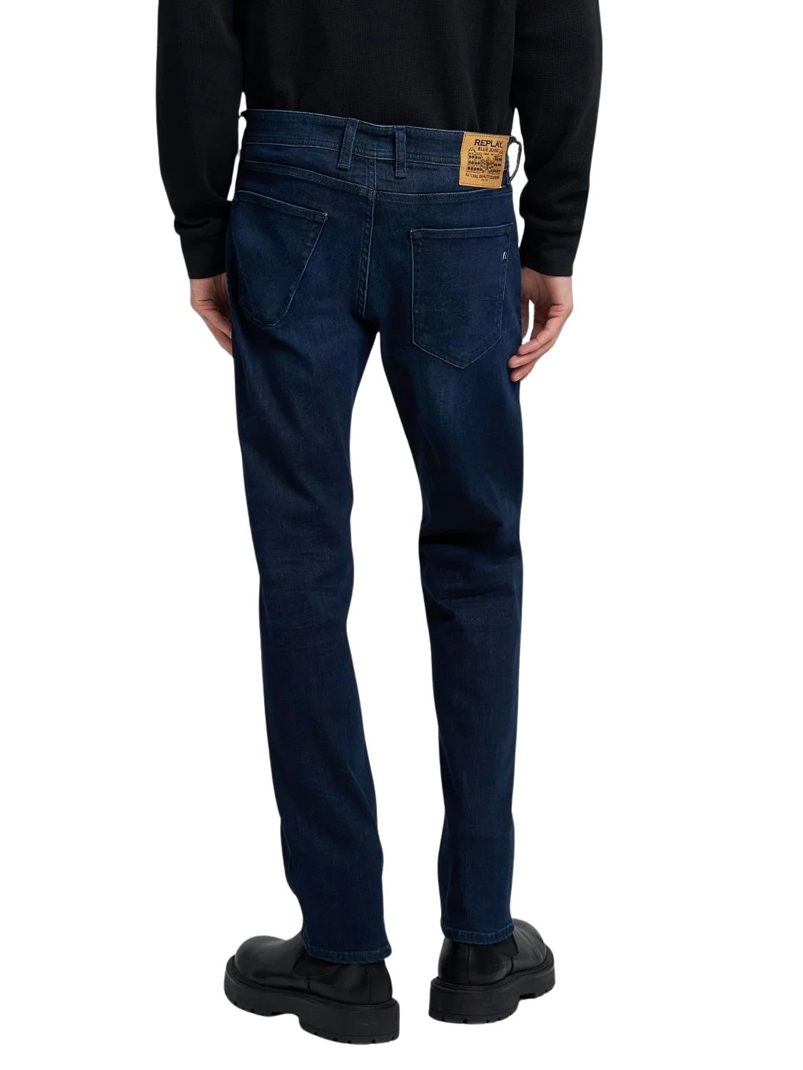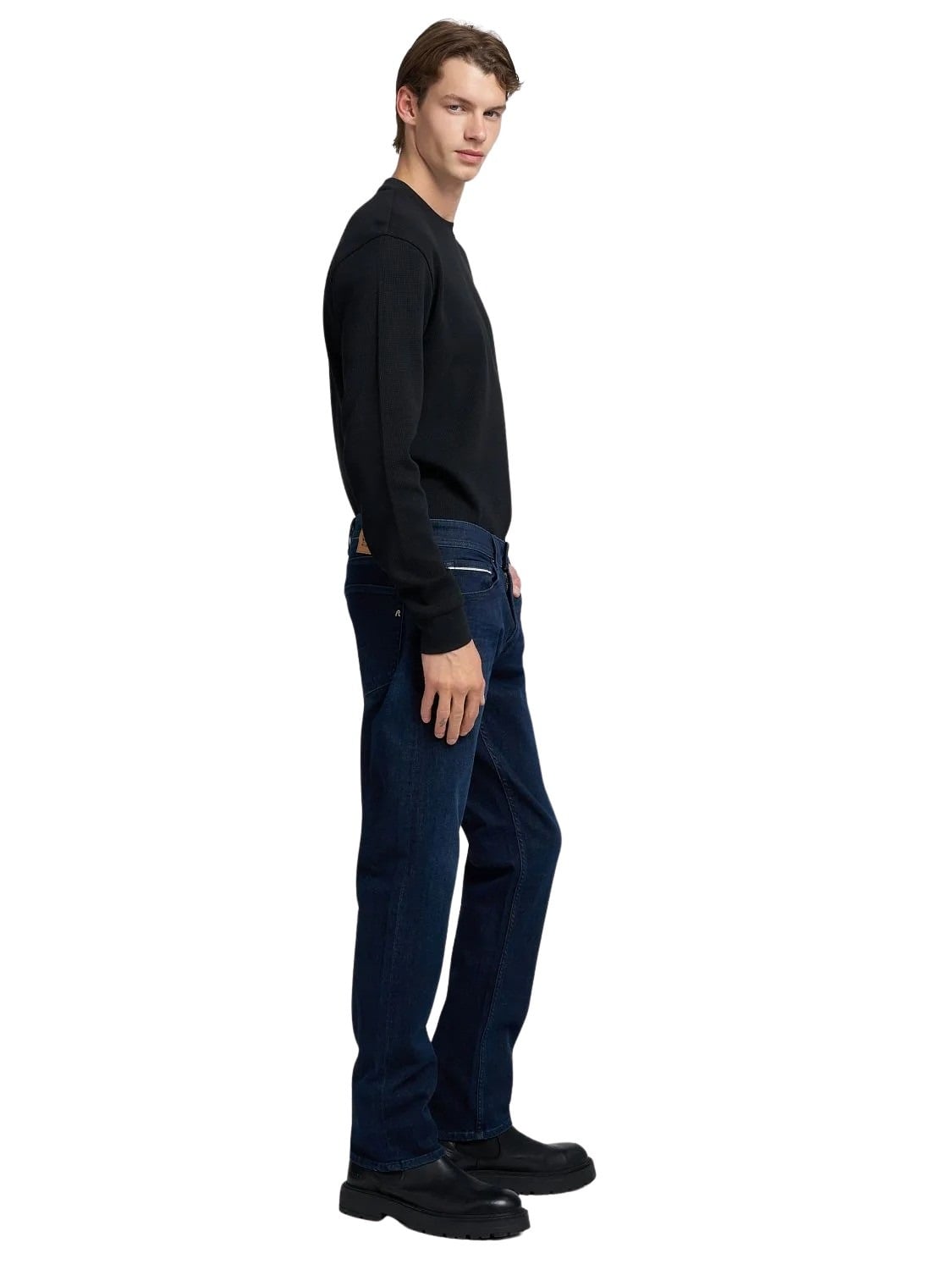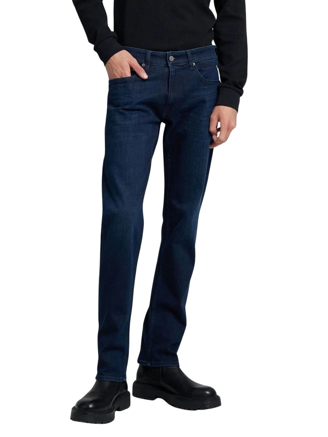 Jeans til herre fra Replay med straight fit. Jeansen er konstruert av stretchbomull denim som passer for alle årstider og har en mørk vask. Den klassiske fem-lommers stilen har også detaljer på myntlommekanten og en brodert R-logo på baklommen.