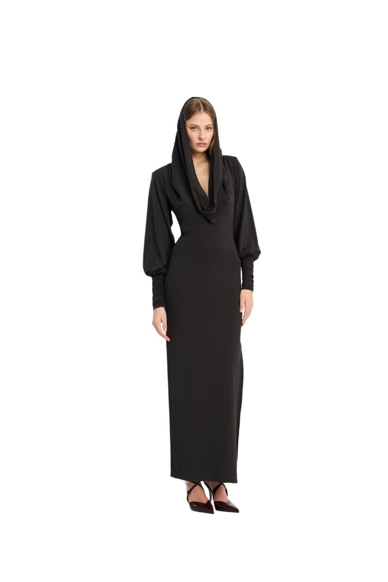 Slinky Hooded Dress – Sort