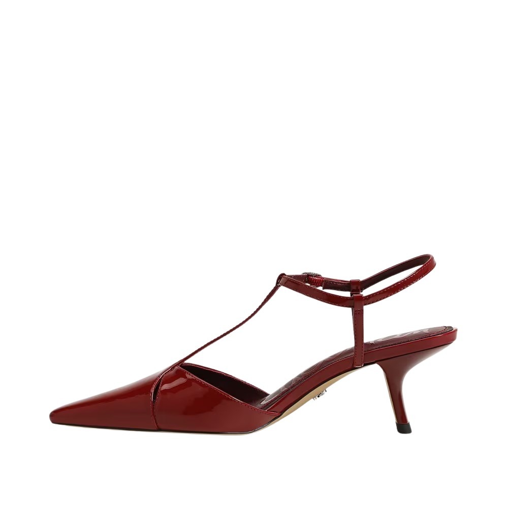 Briella T-Strap Pump – Deep Scarlet Patent Leather