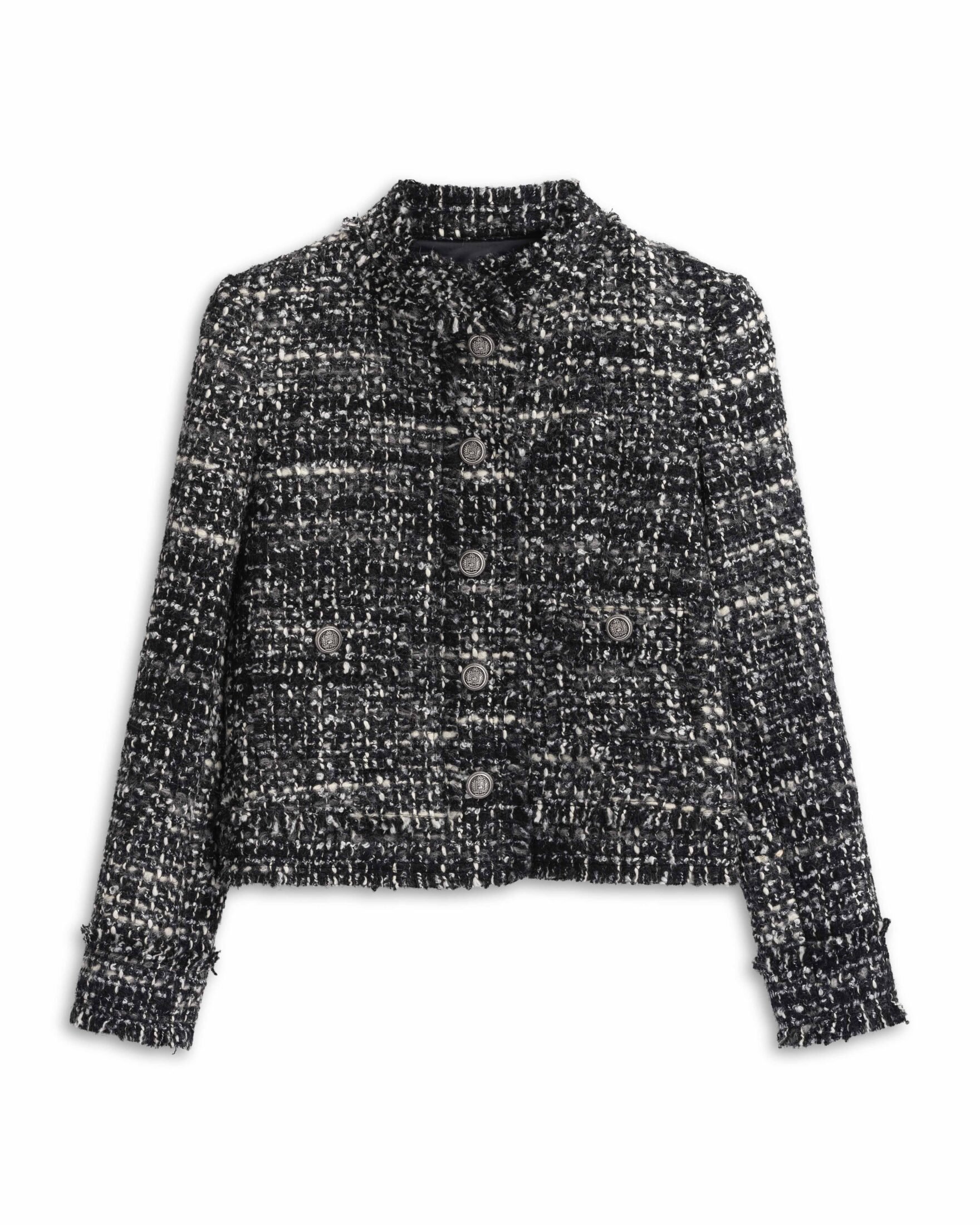 Klassisk jakke til dame fra Sand Copenhagen. En tidløs tweedjakke med moderne snitt og elegante detaljer. Laget i en strukturert ullblanding med et eksklusivt uttrykk som kombinerer sofistikert eleganse og uanstrengt stil. Jakken har markerte lommer, dekorative knapper og en kort, feminin passform som gjør den perfekt både til skjørt, dressbukser og jeans. Bruk den som et statement-plagg på kontoret eller som en stilig jakke til kvelden. Et ikonisk tillegg til enhver garderobe.
