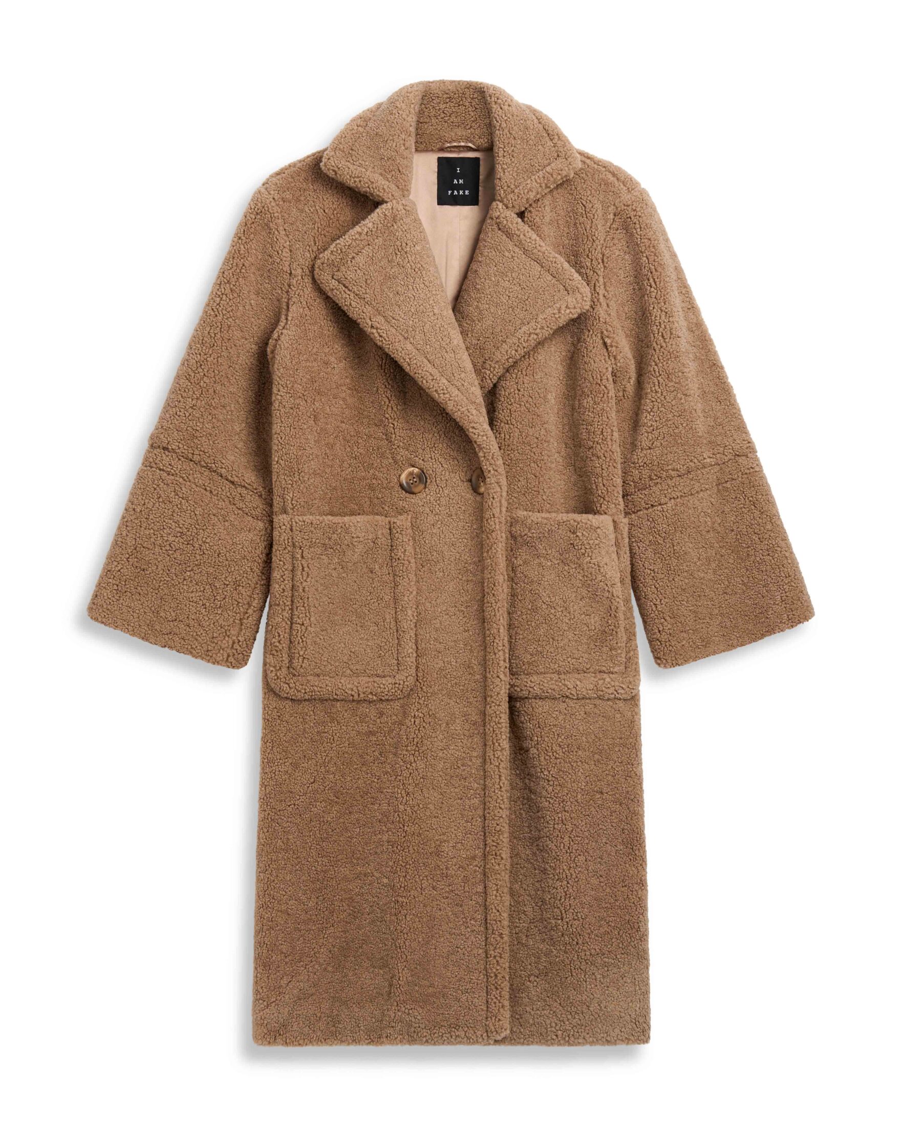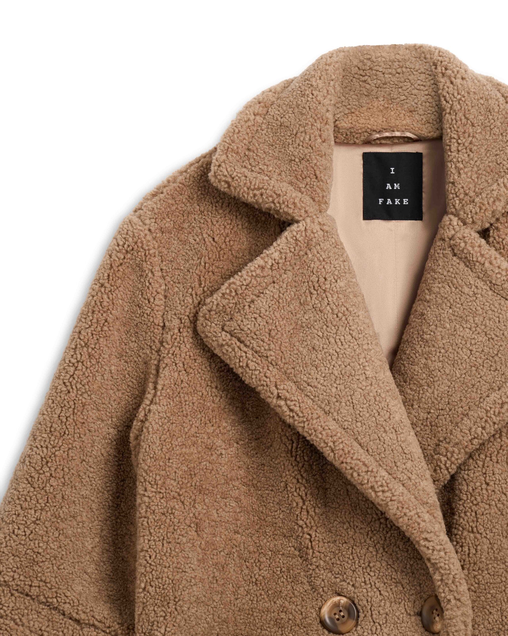 Kåpe til dame fra Sand Copenhagen. Perfekte ytterjakken for kjølige dager, laget i et deilig teddy-materiale som gir et avslappet, men samtidig sofistikert uttrykk. Den rette, lange passformen, brede slag og dobbeltspent lukking gir frakken et moderne preg, mens de store lommene tilfører både funksjon og stil. Bruk den over hverdagsantrekket for en effortless chic look.