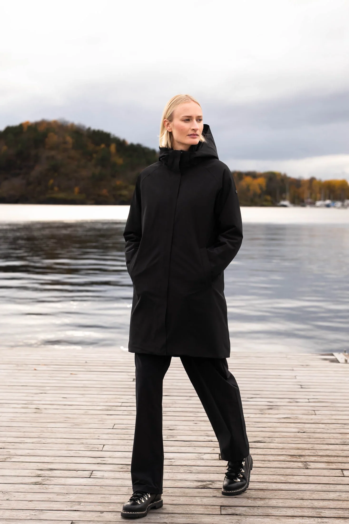 Cover II fra Scandinavian Edition. Wn stilren, lang helårsjakke med vann- og vindtett yttermateriale som beskytter i all slags vær. Jakken har avtakbar hette, skjult glidelås og justerbare mansjetter som holder elementene ute. Lett isolert for komfort uten å bli tung, og har praktiske lommer med god plass. En moderne, ren og funksjonell jakke som passer perfekt til både hverdag og pendling.