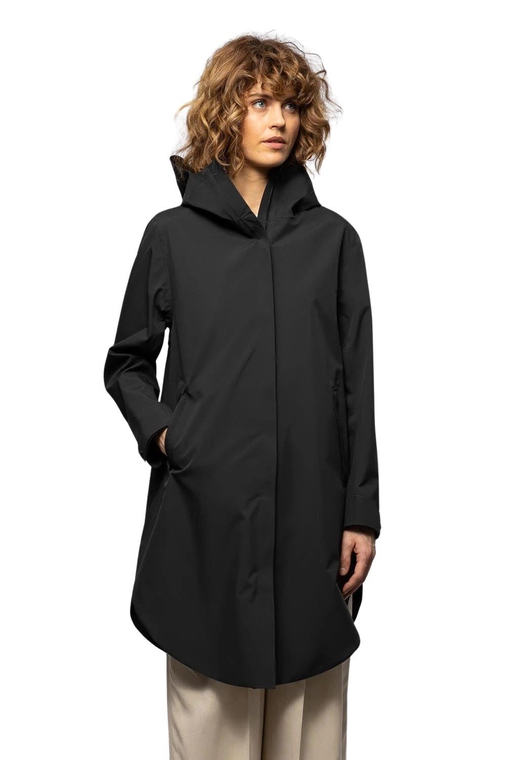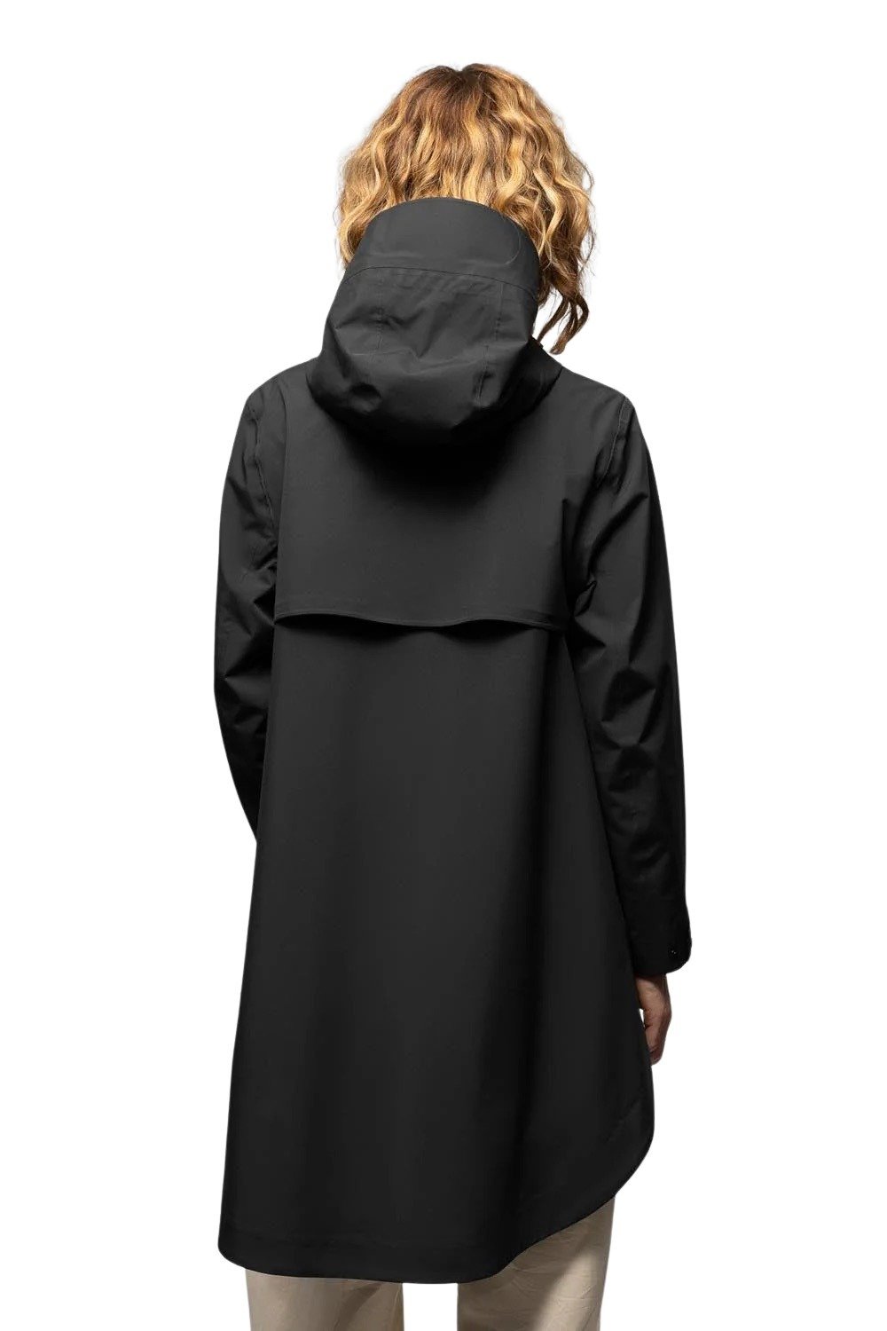 Jakke til dame fra Scandinavian Edition. En allsidig skalljakke laget for uforutsigbart vær. Inspirert av ponchoens bevegelsesfrihet gir den rom for lag-på-lag og holder deg komfortabel året rundt. Laget i 100% vind- og vanntett 3-lags stoff med tapede sømmer, samtidig som den er pustende. Den har en rett, litt bred passform som passer perfekt over gensere eller ekstra lag på kjølige dager.