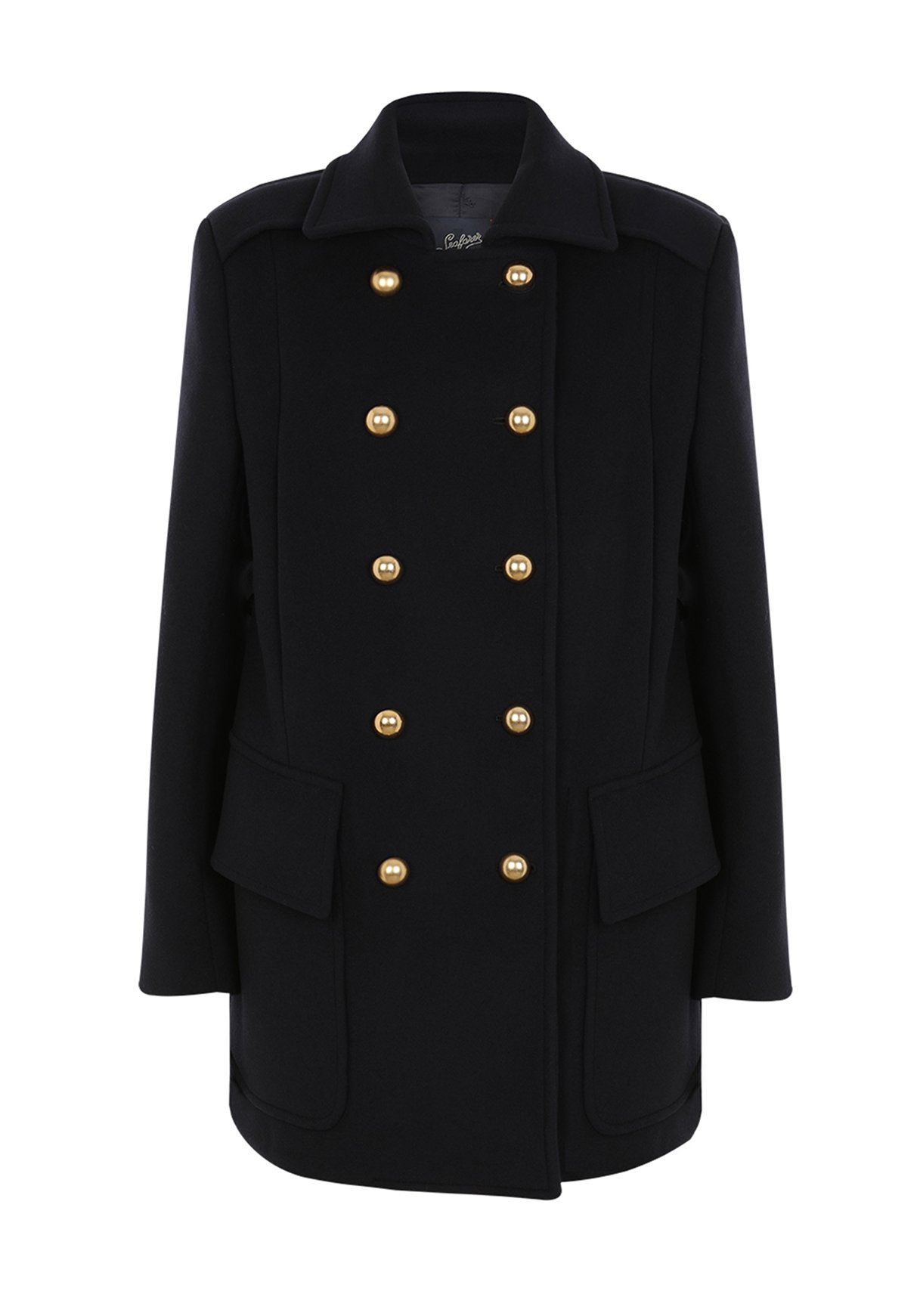 Kåpe til dame fra Seafarer. Laget i en varm kvalitet av ull og kasjmir, som holder deg komfortabel gjennom sesongen. Tidløs dobbeltspent kåpe som kombinerer maritim inspirasjon med eksklusiv stil. Med gullknapper som blikkfang og en elegant, rett passform gir den et sofistikert uttrykk som passer både til hverdags og mer formelle anledninger.