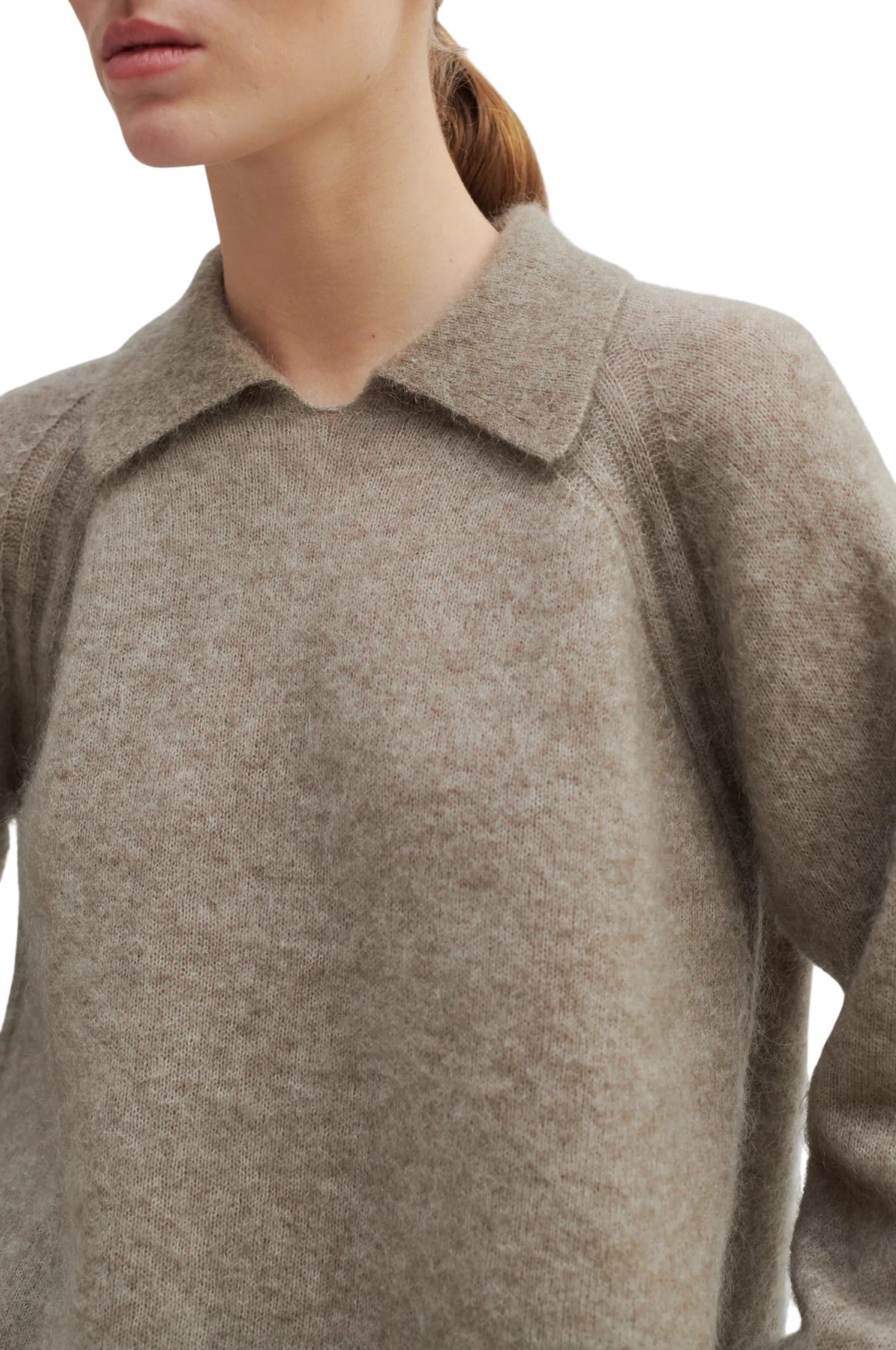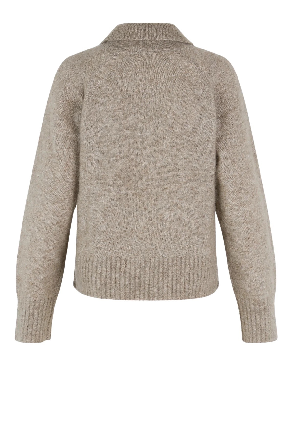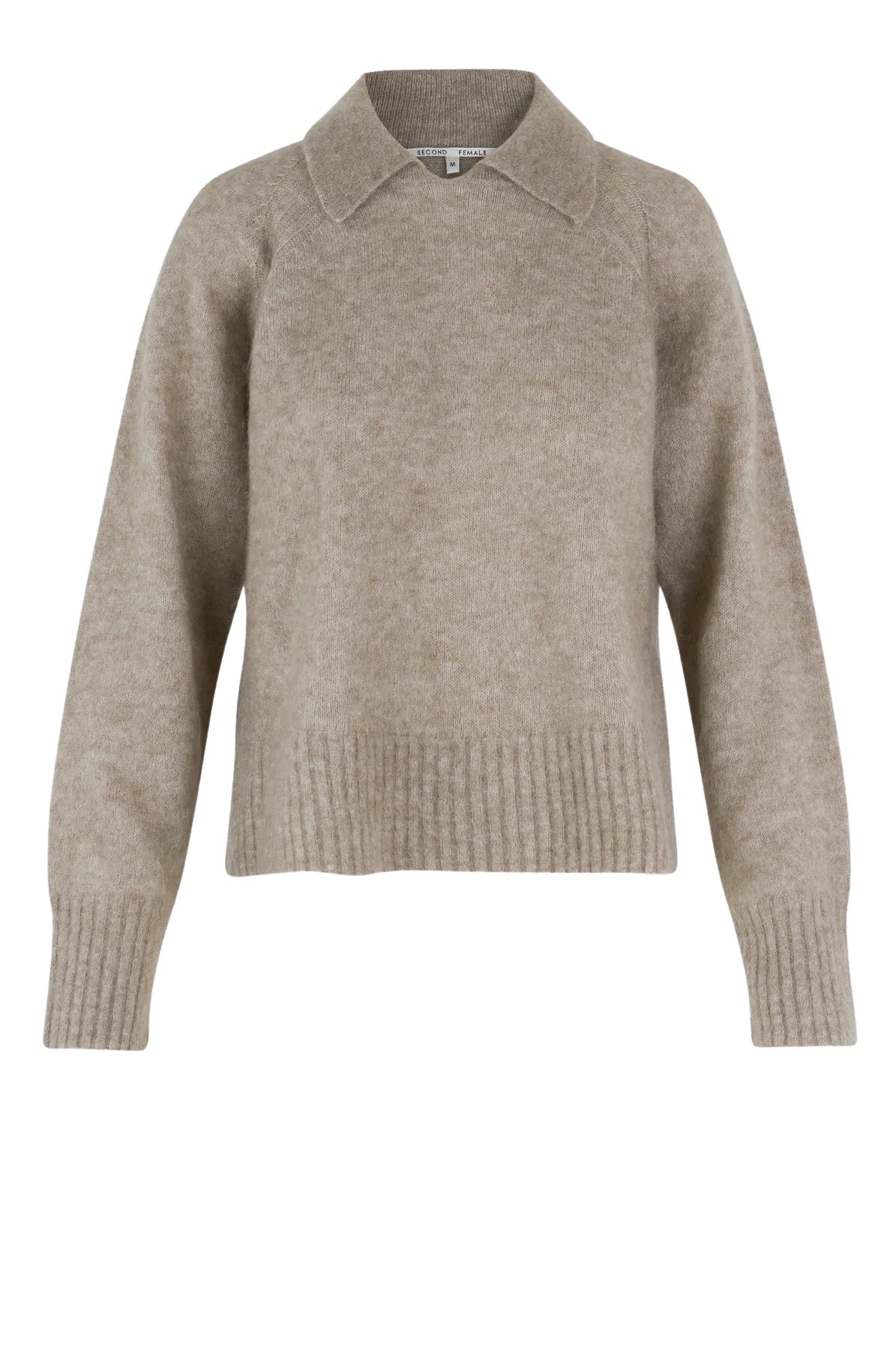 Strikket genser med krage fra Second Female. Genseren har ribbede detaljer, og kommer i en myk mohairblanding.