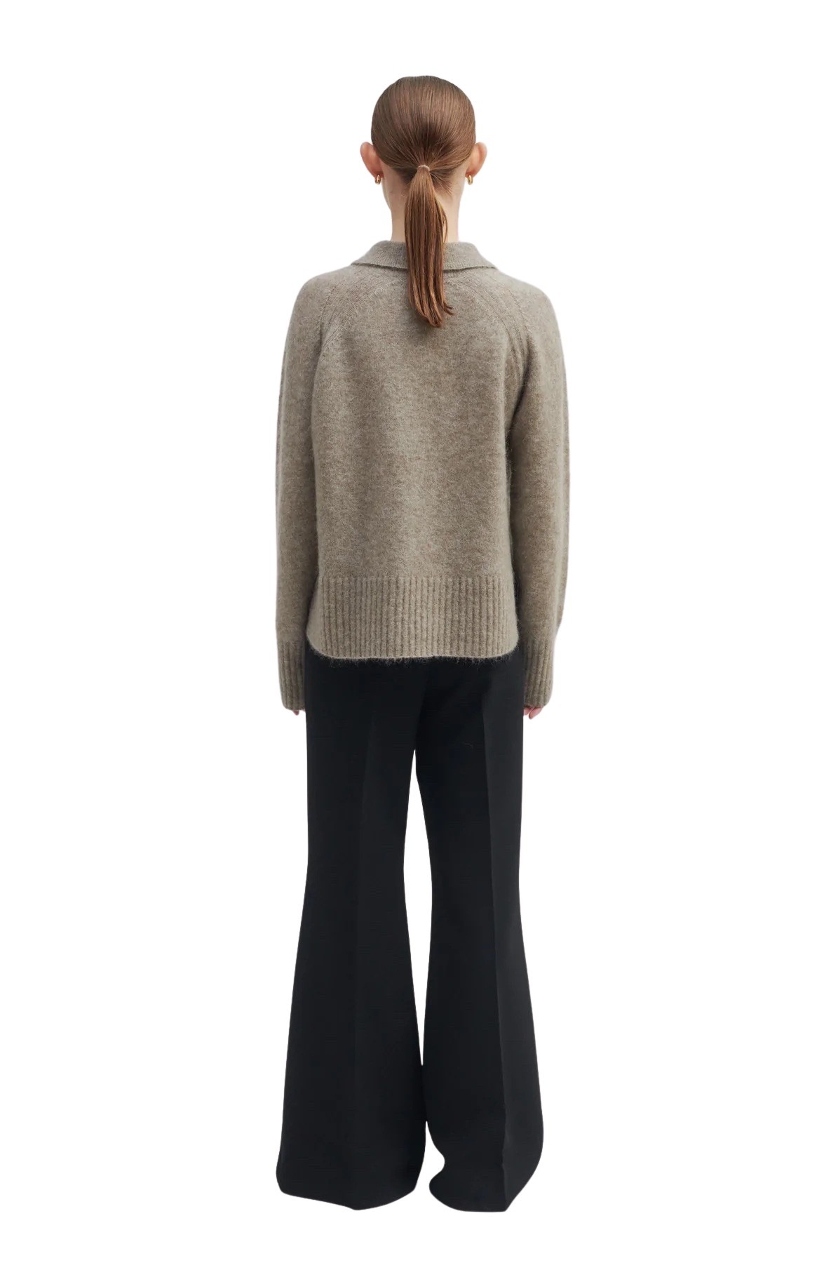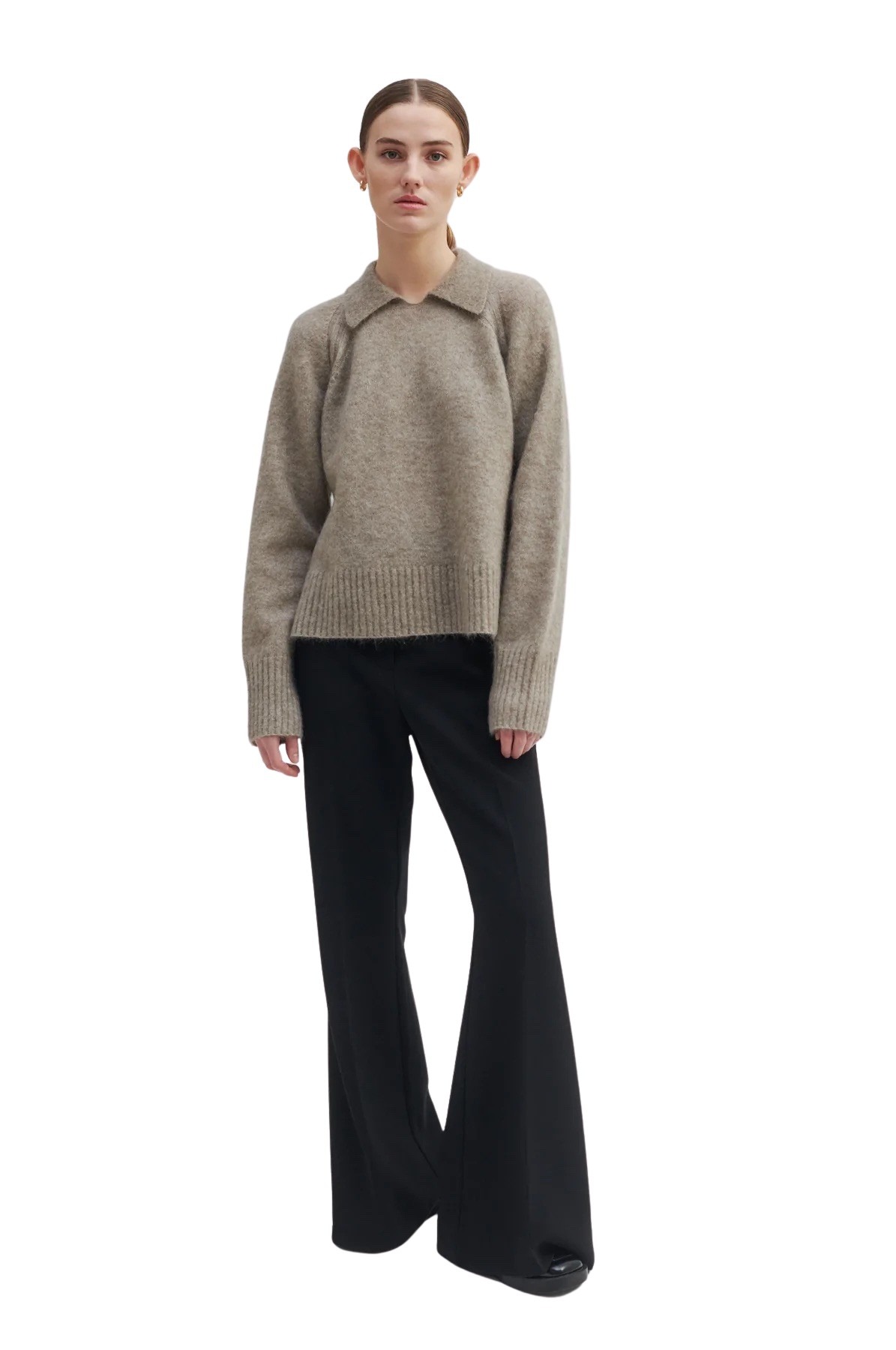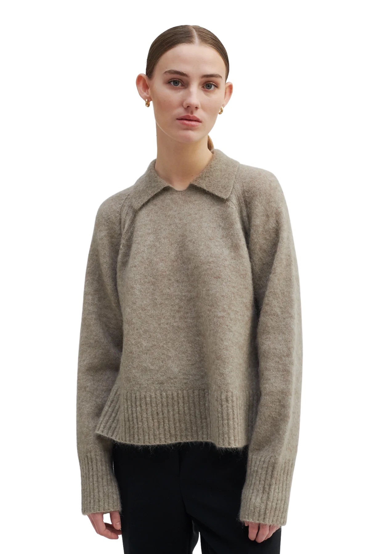 Strikket genser med krage fra Second Female. Genseren har ribbede detaljer, og kommer i en myk mohairblanding.