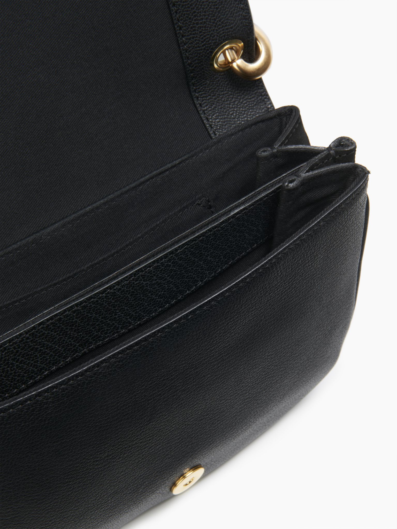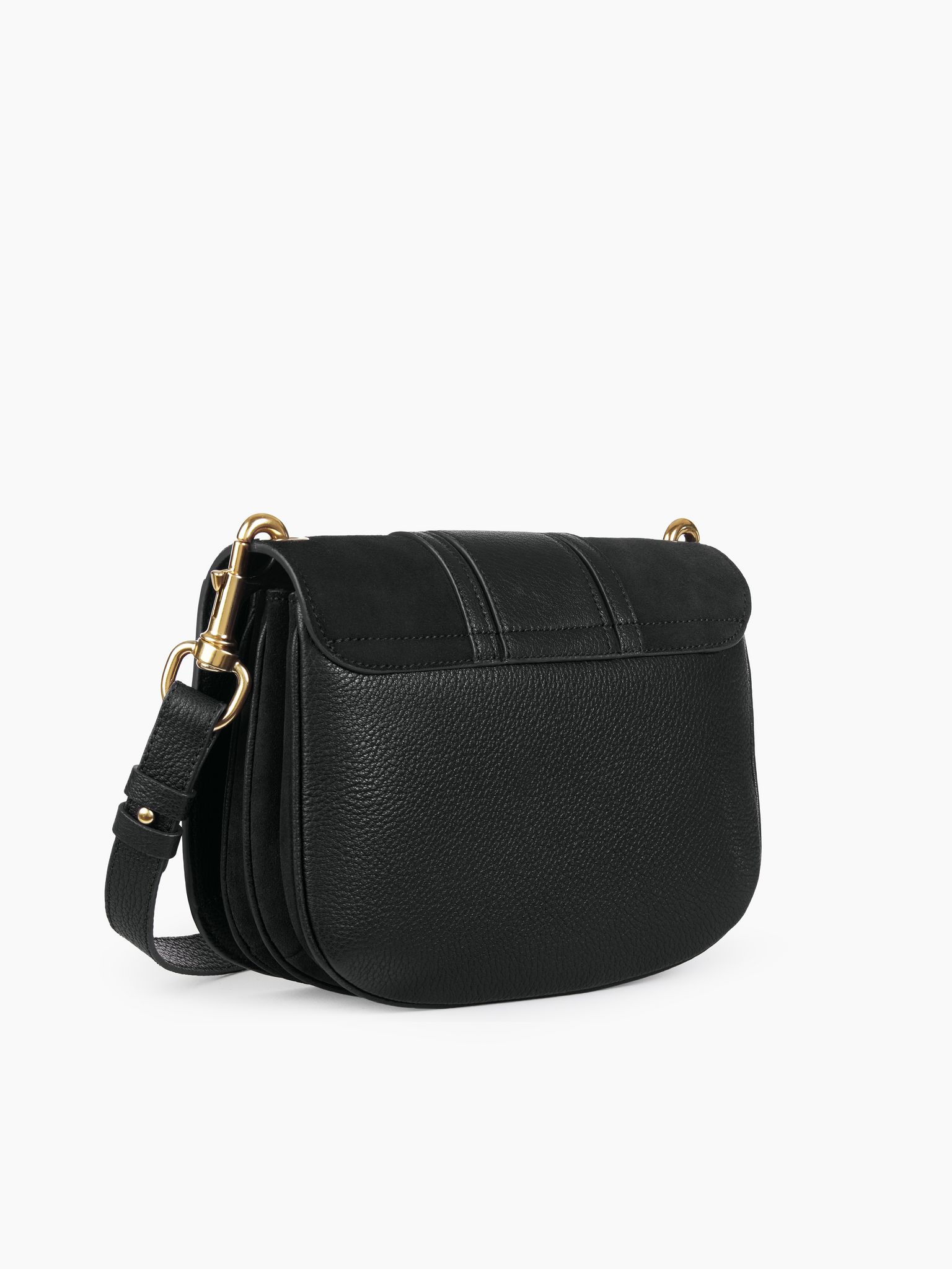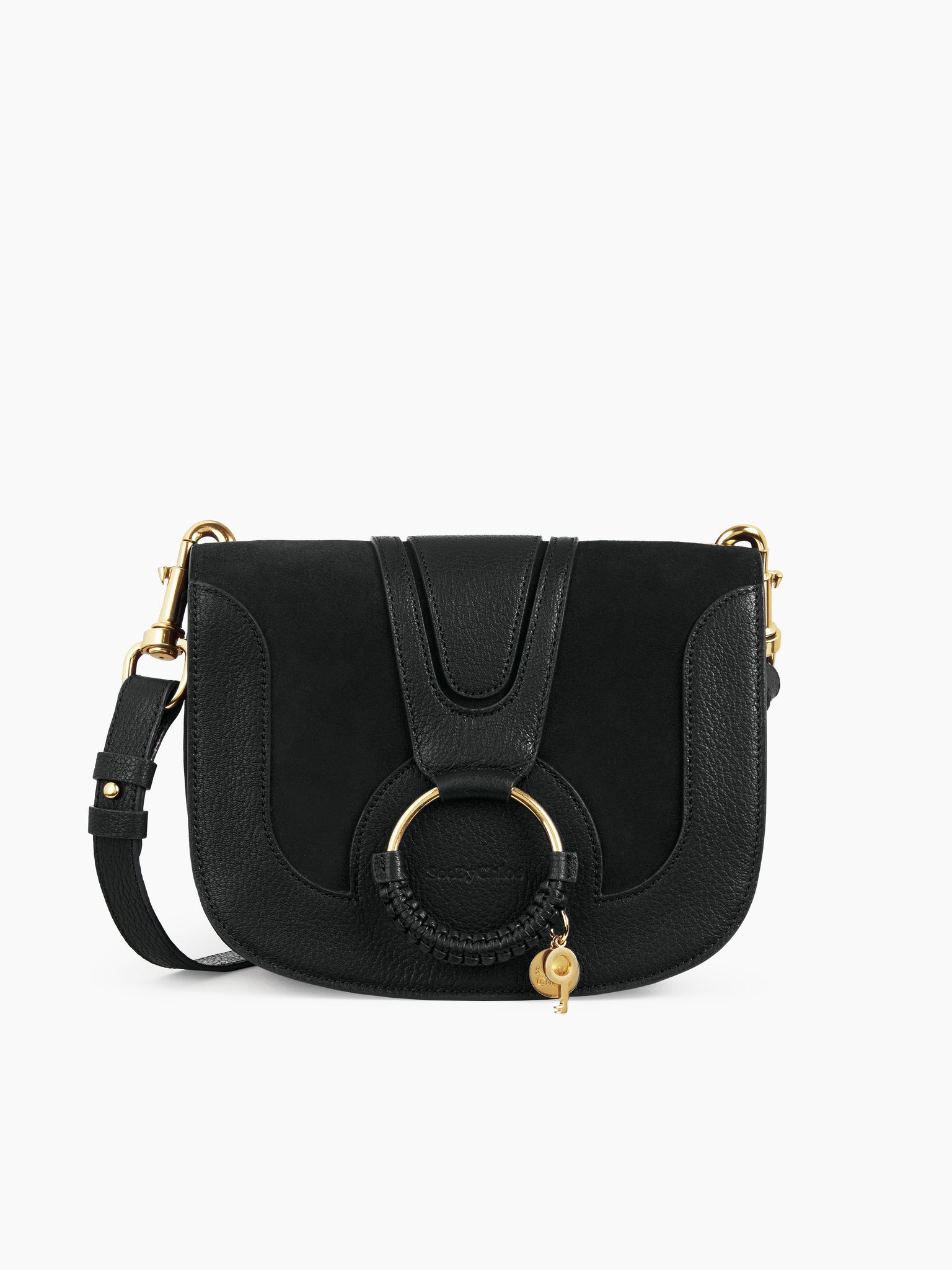 Sort skulderveske i kuskinn med semskede detaljer fra See By Chloé. Vesken kommer med en justerbar skulderreim og har en stor ring i front med flettet skinndetalj som kjennetegner merket. Gulldetaljer i messing.