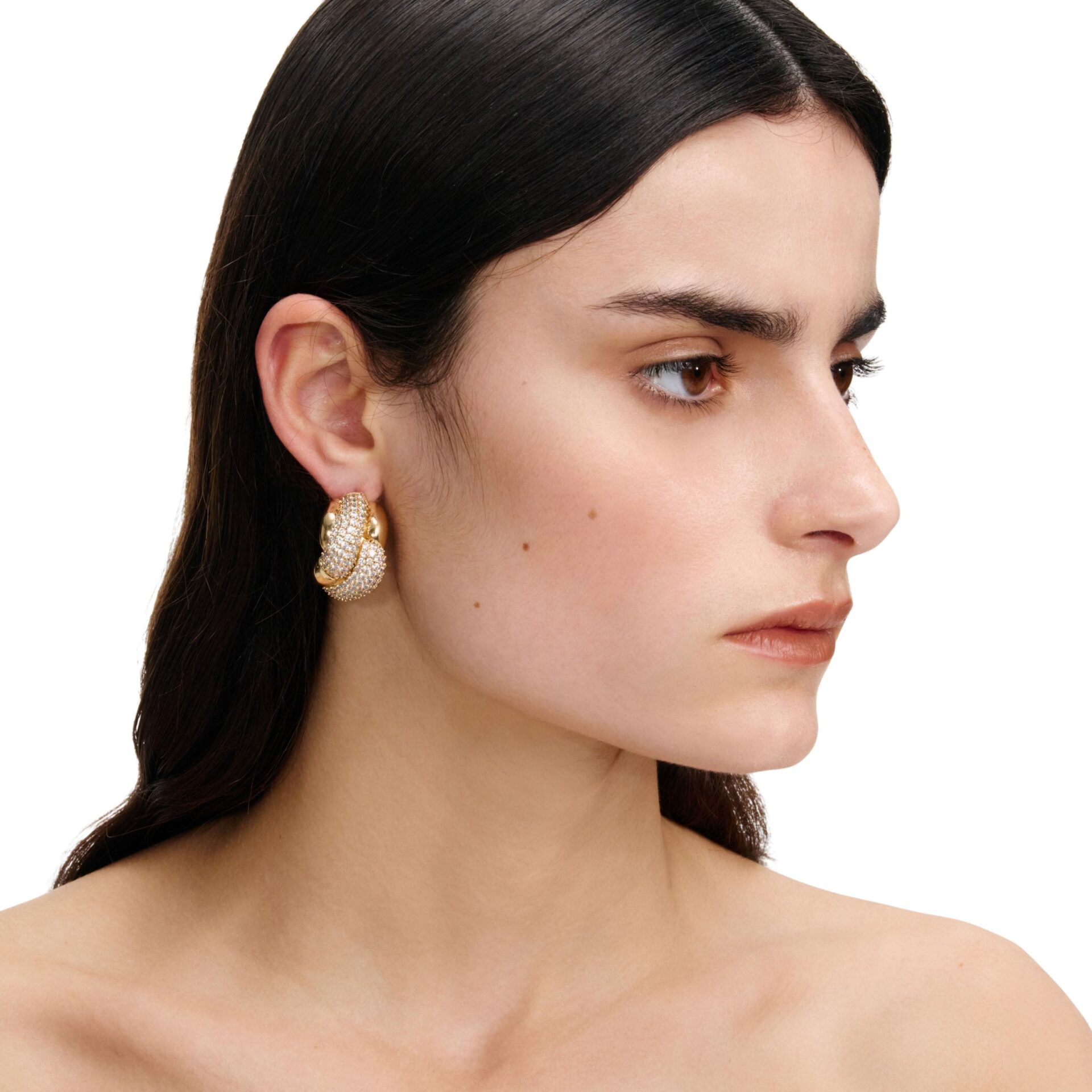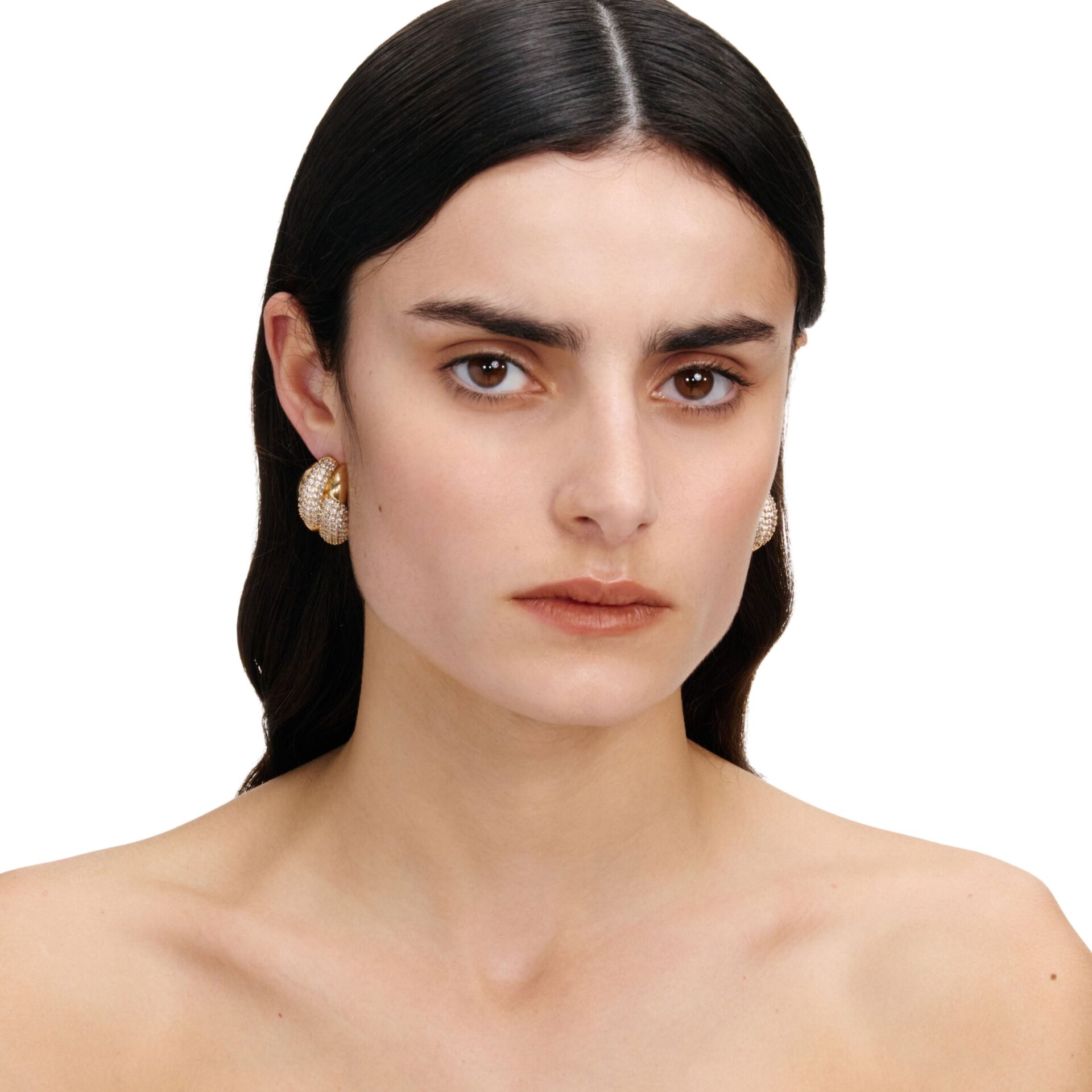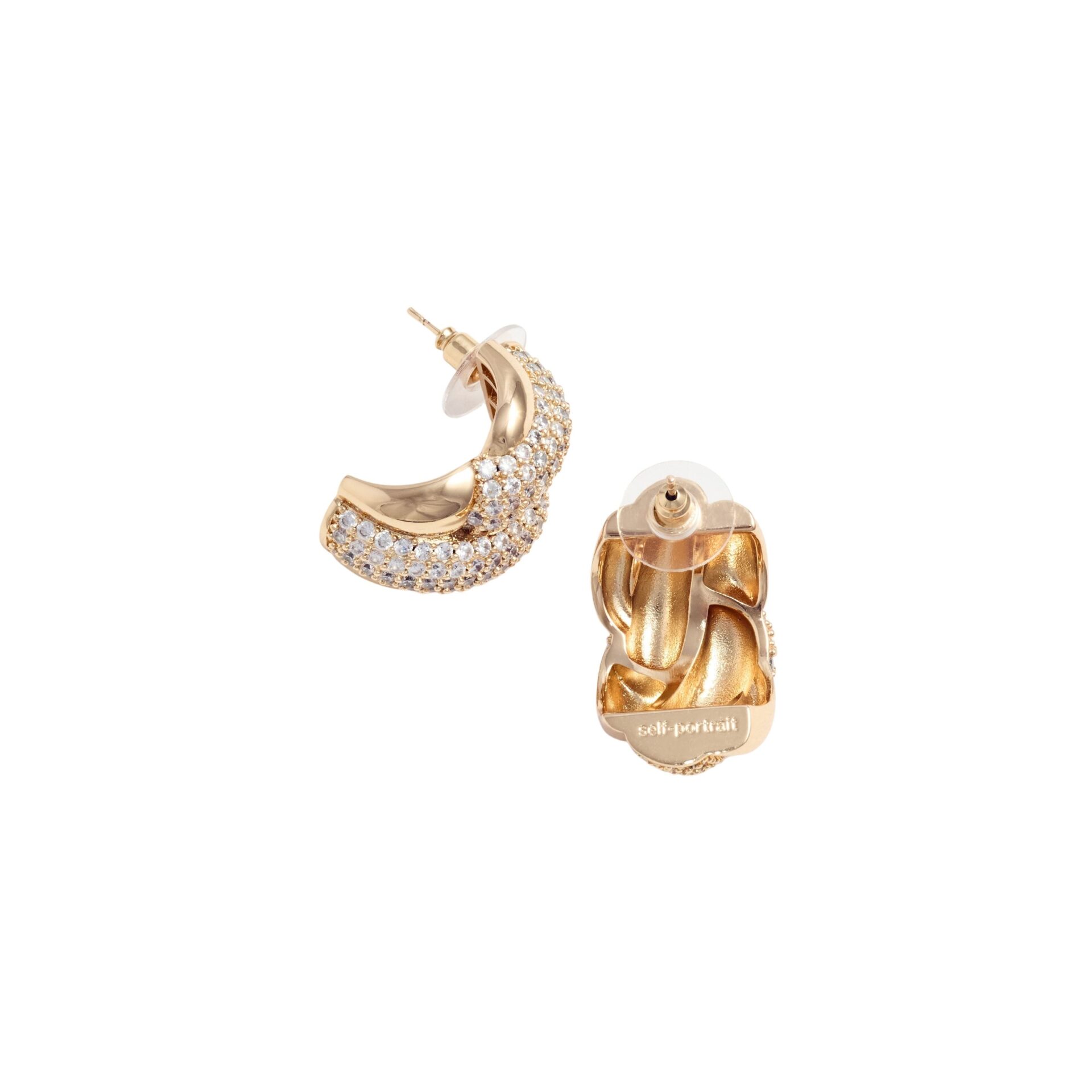 Øredobber fra Self-Portrait. Gullfargede øredobber med skulpturell knutedesign dekorert med glitrende krystaller. Det elegante uttrykket gir antrekket en eksklusiv og moderne touch. Perfekte til selskapskjoler, men like fine for å løfte en enkel hverdagslook.