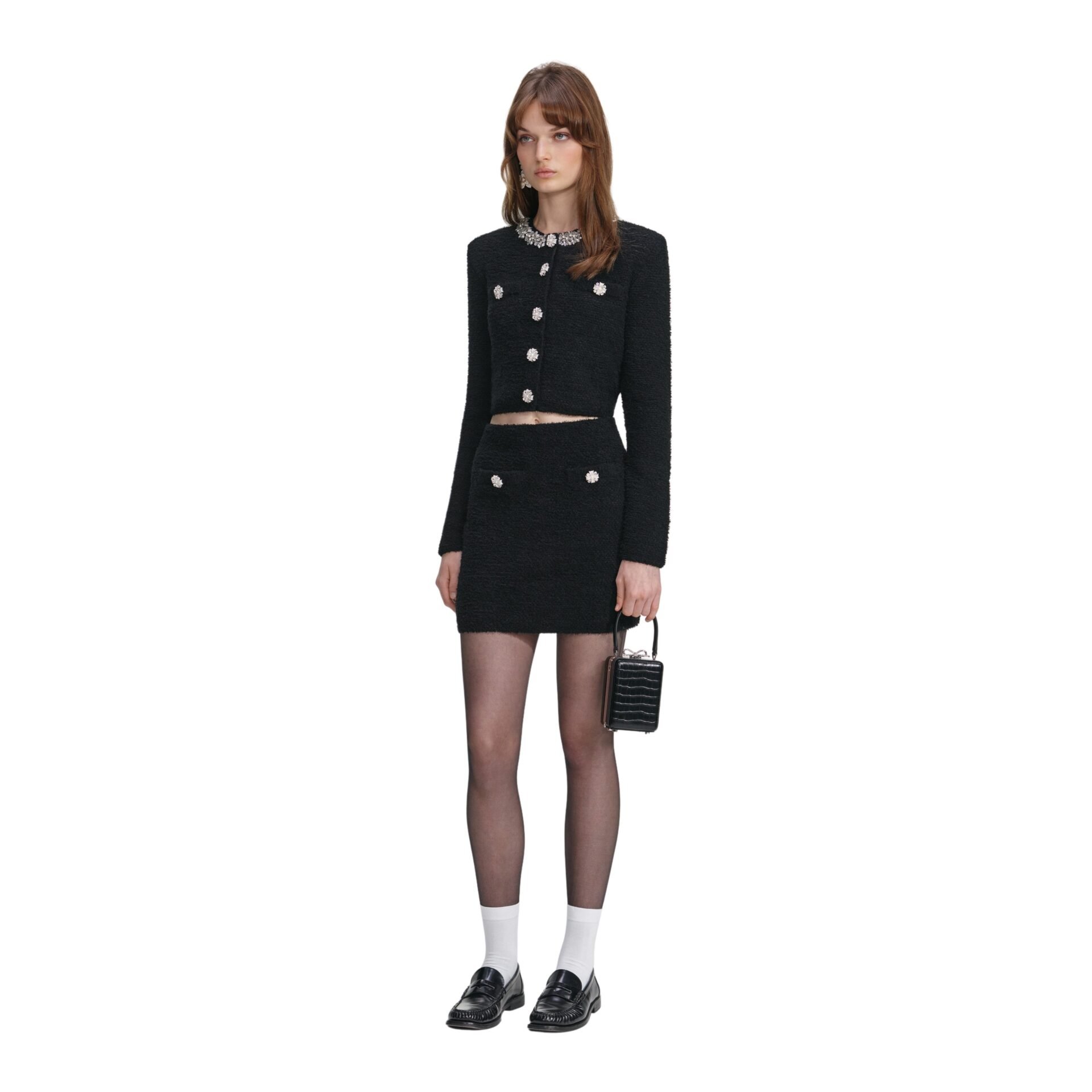 Crystal Trim Cardigan – Sort