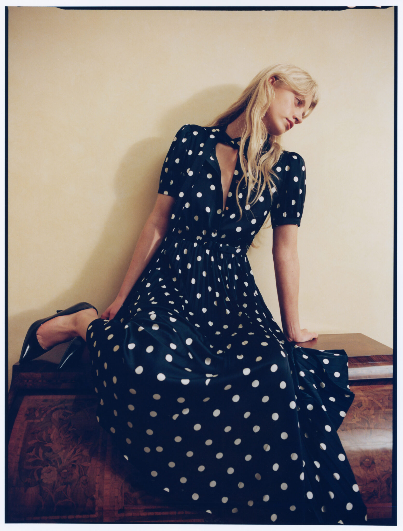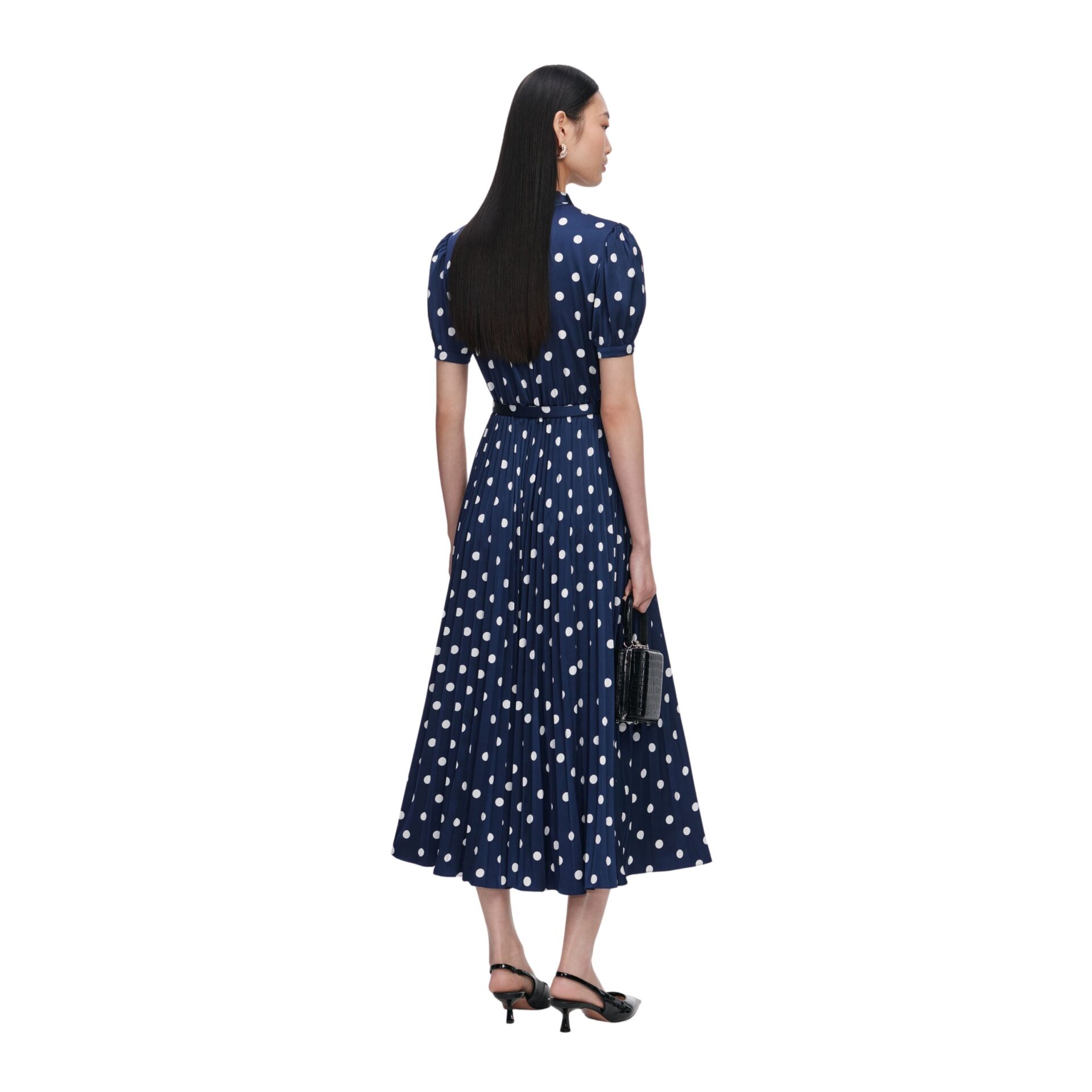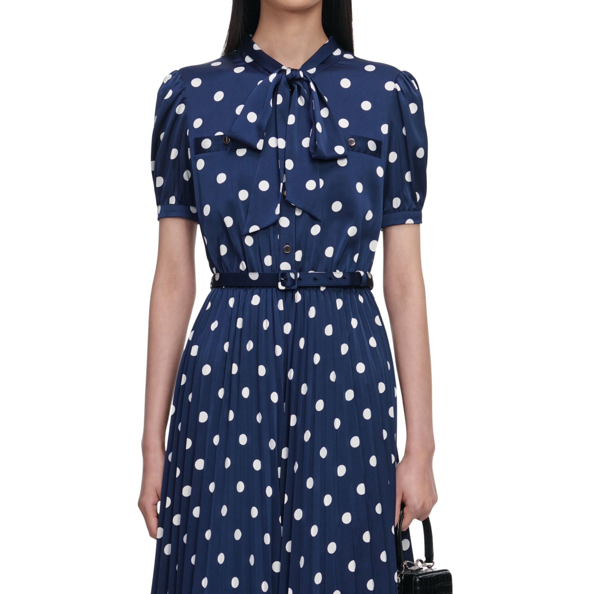Polka Dot Satin Midi Dress – Marine