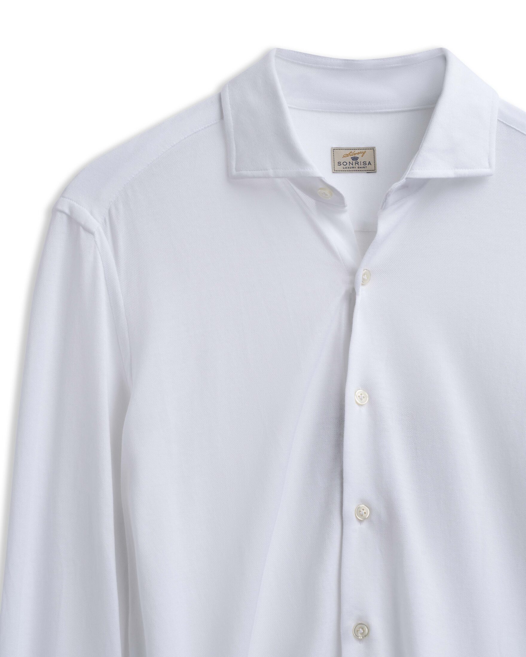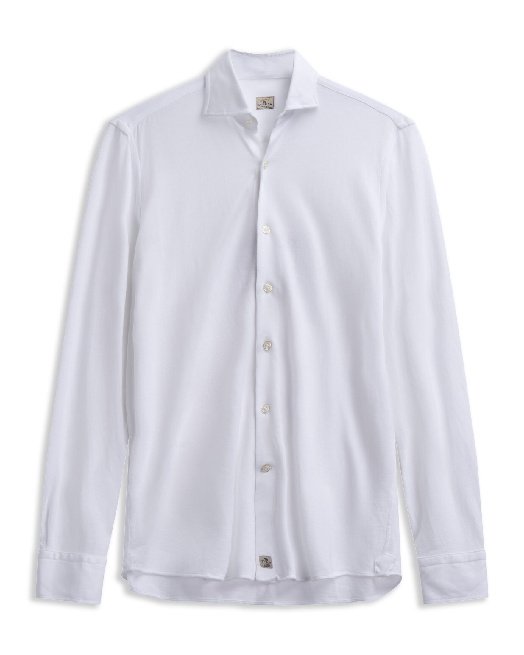 Skjorte til herre fra Sonrisa. Laget av en luksuriøs blanding av bomull og lyocell i en myk jerseykvalitet, gir den en elegant, men avslappet look. Perfekt for deg som ønsker en skjorte med et uformelt uttrykk uten å gå på kompromiss med kvalitet og stil.