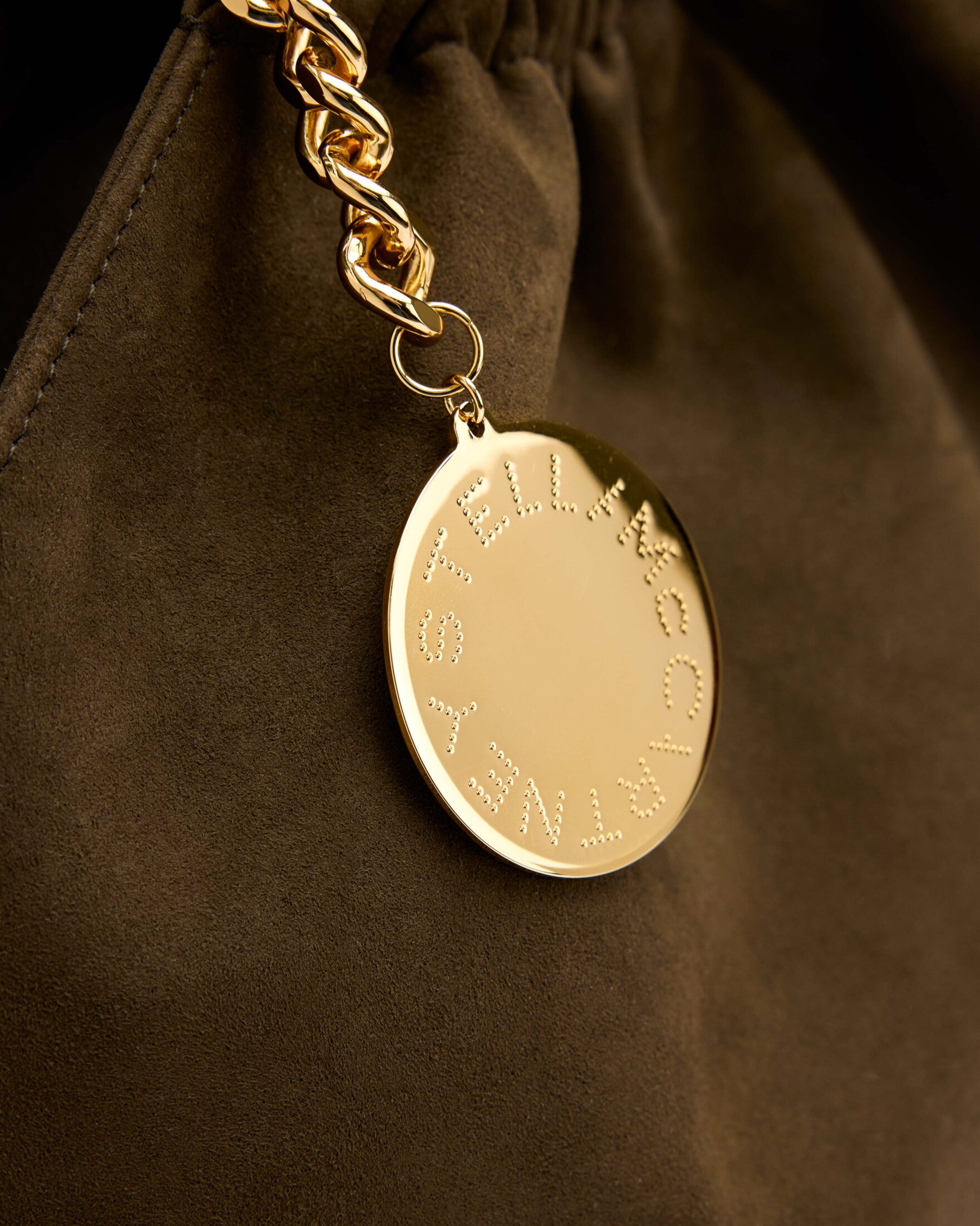 Skulderveske til dame fra Stella McCartney i vegansk semsket skinn med myk og eksklusiv overflate. Falabella Drawstring gir en moderne tolkning av den ikoniske modellen, innrammet av den karakteristiske diamantkuttede kjeden i gullfarget resirkulert messing og aluminium. En romslig og sofistikert veske som enkelt følger deg fra dag til kveld.