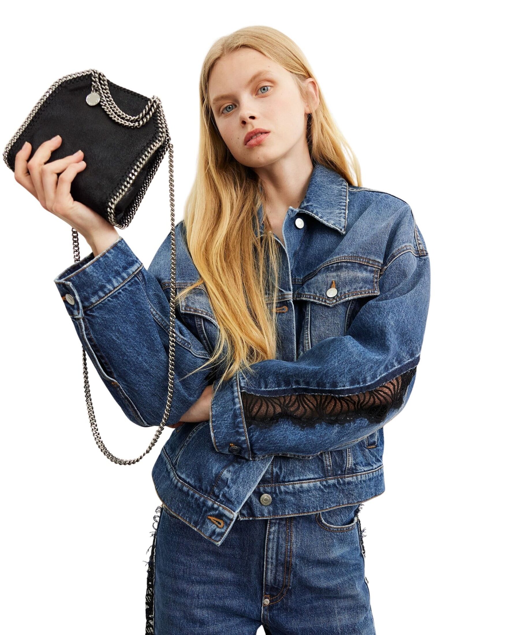 Falabella Tiny Tote er en kompakt versjon av Stella McCartneys ikoniske design, kjent for sin myke silhuett og diamantkuttede kjede. Vesken er laget i matt, vegansk Shaggy Deer-materiale med diskré struktur og semi-gloss finish. Vesken rommer mobil, lommebok og daglige nødvendigheter, og kan bæres i håndtakene eller over skulderen med den lange kjederemmen.