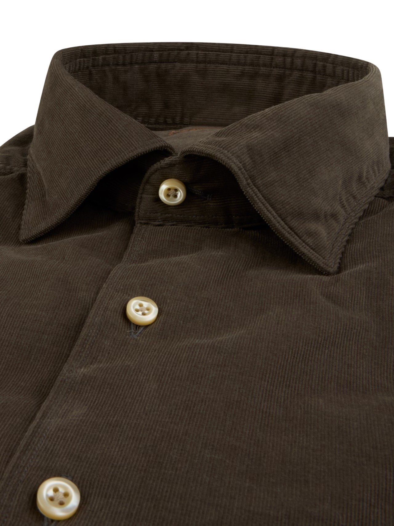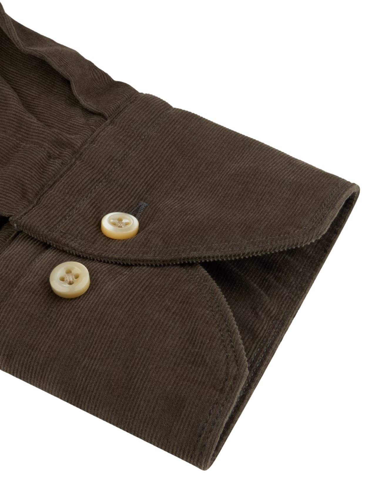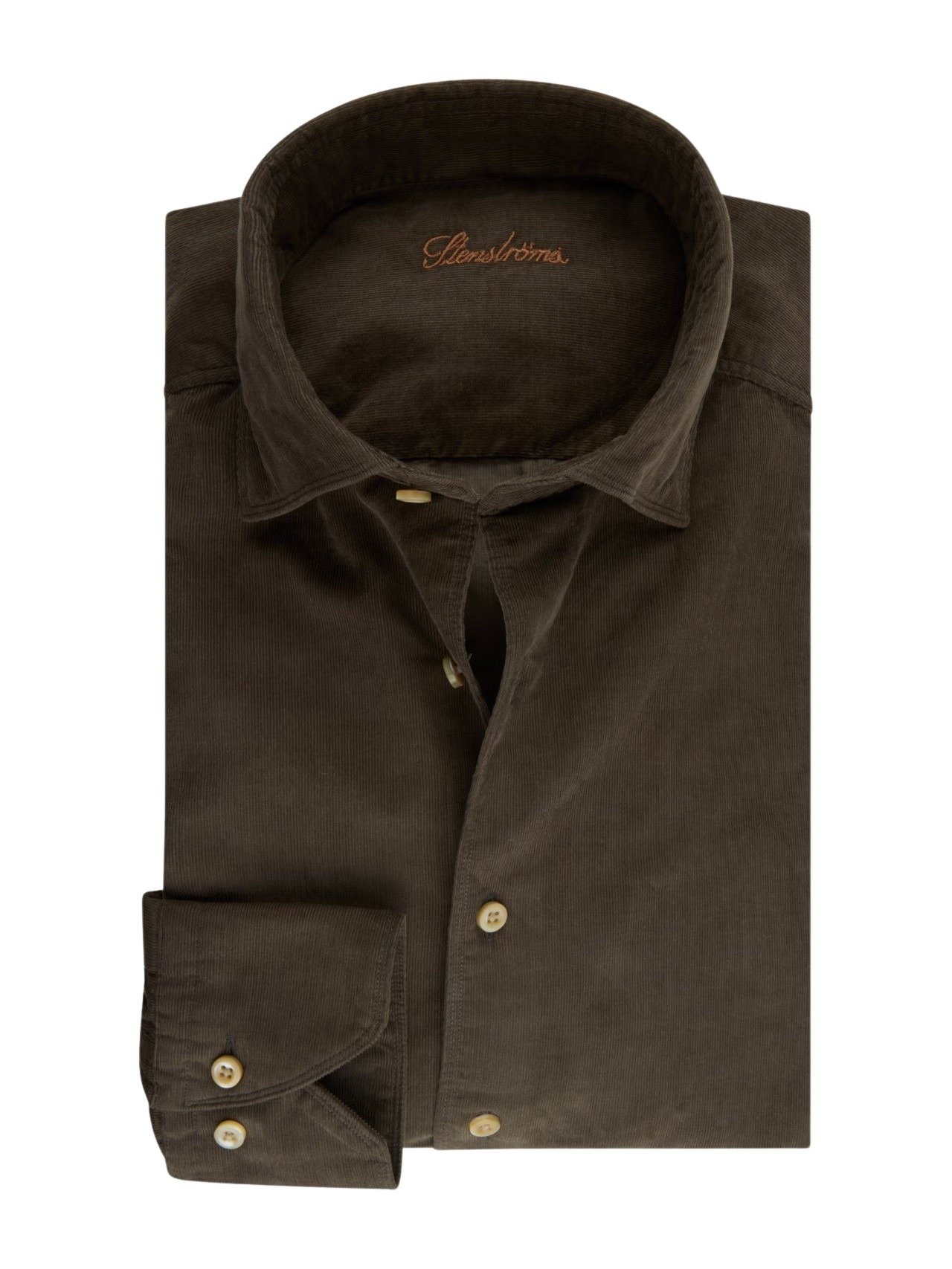 Skjorte til herre fra Stenströms. Kordfløyelskjorte laget av bomull med perlemorsknapper, enkle mansjetter og cut away-krage.