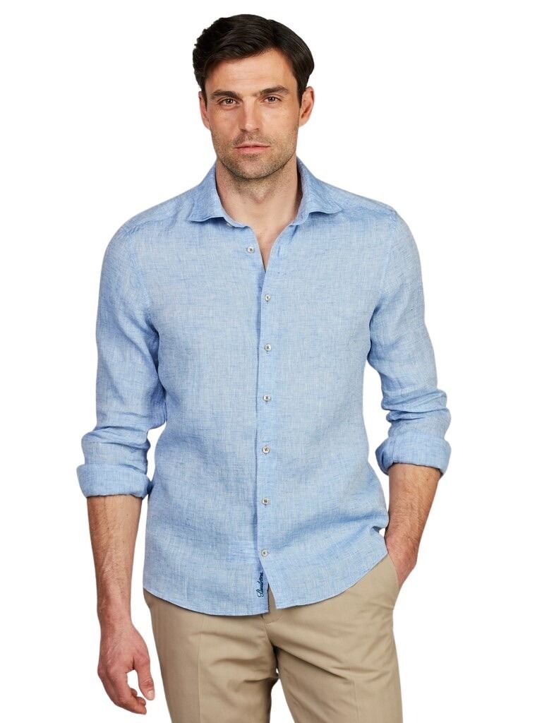 Skjorte til herre fra Stenströms. Linskjorte laget av 100% lin med perlemorsknapper, enkle mansjetter og moderat cut away-krage. En sval og luftig modell som passer perfekt til varme dager.