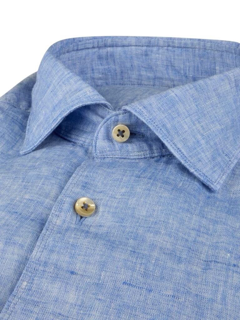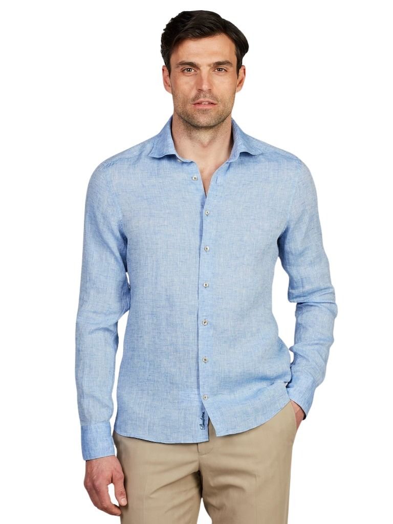Skjorte til herre fra Stenströms i sval og pustende lin. Klassisk design med cut away-krage, perlemorsknapper og enkel mansjett. Perfekt til både sommerlige anledninger og en avslappet, velkledd stil.