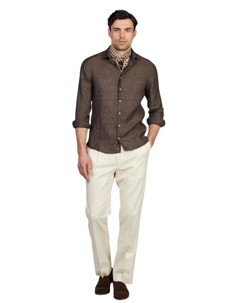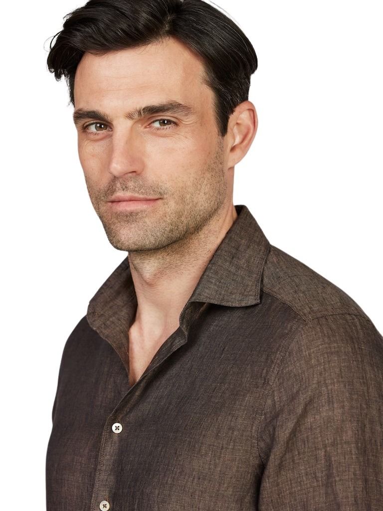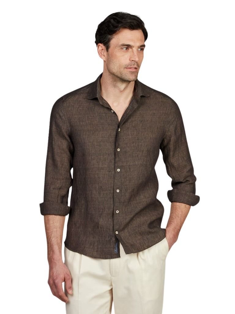 Skjorte til herre fra Stenströms i sval og pustende lin. Klassisk design med cut away-krage, perlemorsknapper og enkel mansjett. Perfekt til både sommerlige anledninger og en avslappet, velkledd stil.