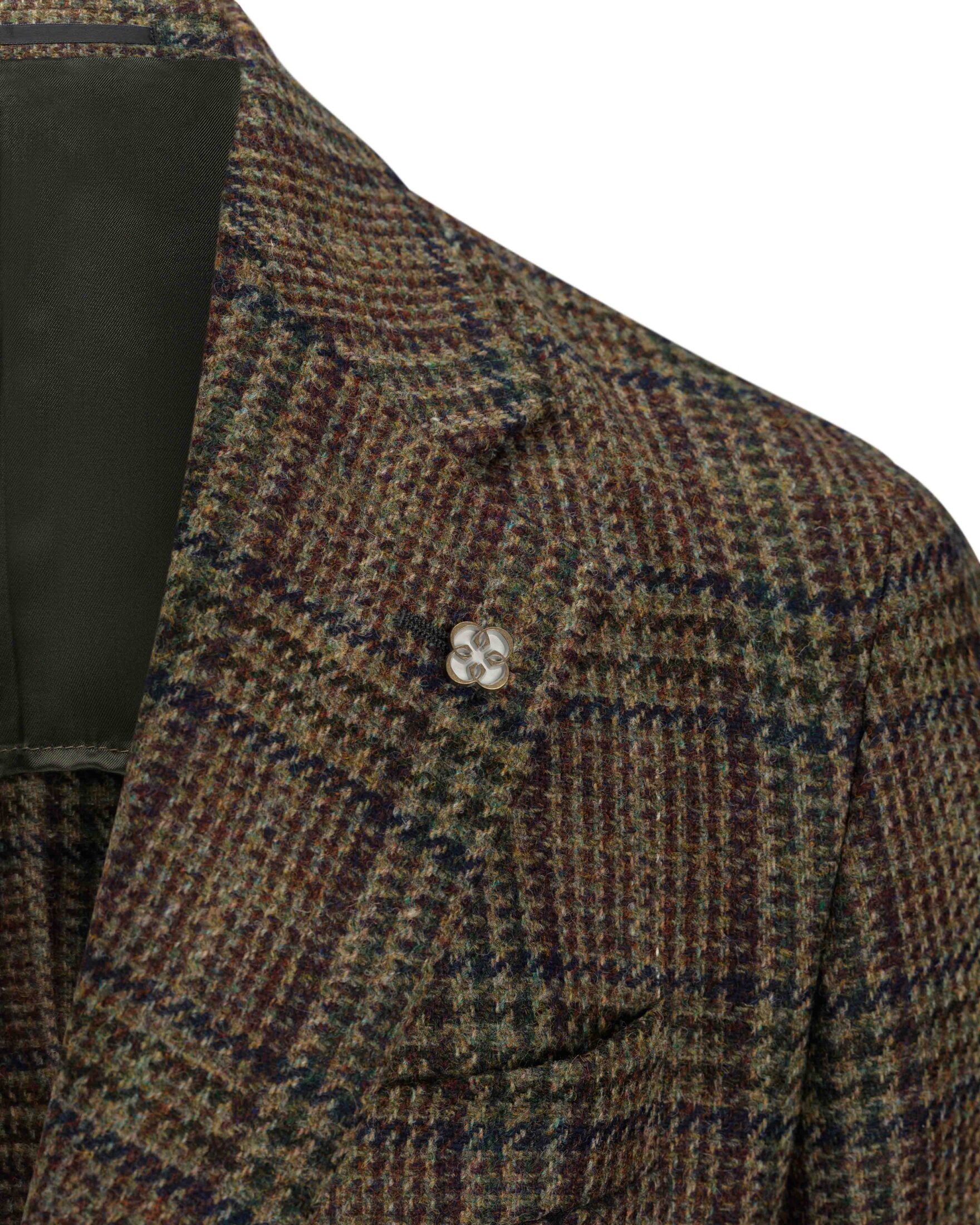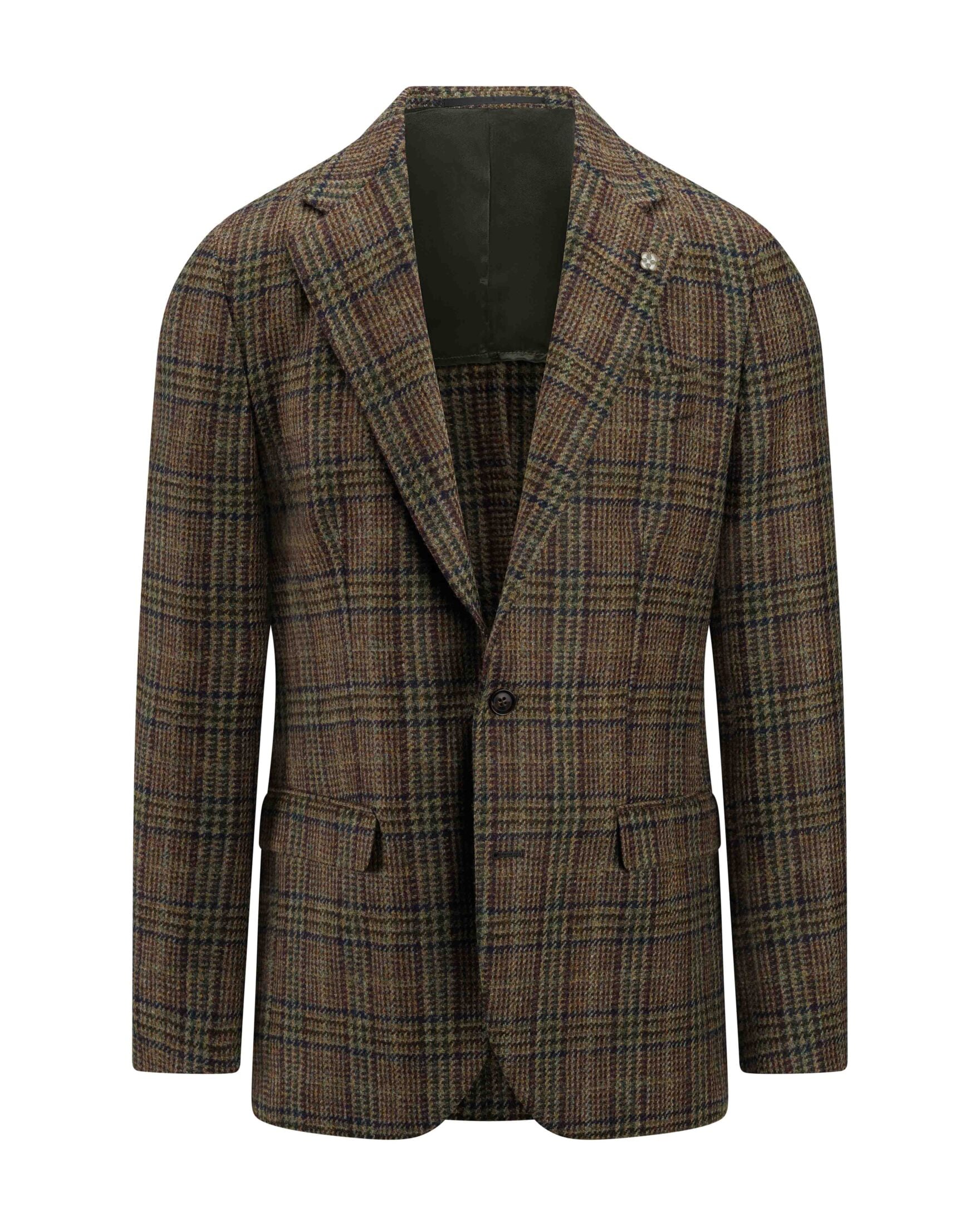 Blazer til herre fra Studio 73. Klassisk og elegant blazer laget i 100 % ull med et raffinert rutemønster i varme jordtoner. Modellen har klafflommer, notch lapels og et moderne snitt som balanserer tidløs stil med italiensk håndverk. Den er fôret med viskose for en behagelig og lett følelse gjennom hele dagen. En allsidig blazer som løfter både hverdagsantrekk og mer formelle kombinasjoner.