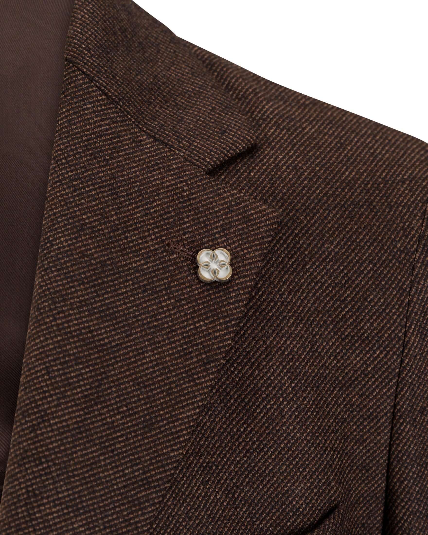 Elegant blazer fra Studio 73, laget i en eksklusiv ull- og kasjmirblanding med en liten andel elastan for ekstra komfort. Stoffet kommer fra legendariske Loro Piana, kjent for sin uovertrufne kvalitet og myke tekstur. Den mørkebrune nyansen gir et sofistikert og tidløst uttrykk som fungerer like godt til formelle anledninger som til en mer avslappet hverdagsstil. Blazeren har et moderne snitt, påsydde lommer og et lett, strukturert uttrykk som gjør den både komfortabel og stilfull.