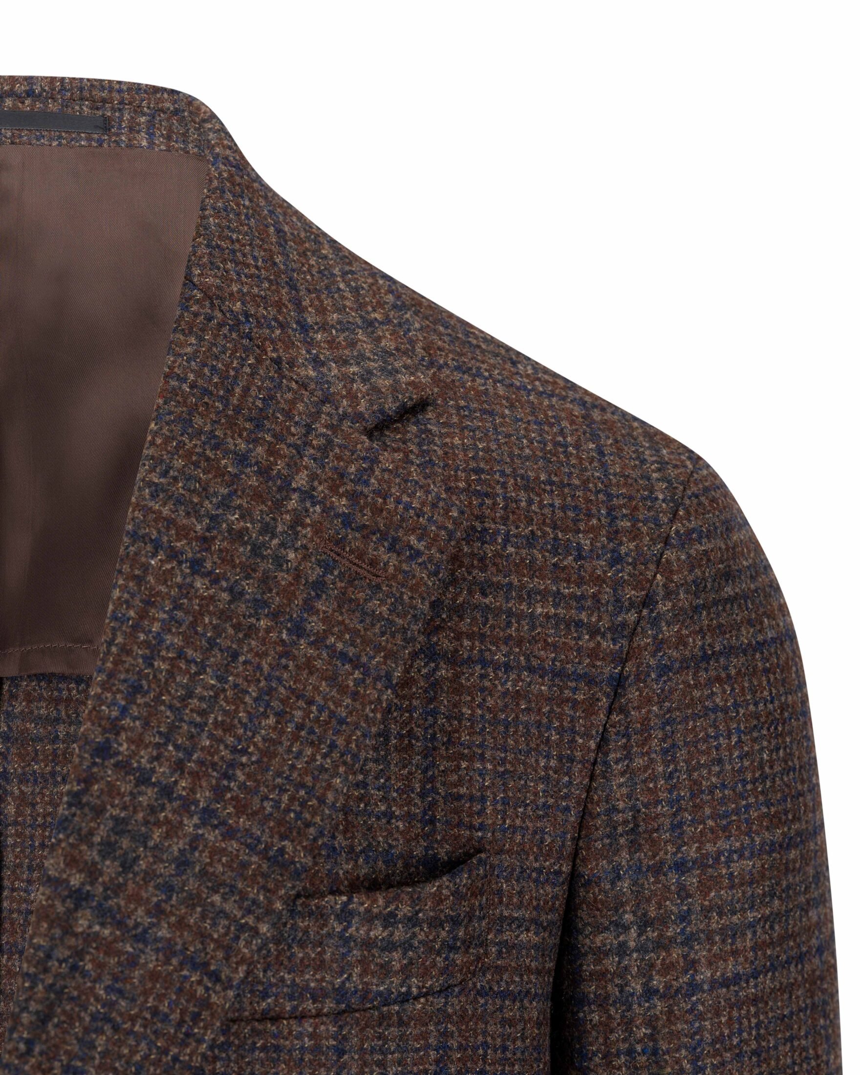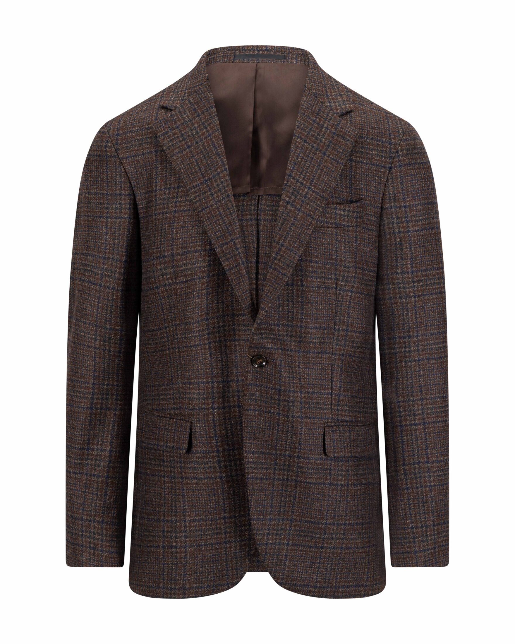 Klassisk og elegant blazer fra Studio 73, laget i en eksklusiv blanding av ull og kasjmir. Den brune rutete strukturen med subtile blåtoner gir et sofistikert uttrykk som passer perfekt til høst- og vintersesongen. Blazeren har et moderne snitt, spisse slag og klafflommer. Ideell både til hverdagsbruk og mer formelle anledninger. Myk, lett og behagelig å ha på, med italiensk kvalitet i hver detalj.