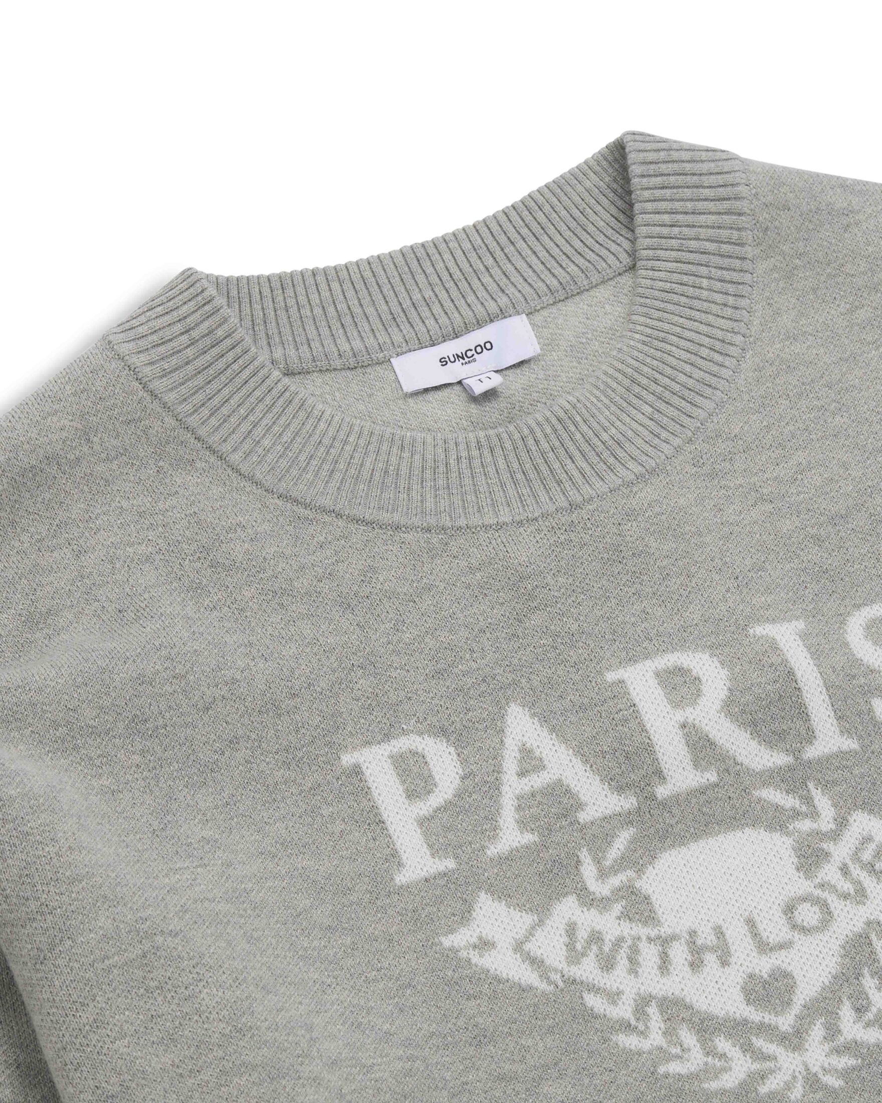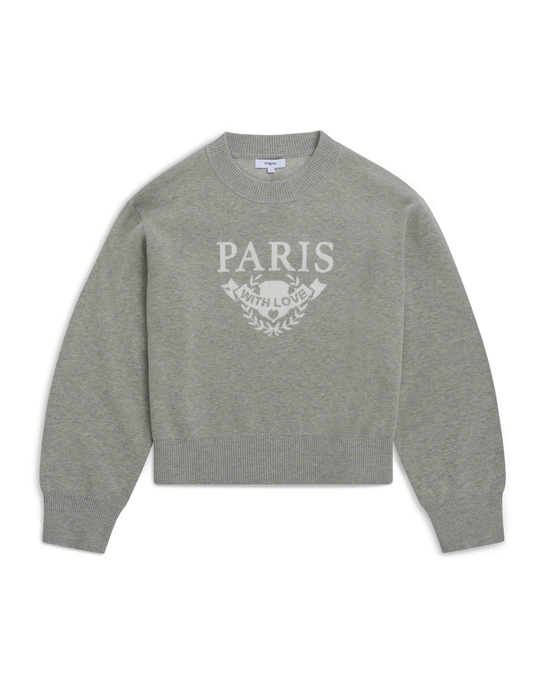 Strikket genser til dame fra Suncoo Paris i en nydelig rødfarge. Genseren har en normal passform og er prydet med “Paris with love” foran.