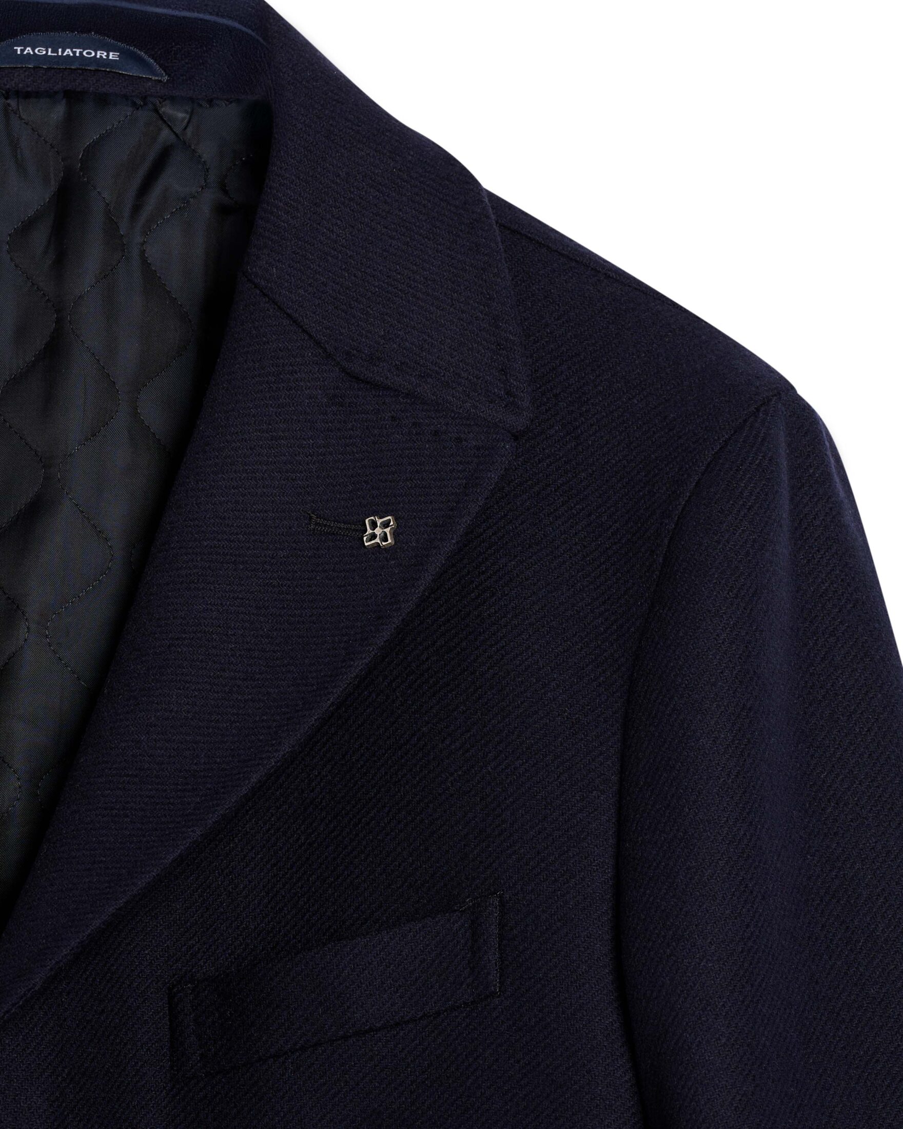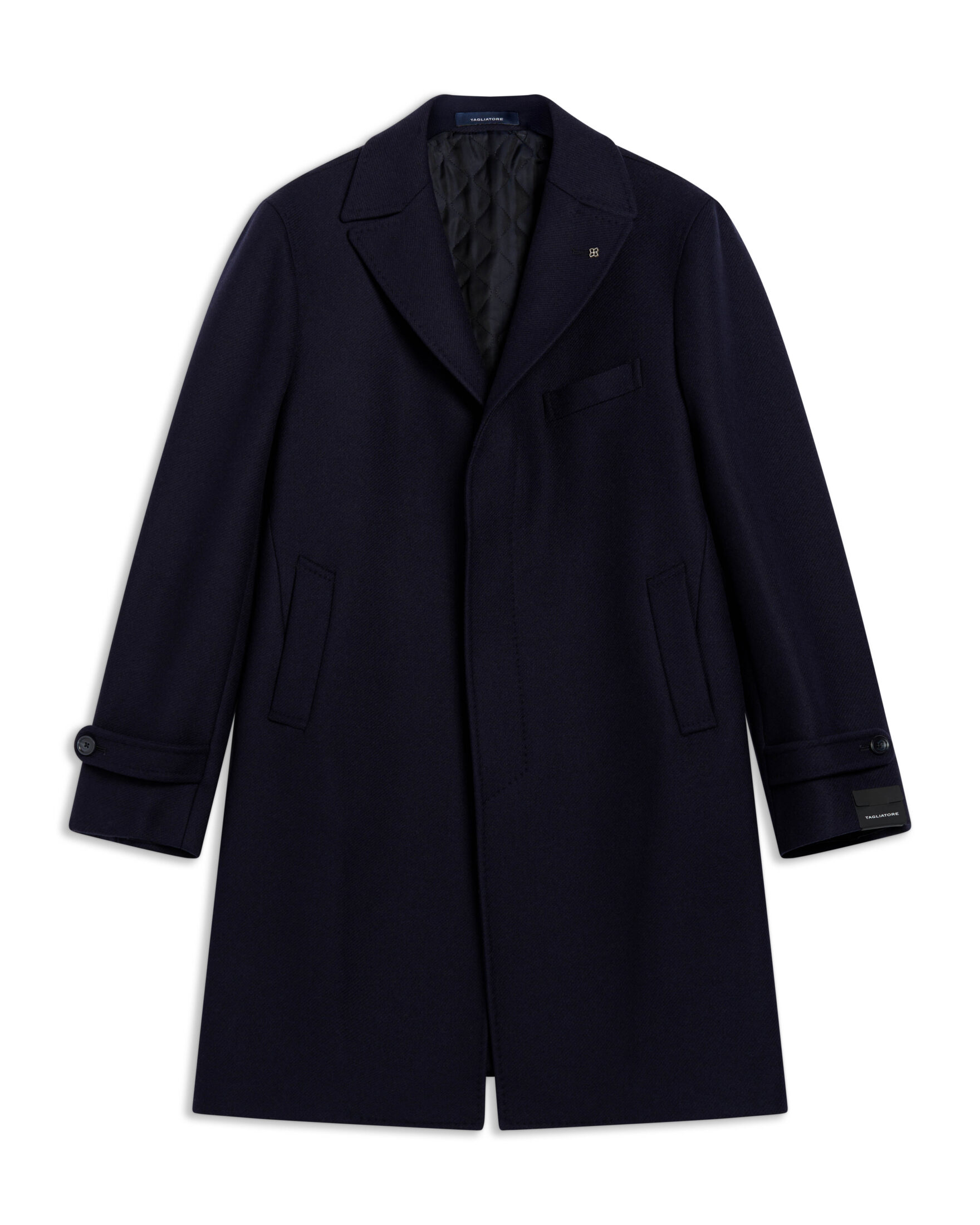 Frakk til herre fra Tagliatore. Thomas er en elegant ullfrakk i en mørkblå tone, med ull fra Loro Piana. Den har en ren og minimalistisk front med skjult knappelukking, bredt jakkeslag og subtile detaljer som gir et raffinert uttrykk. Den bakre beltedetaljen med knapper gir en klassisk og skreddersydd fasong. Perfekt over dress eller strikk for et sofistikert uttrykk i høst- og vintersesongen.