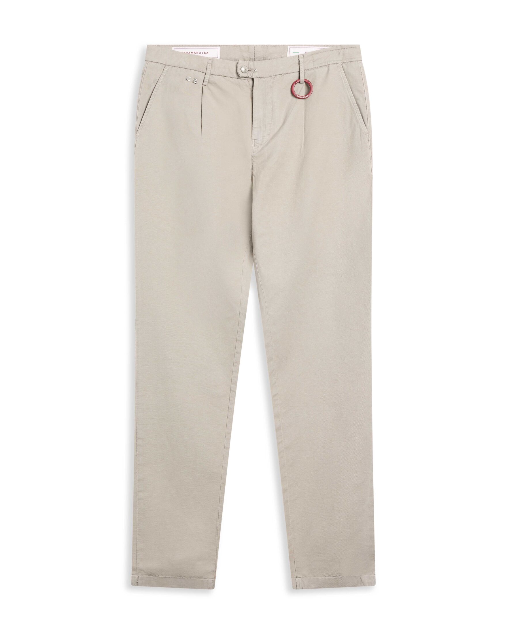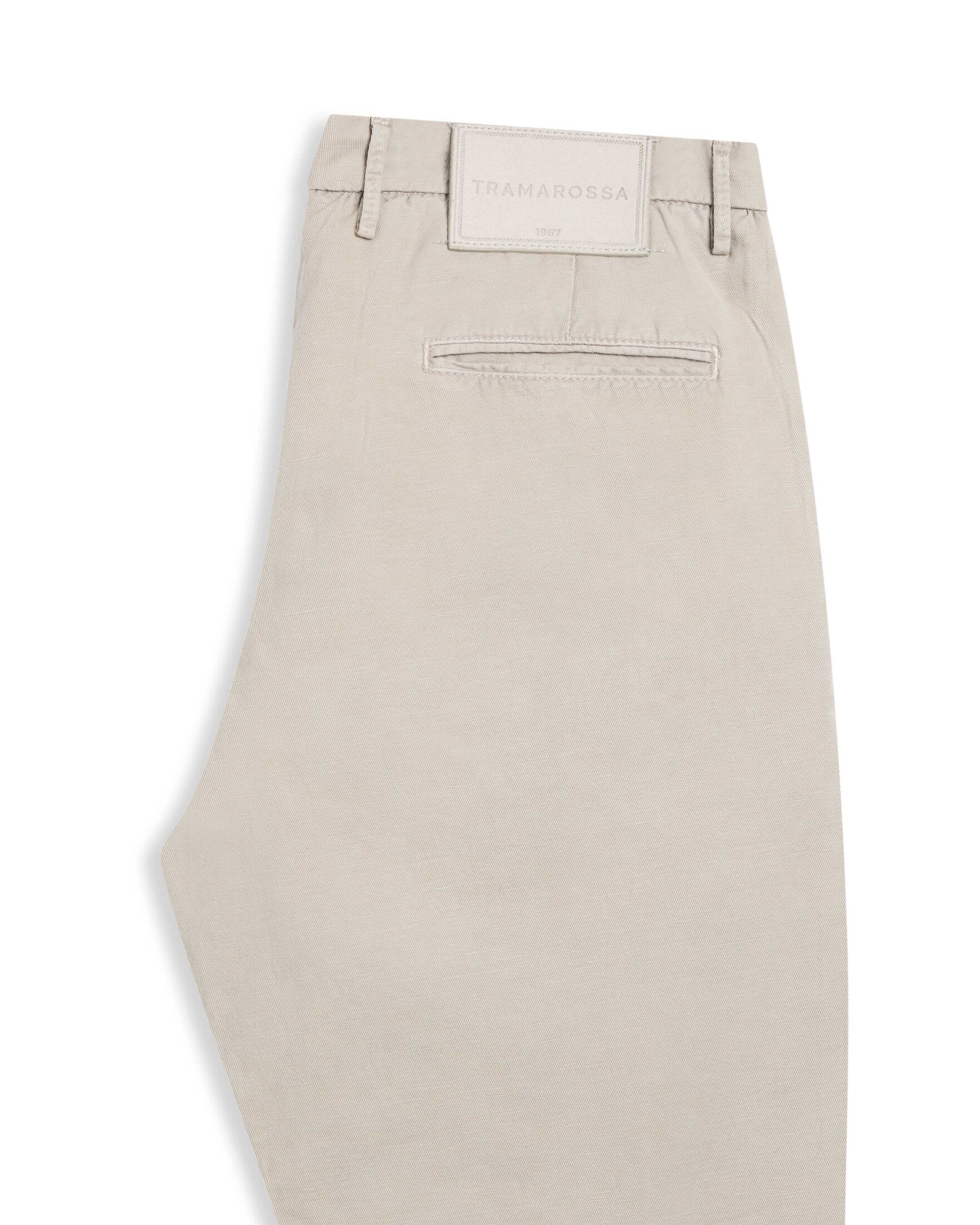 Bukse til herre fra Tramarossa. En lett og elegant bukse laget av 100% lin, perfekt for varme dager. Den har en moderne passform som smalner ned mot leggen, og gir et rent og sofistikert uttrykk. Produsert i Italia med fokus på komfort, pusteevne og tidløs stil.