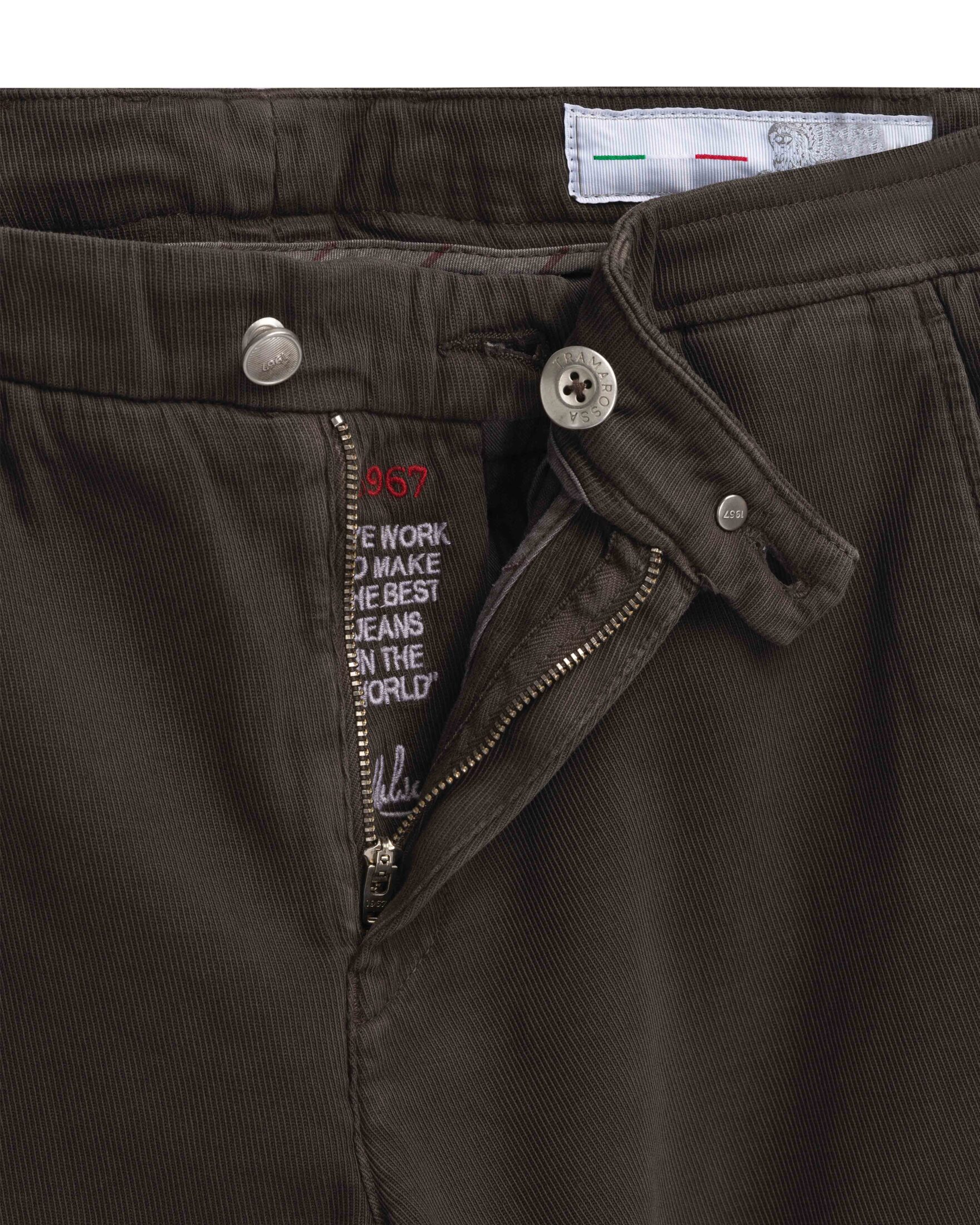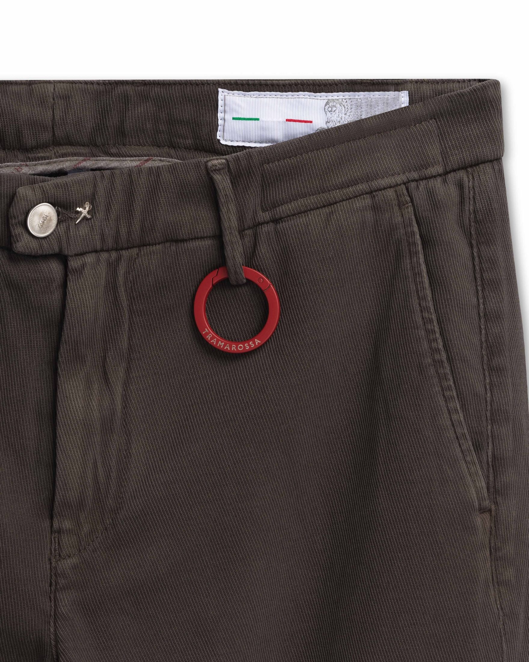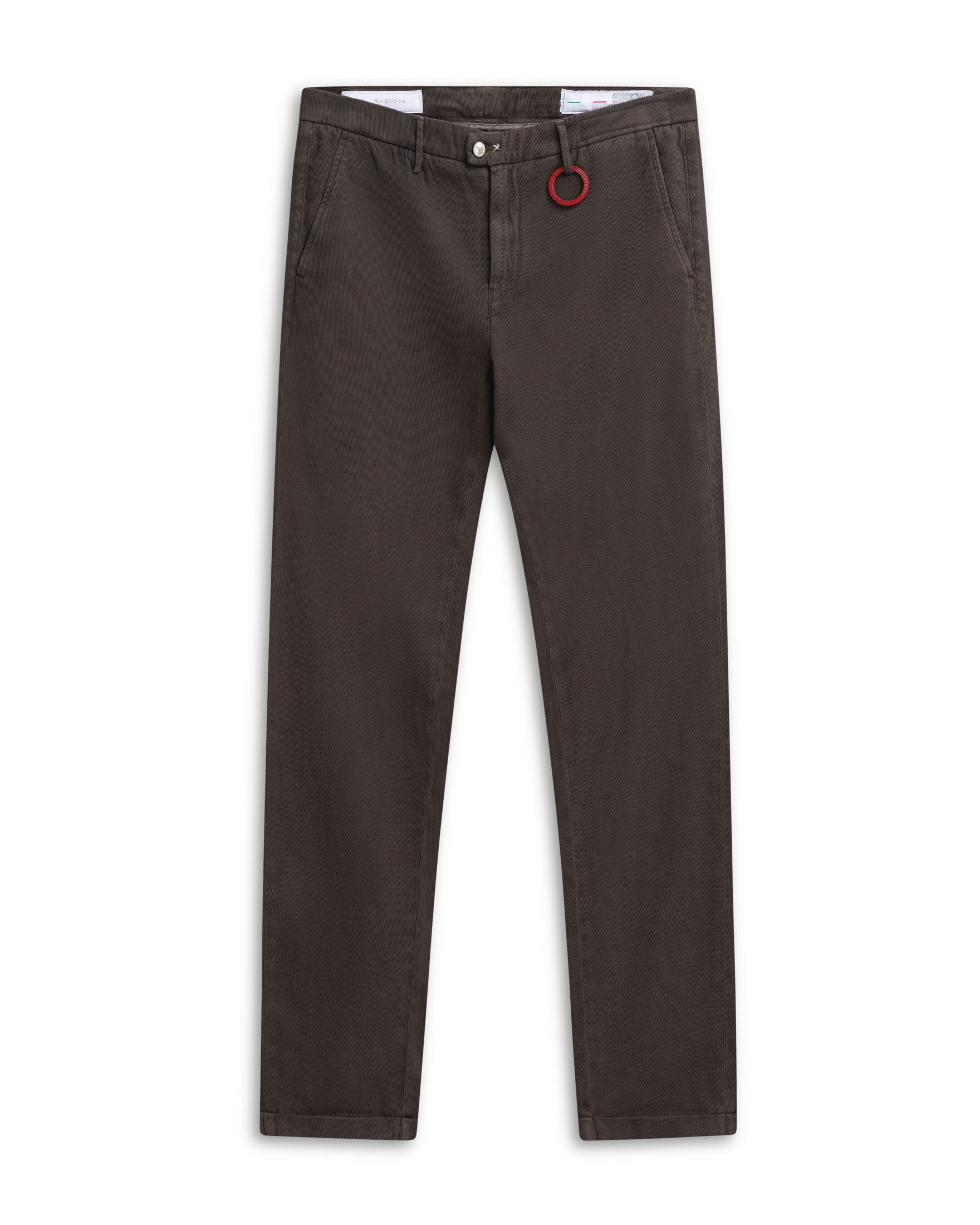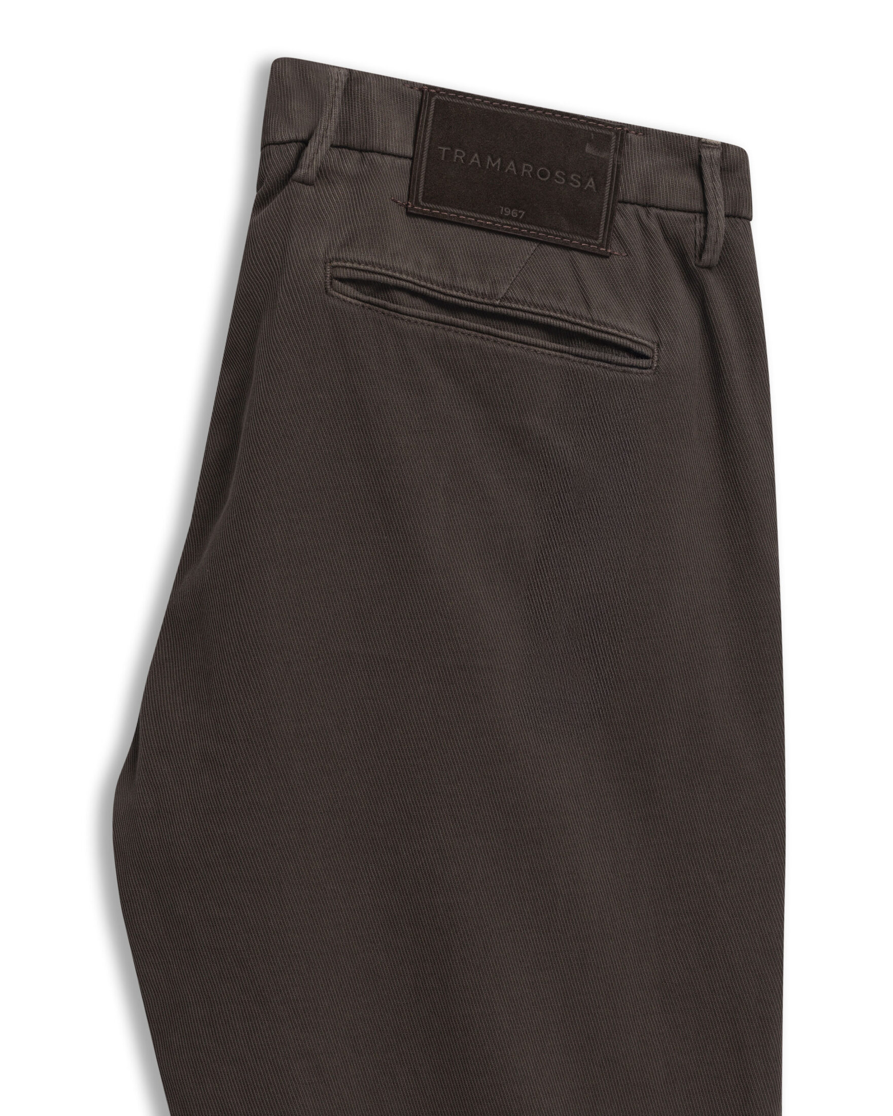 Luis G169 fra Tramarossa er en sofistikert chinos med en moderne og stilren passform. Buksen kombinerer italiensk skreddersøm med behagelig stretch, noe som gir en elegant silhuett og maksimal komfort. Den dype brune tonen gir et raffinert uttrykk som passer både til blazer og skjorte, eller til en avslappet genser for en mer uformell stil. En tidløs bukse for deg som setter pris på kvalitet i hverdagen.