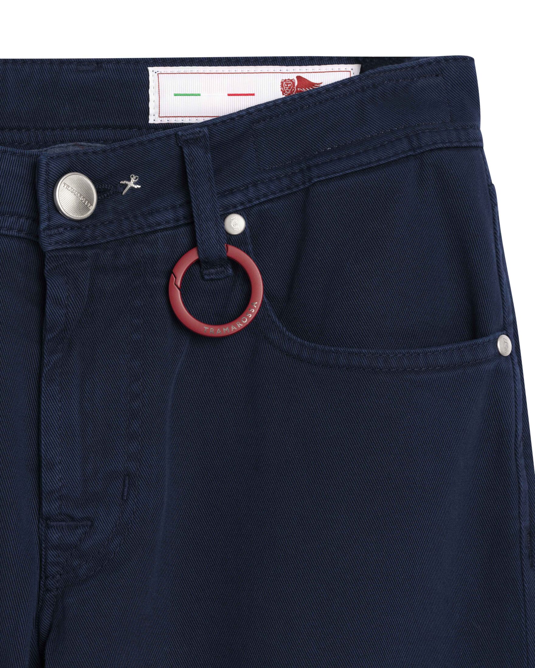 Michelangelo til herre fra Tramarossa. En stilren bukse i myk bomullskvalitet med komfortabel stretch og smal passform. Klassisk 5-lommer i en ren mørkeblå farge som gir et elegant uttrykk som fungerer like godt til hverdags som til mer formelle anledninger. Produsert i Italia med Tramarossas karakteristiske fokus på detaljer og kvalitet.