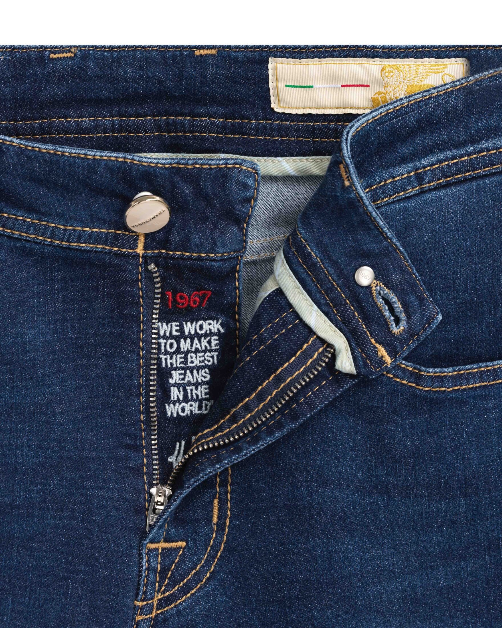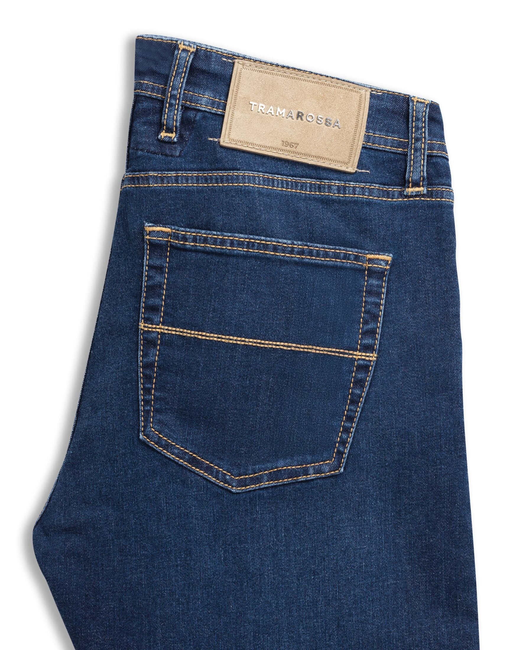 Den ikoniske Michelangelo D561 fra Tramarossa kombinerer italiensk håndverk med moderne komfort. Laget i en eksklusiv stretch-denim som gir perfekt passform og bevegelsesfrihet gjennom dagen. Den dype indigofargen og subtile vasken gir et sofistikert uttrykk som passer like godt til skjorte og blazer som til en enkel t-skjorte. Et stilrent design med diskrete detaljer og Tramarossas karakteristiske røde ring som signatur.