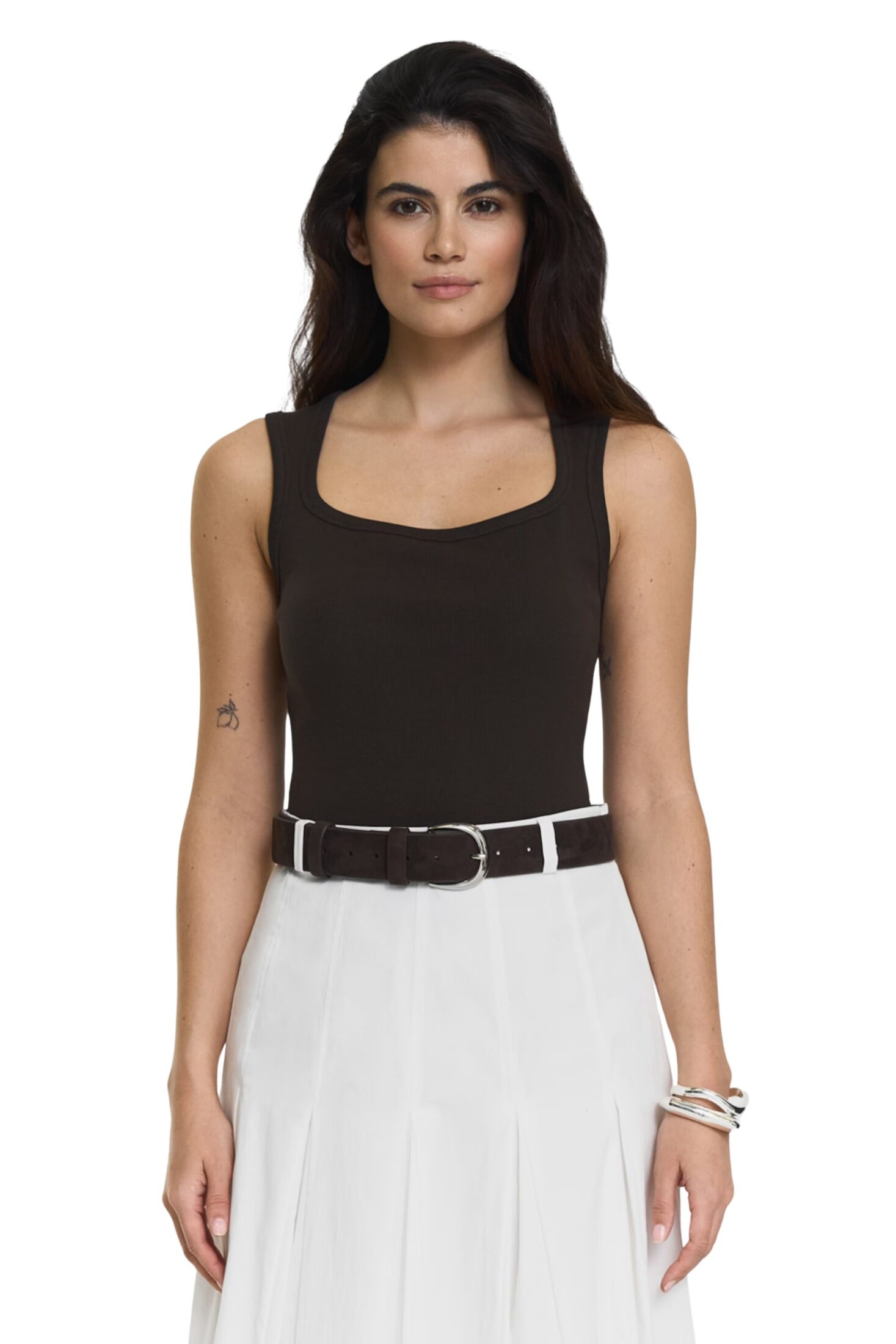 Singlet til dame fra Twist & Tango. Hera Singlet er et must-have i basisgarderoben. Denne allsidige toppen har en flatterende firkantet hals og en myk ribbet tekstur. Enkel å pynte opp eller ned etter anledningen.
