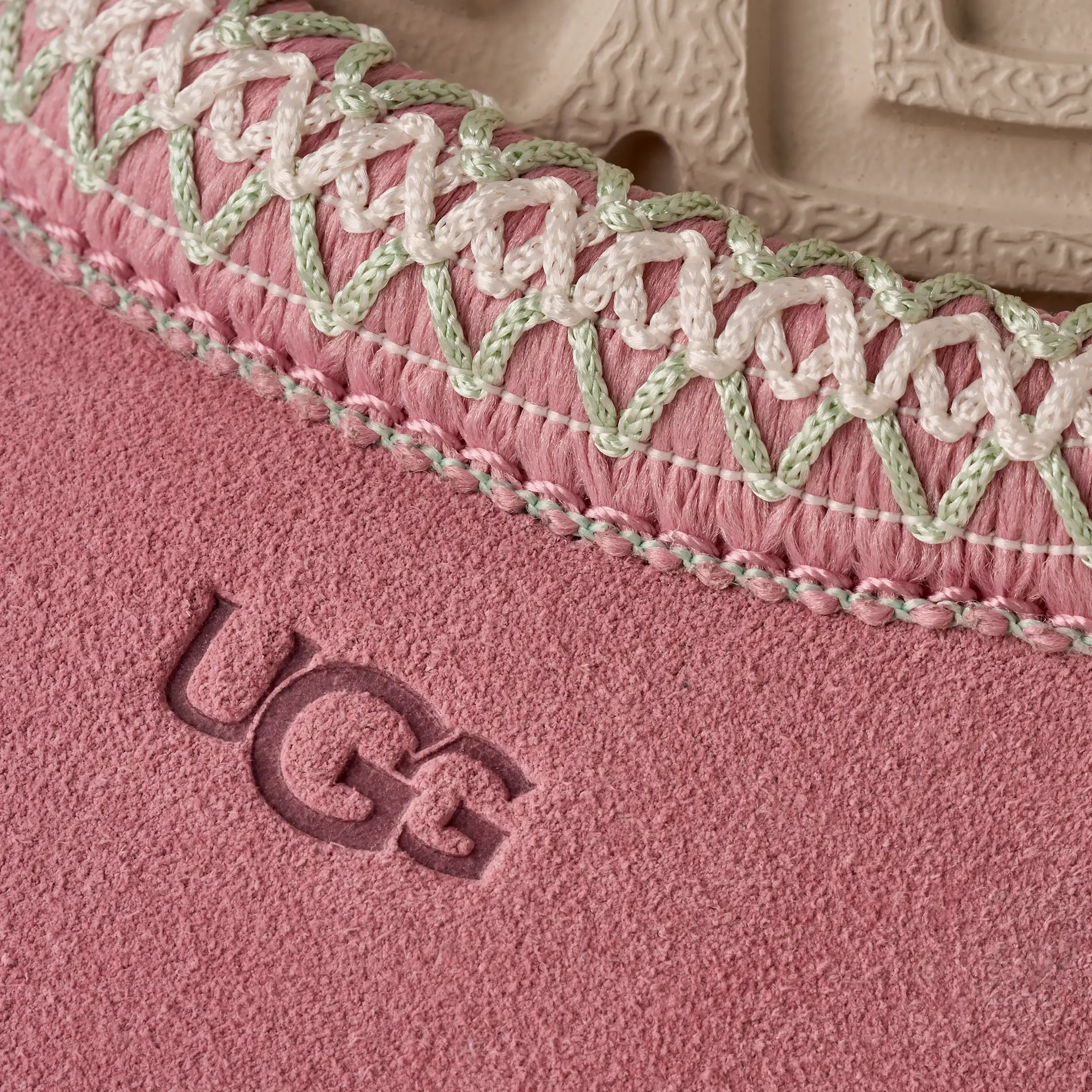 Bestselger fra UGG til dame. Tasman er en komfortabel slippers med myk sukkerrør-EVA såle, slik at den kan brukes både innendørs og utendørs. Tasman er fôret med ull og har overdel i mykt semsket skinn med brodert flette. Kombiner med jeans og strikket genser for en kul look.